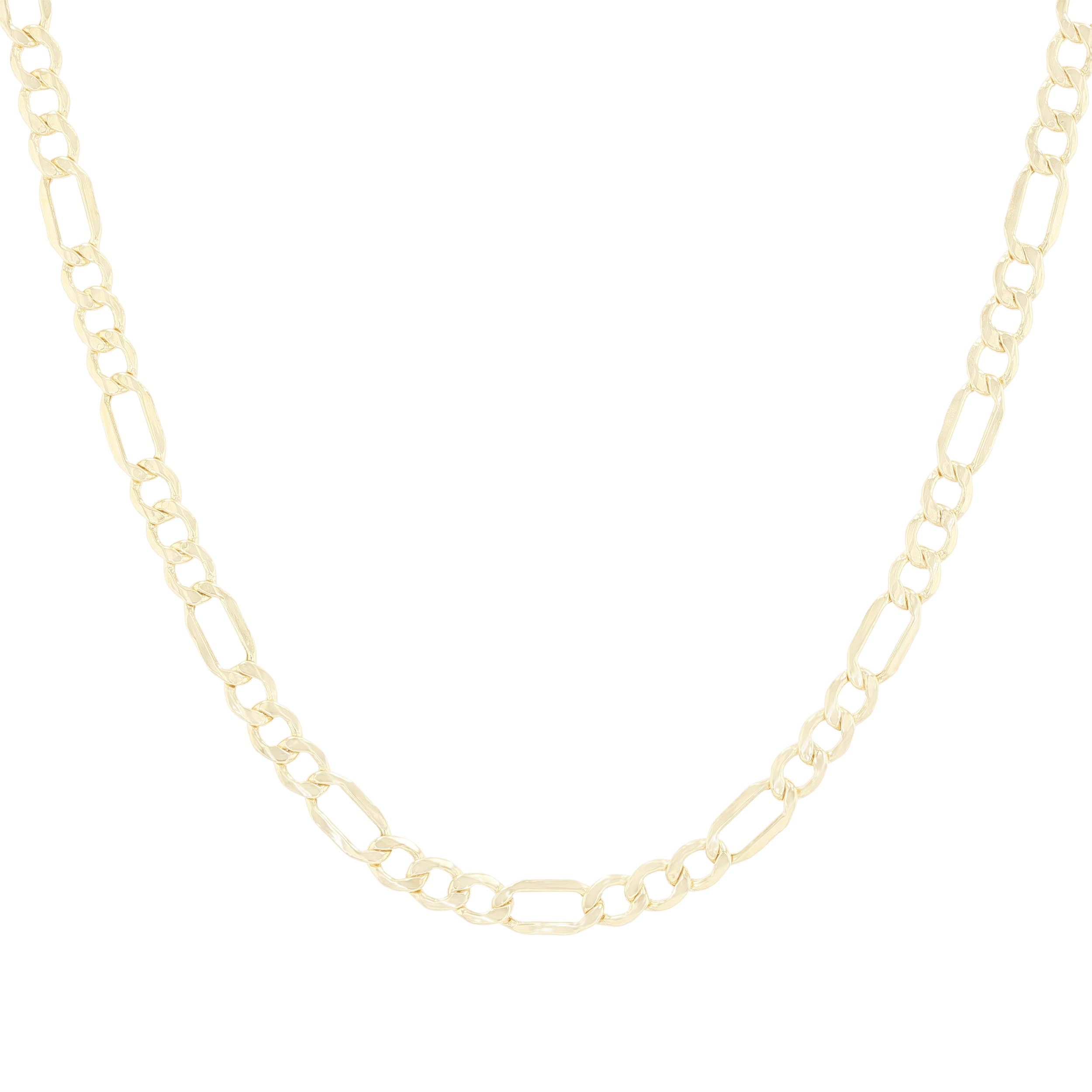 Product Description This contemporary Figaro chain features different styles of links alternating throughout. It measures 20 inches long and approximately 4.5 millimeters wide. Pair it with any pendant of your choice. Other Details Metal Color: Yellow Gold Type: Gents Chain Length: 20 IN Style: Contemporary Disable Reason: None