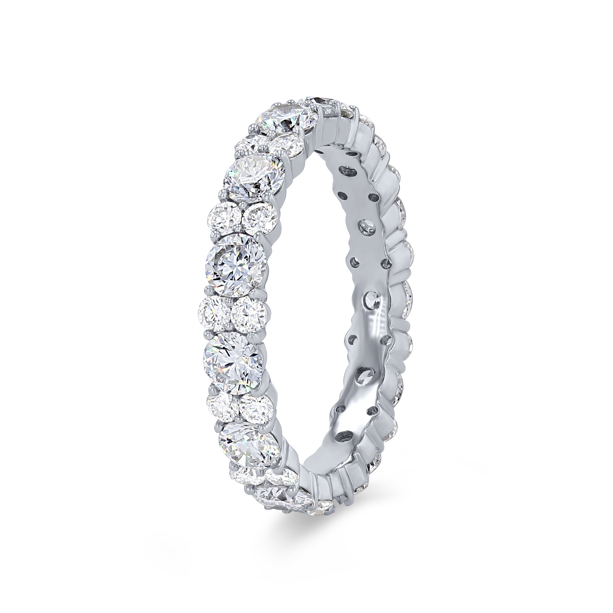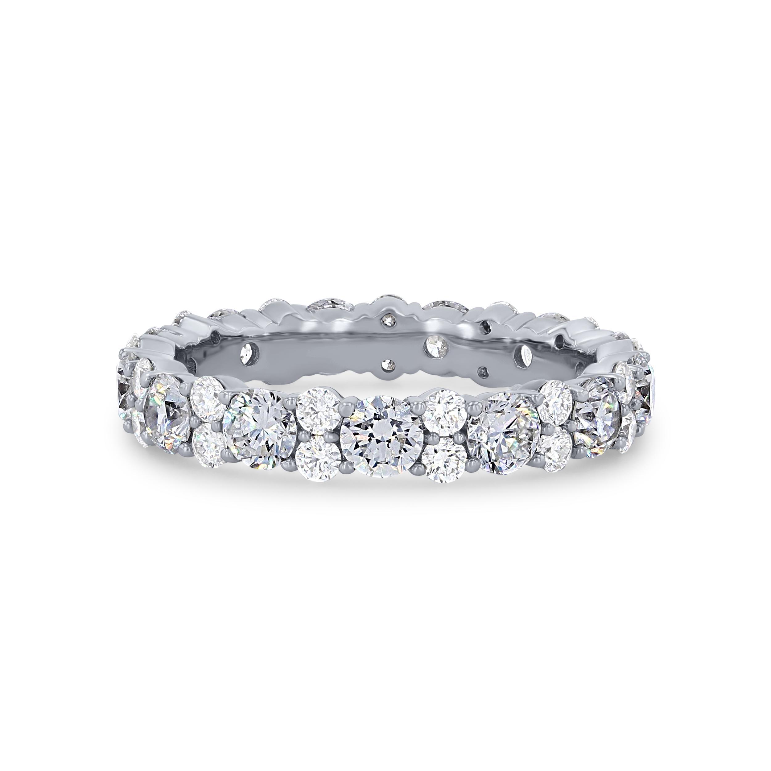 Product Description A twist on a classic eternity band, this style alternates sizes of round brilliant cut diamonds totaling 2.34 carats. Perfect for creating a sophisticated look. Other Details Disable Reason: None Metal Color: Yellow Gold Gemstone Type: Diamond Total Setting Diamond Carat Weight: 2.34TW Metal Color: White Gold Metal Color: Rose Gold Wedding Band Type: Eternity Style: Contemporary Metal Color: Platinum Type: Ladies Wedding Band