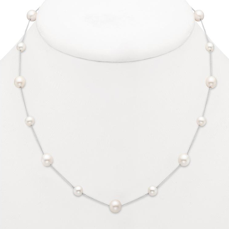 Product Description A timeless design, this tin cup necklace features alternating sizes of freshwater pearls set in stations on a 14 karat gold chain. It measures 17 inches long. Other Details Length: 17 IN Gemstone Type: Pearl Disable Reason: None Metal Color: White Gold Style: Classic Metal Color: Yellow Gold Necklace Type: Fashion Type: Necklace Pendant Type: Gemstone