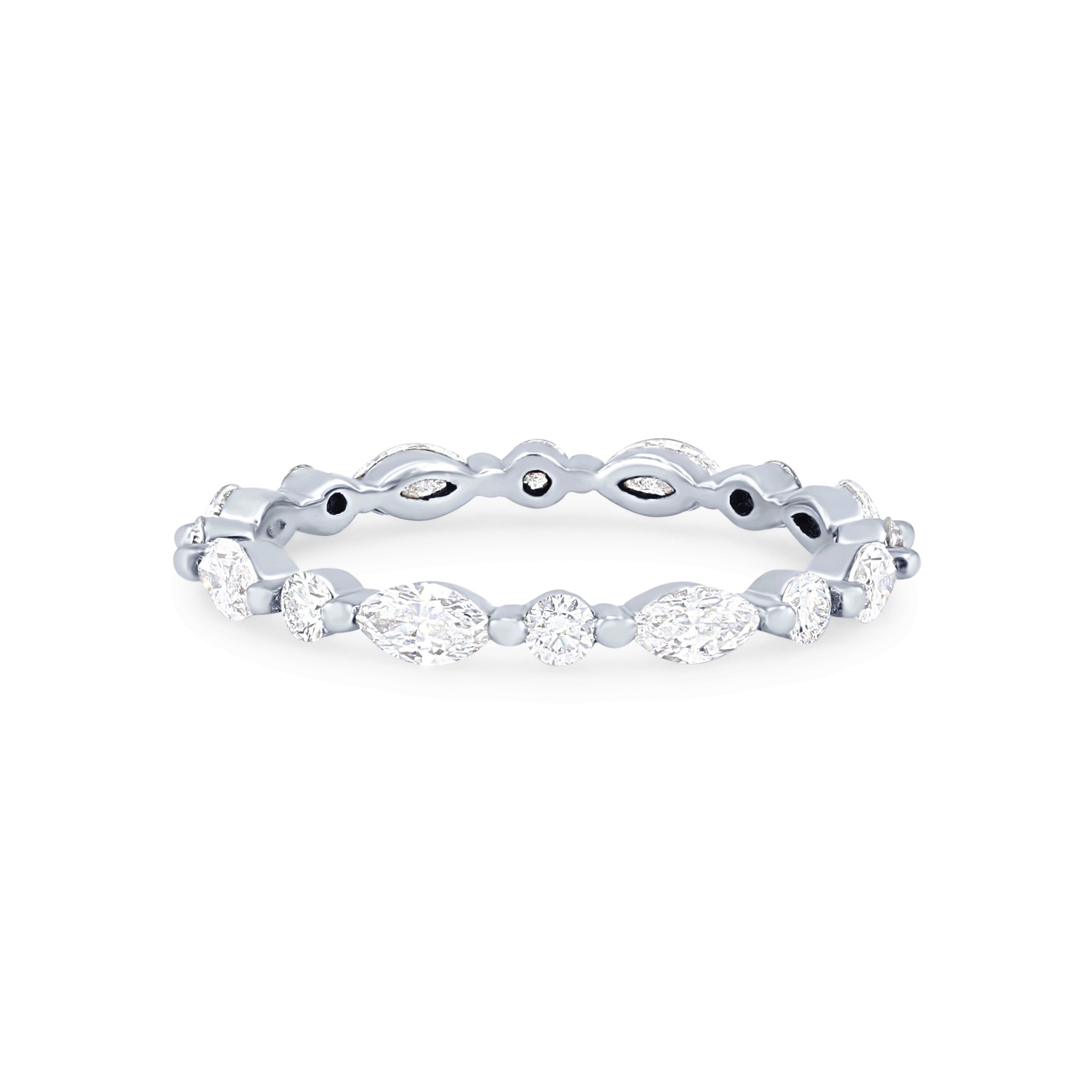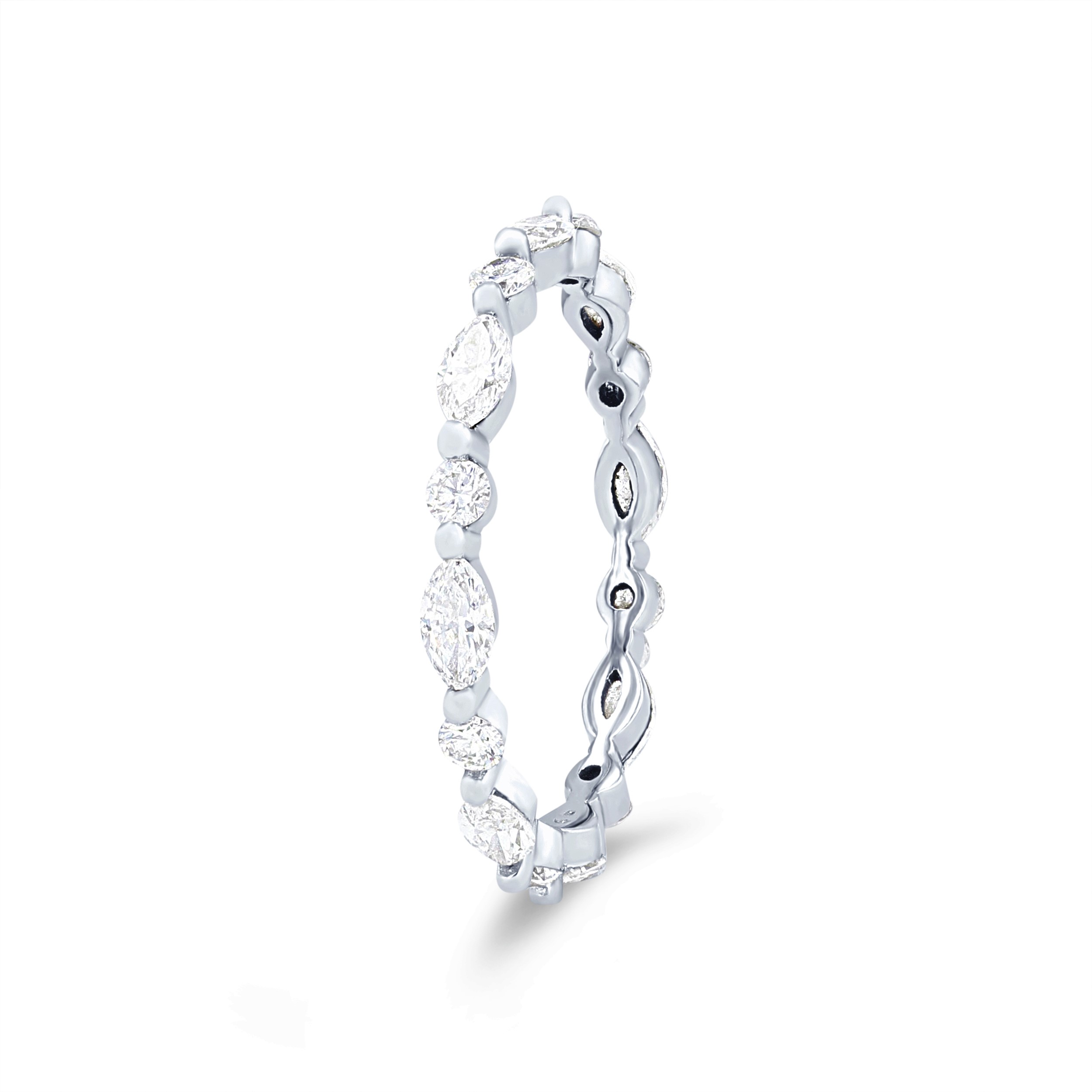 Product Description This stunning single prong eternity wedding band features marquise cut diamonds totaling 0.79 carats alternating with round brilliant cut diamonds totaling 0.32 carats. Other Details Type: Ladies Wedding Band Diamond: Eternity Metal Color: Rose Gold Gemstone Type: Diamond Total Setting Diamond Carat Weight: 1.11TW Metal Color: Yellow Gold Wedding Band Type: Fancy Shapes Metal Color: Platinum Metal Color: White Gold Disable Reason: None Style: Contemporary