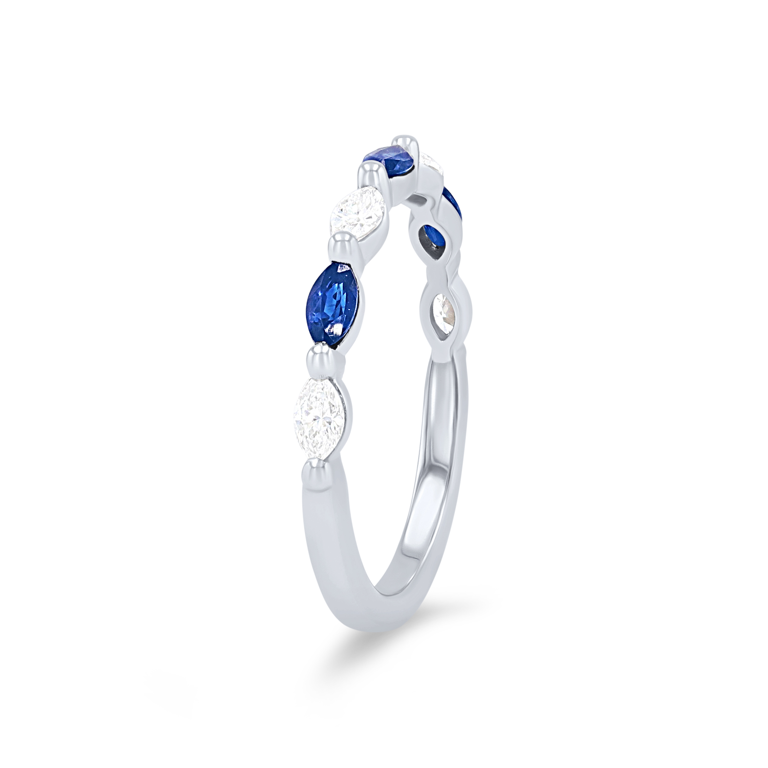 Product Description This unique band features alternating marquise cut blue sapphires totaling 0.54 carats and marquise cut diamonds totaling 0.28 carats. Other Details Gemstone Type: Sapphire Women Wedding Band Type: Gemstone Wedding Band Type: Fancy Shapes Metal Color: White Gold Diamond: Single Prong Metal Color: Platinum Disable Reason: None Style: Contemporary Type: Ladies Wedding Band Total Gemstone Carat Weight: 0.54TW Metal Color: Yellow Gold Total Setting Diamond Carat Weight: 0.28TW