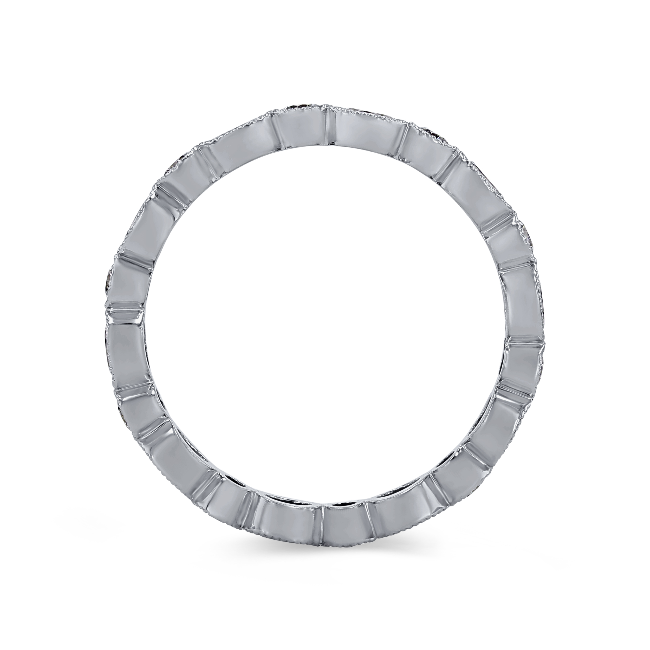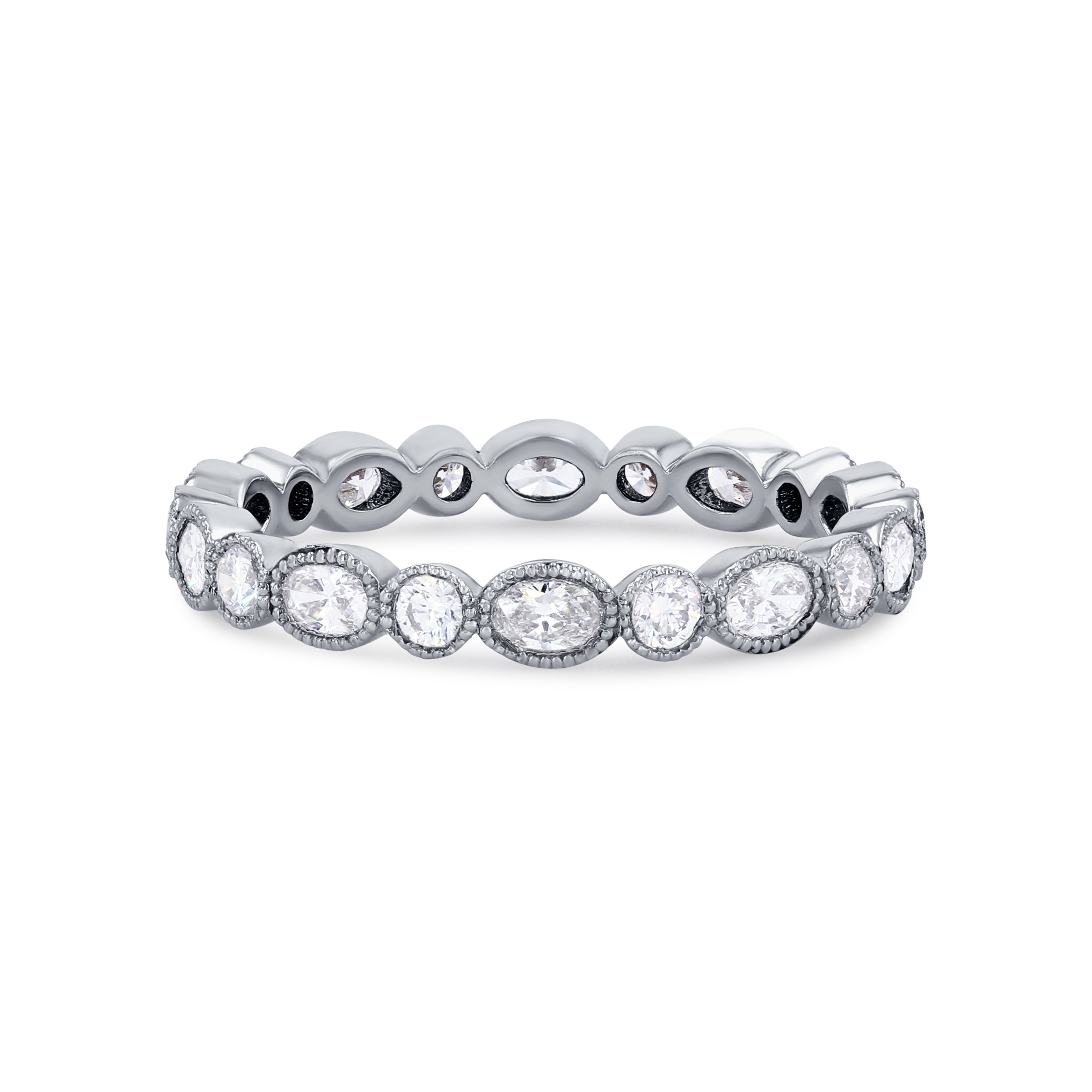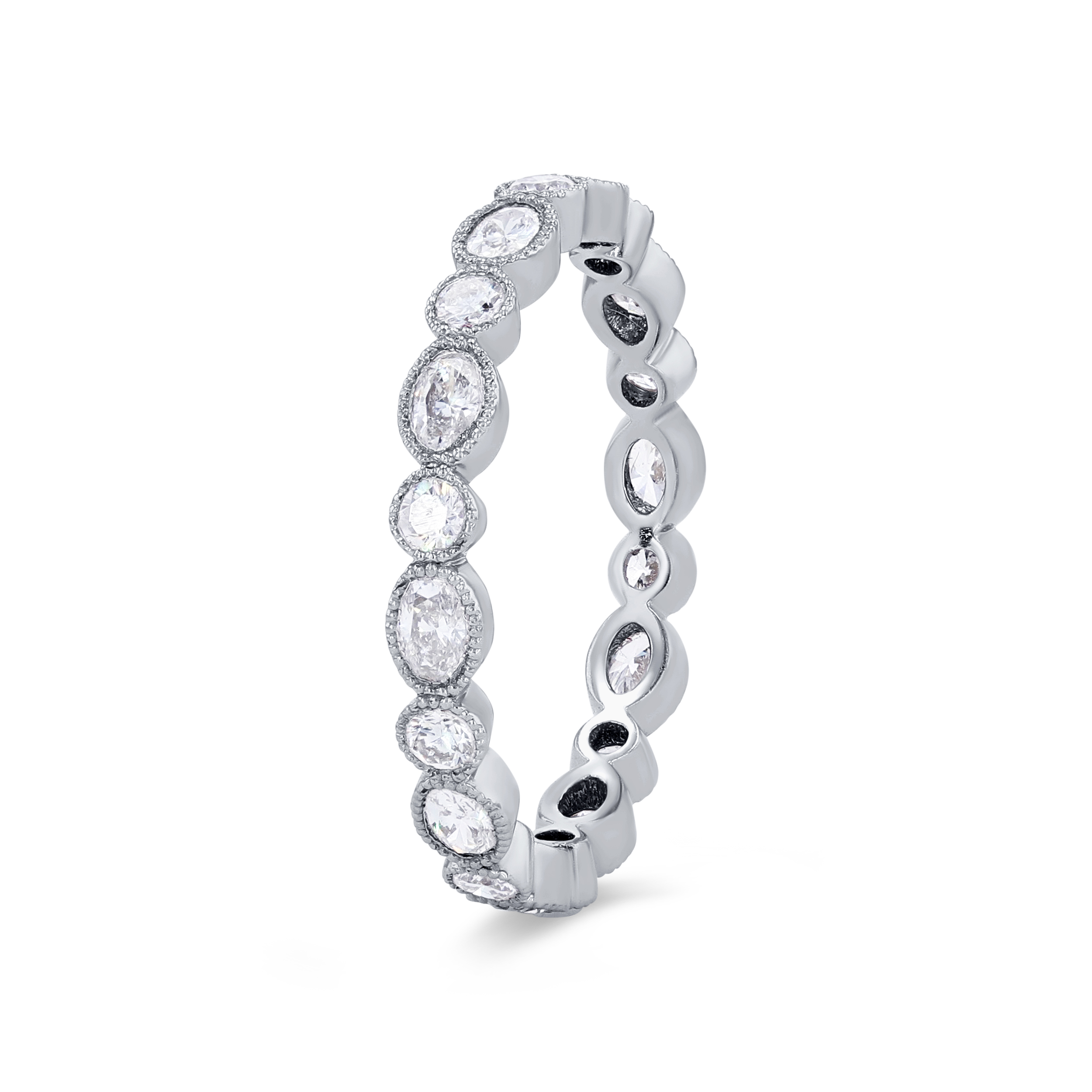 Product Description This striking, modern eternity band showcases oval and round brilliant cut diamonds totaling 1.10 carats. The milgrain detail softens the look and adds a vintage touch. Other Details Wedding Band Type: Eternity Style: Vintage Metal Color: Platinum Type: Ladies Wedding Band Disable Reason: None Metal Color: Yellow Gold Metal Color: Rose Gold Total Setting Diamond Carat Weight: 1.1TW Metal Color: White Gold Gemstone Type: Diamond Diamond: Bezel