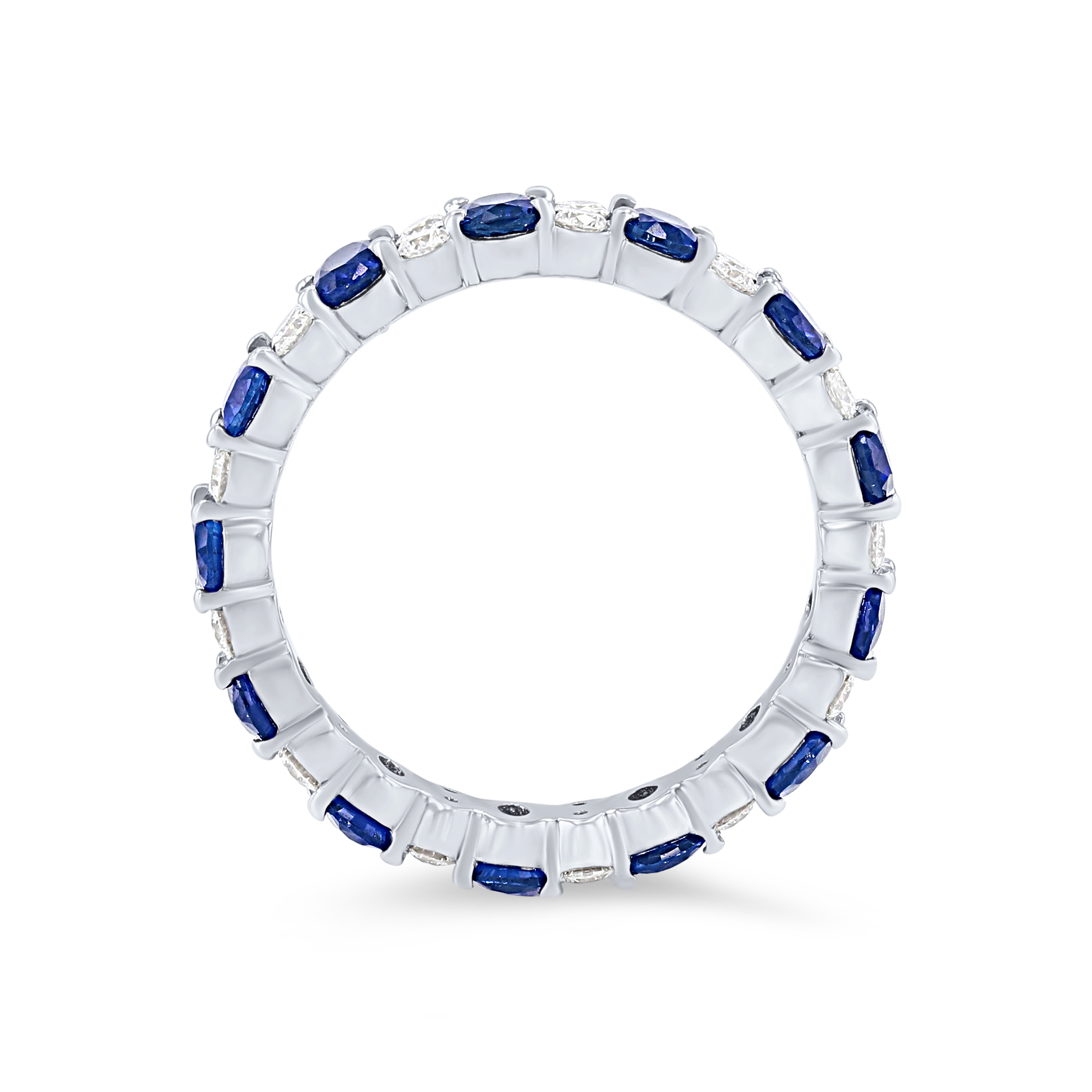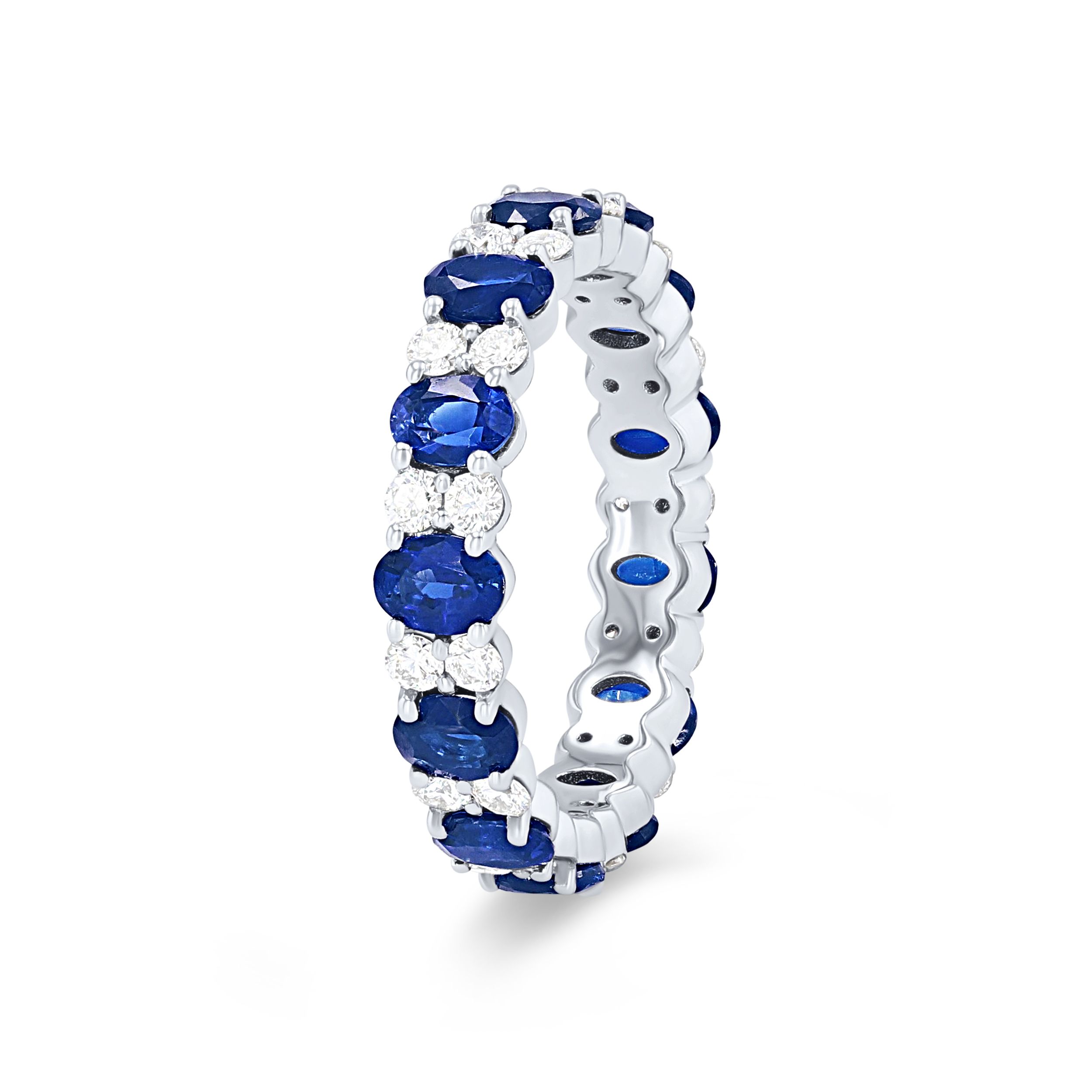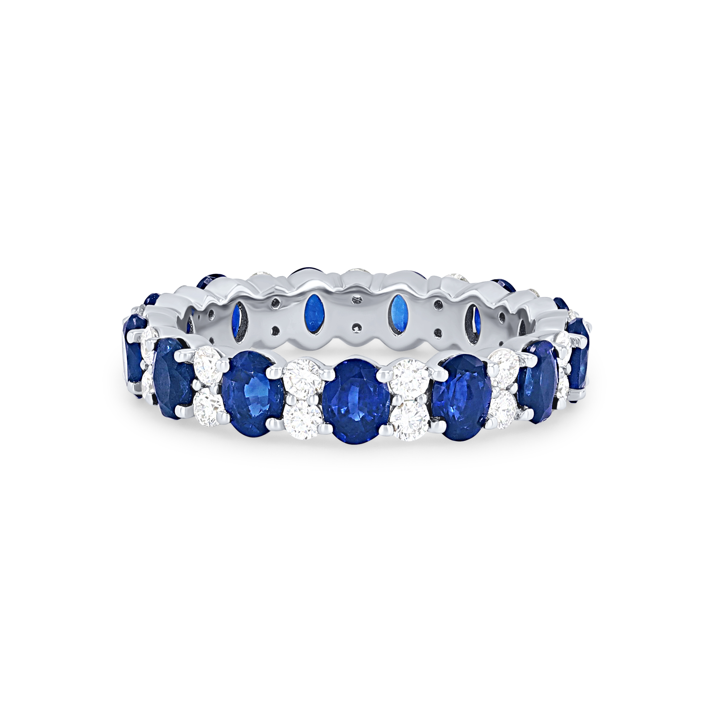 Product Description This eternity band features gorgeous oval cut blue sapphires totaling 2.72 carats alternating between round brilliant cut diamonds totaling 0.65 carats. Other Details Women Wedding Band Type: Gemstone Metal Color: Yellow Gold Type: Ladies Wedding Band Total Setting Diamond Carat Weight: 0.65TW Gemstone Type: Sapphire Total Gemstone Carat Weight: 2.72TW Disable Reason: None Metal Color: White Gold Diamond: Eternity Wedding Band Type: Fancy Shapes Style: Contemporary Metal Color: Platinum