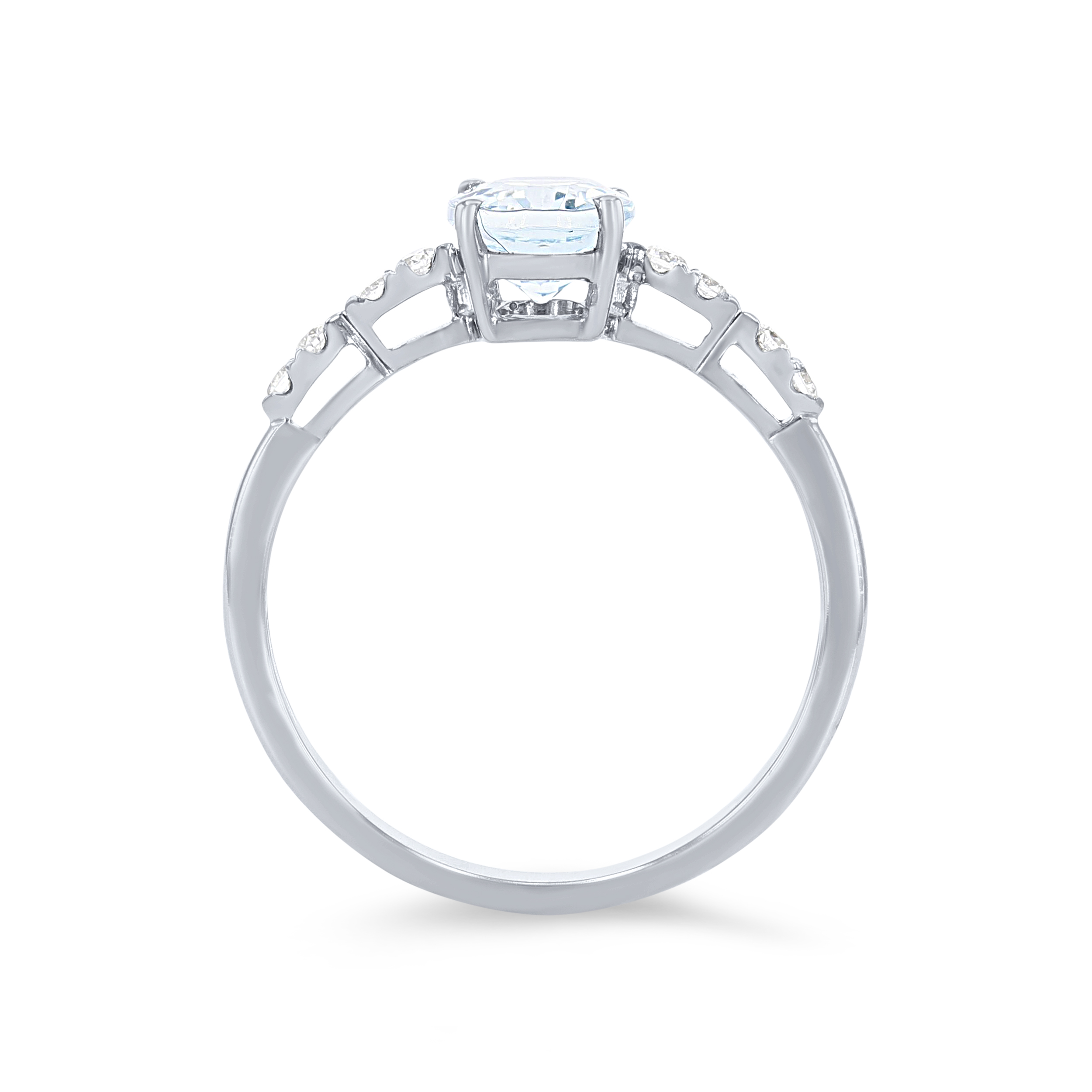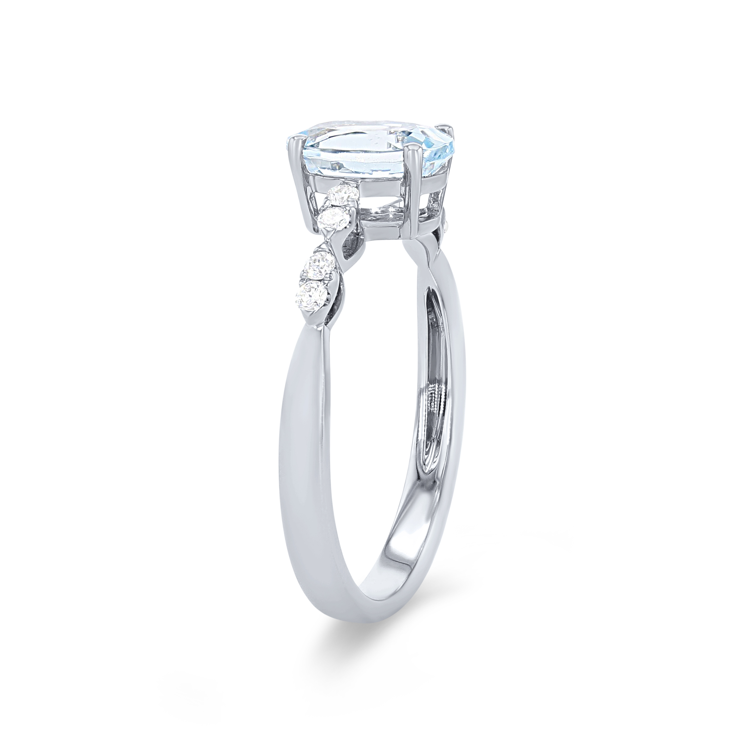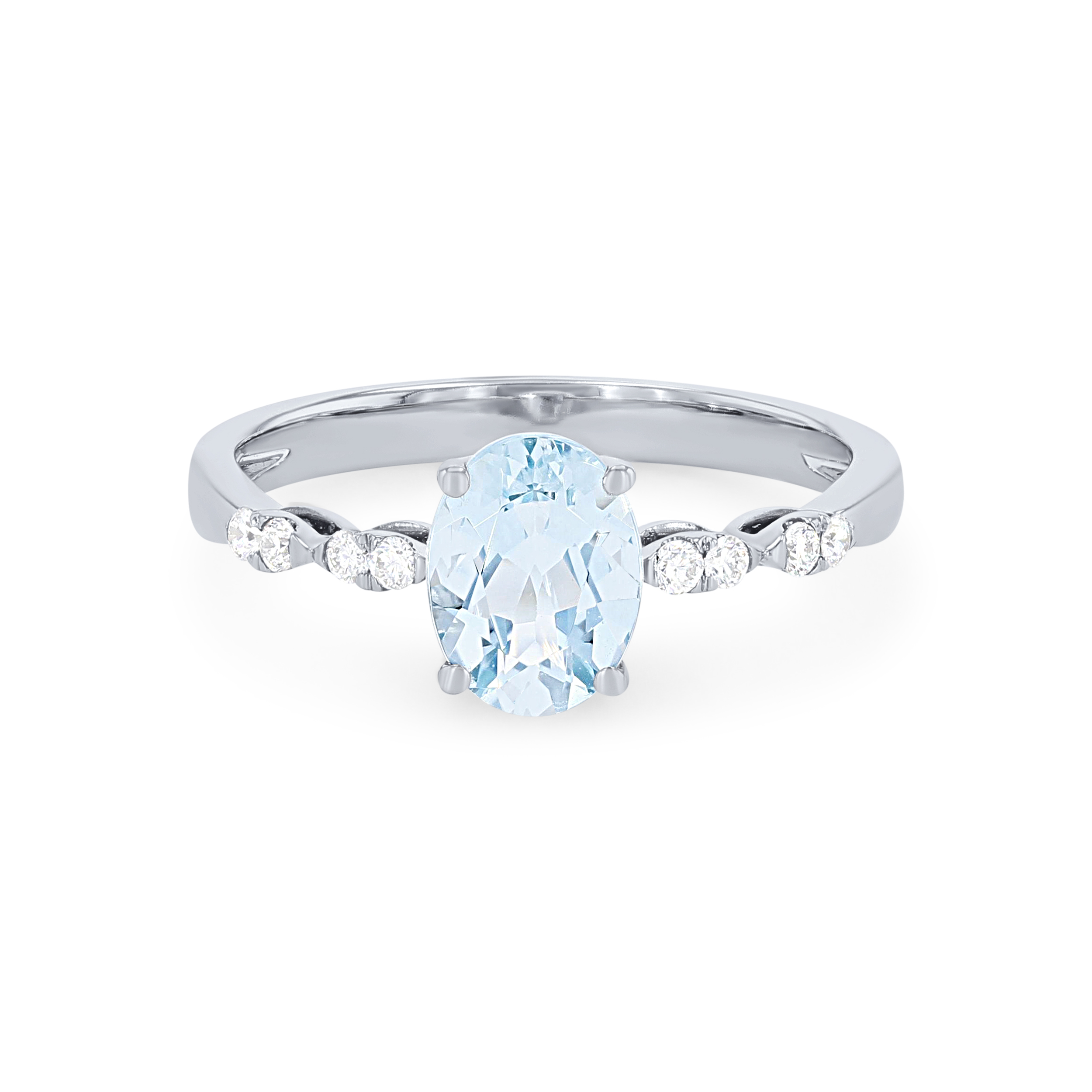 Product Description Crafted in a scalloped design, this ring features an oval cut aquamarine weighing 1.20 carats accented with 0.14 carats of round brilliant cut diamonds. Other Details Total Setting Diamond Carat Weight: 0.14TW Women Wedding Band Type: Gemstone Disable Reason: None Gemstone Type: Aqua Style: Contemporary Total Gemstone Carat Weight: 1.2TW Type: Ring Metal Color: White Gold