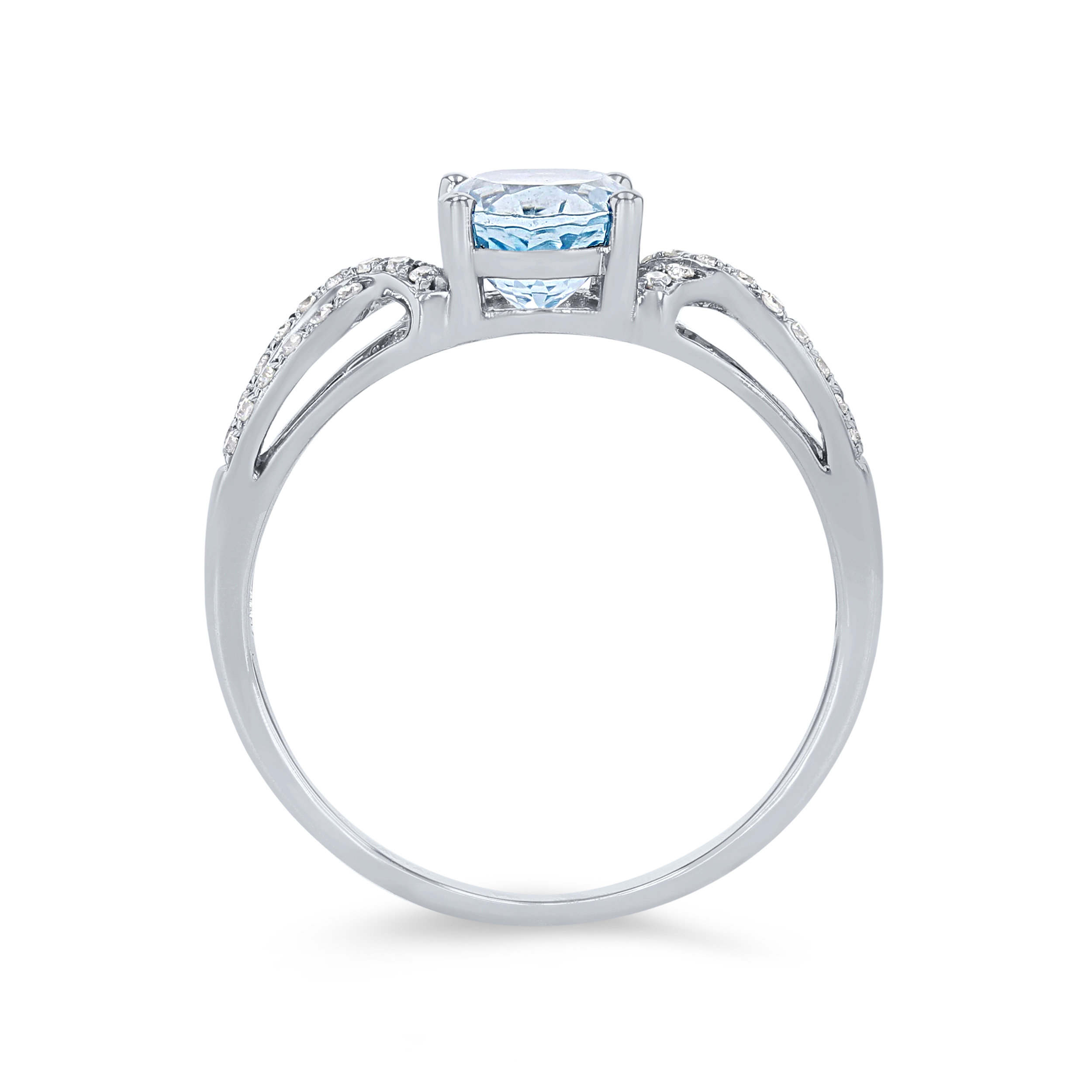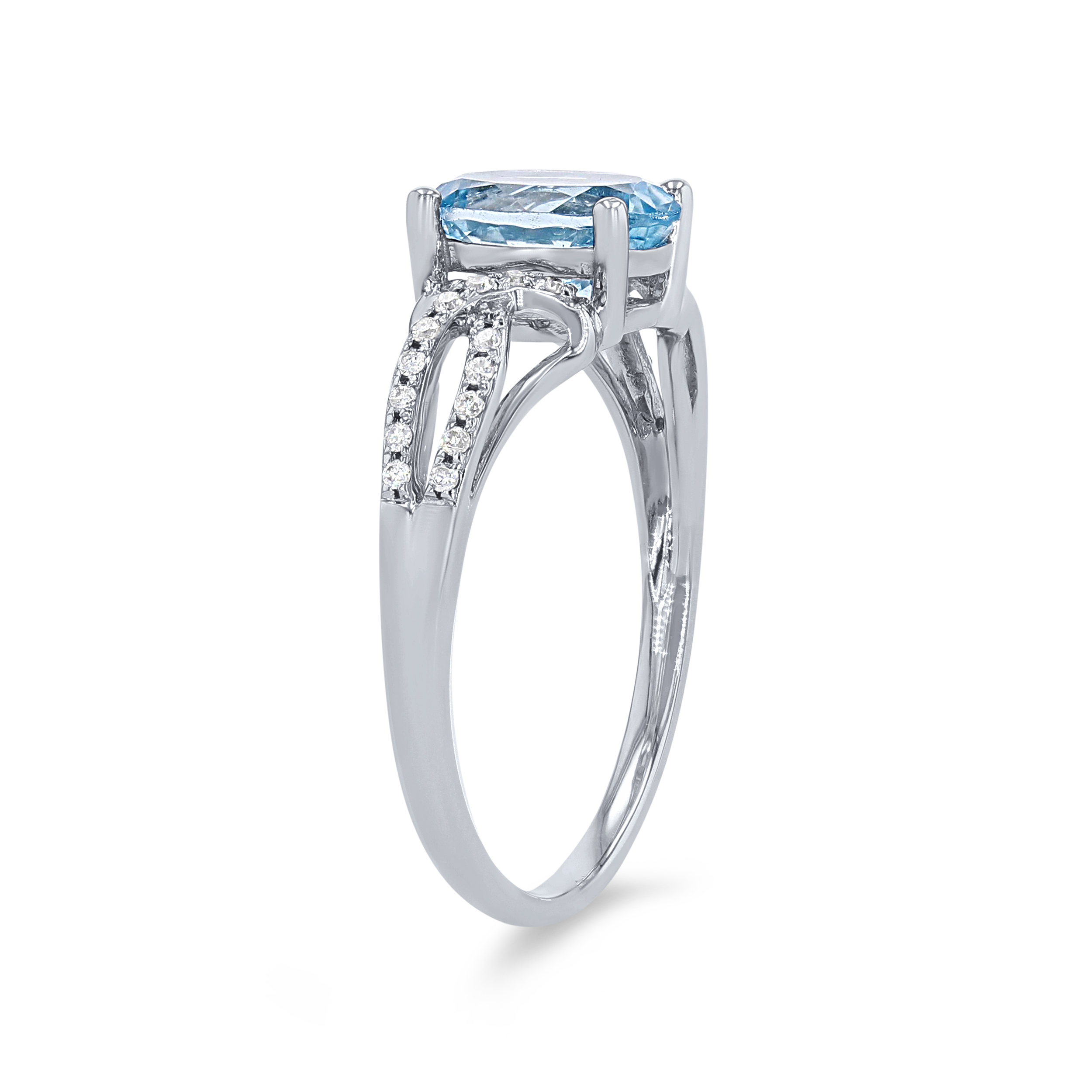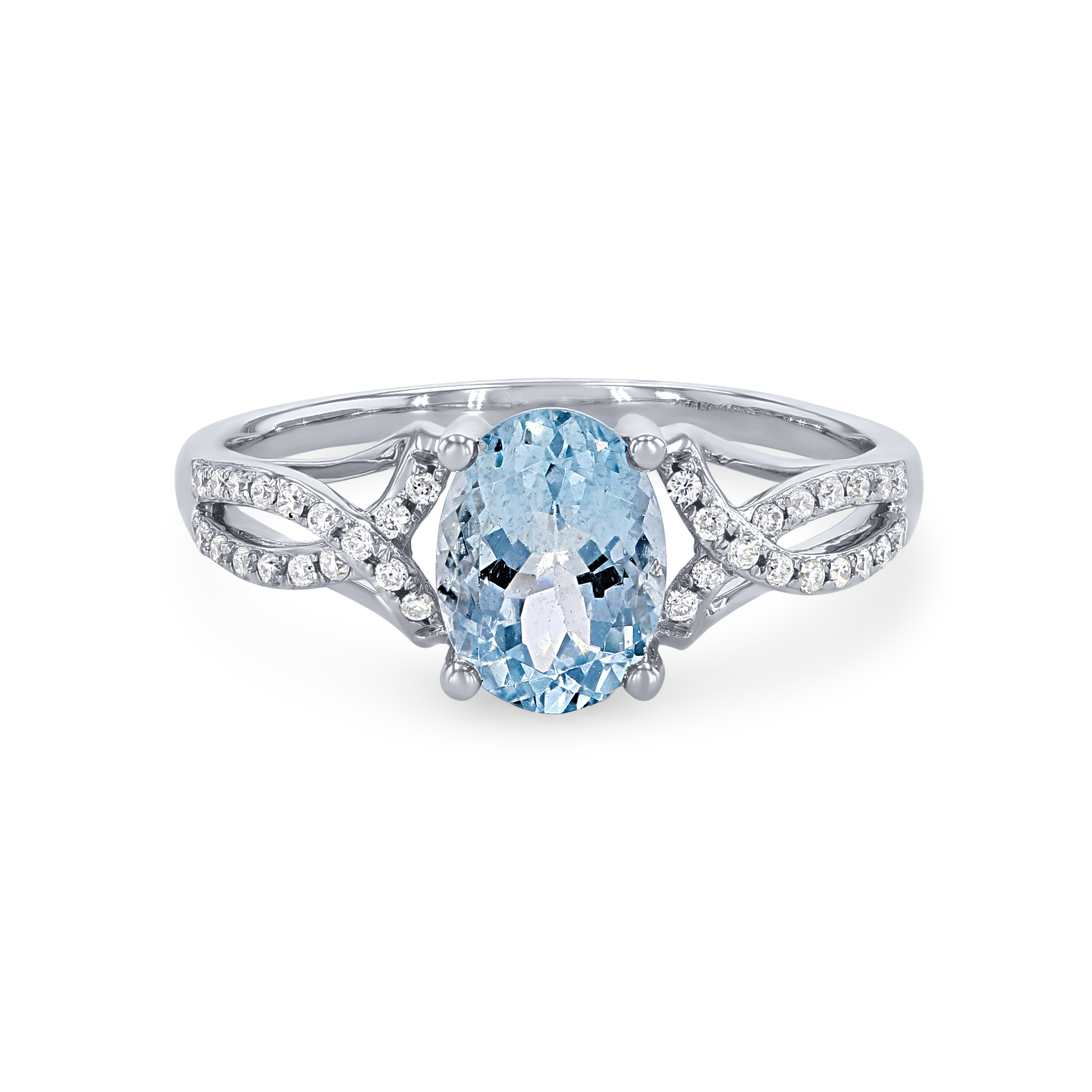 Product Description Crafted with romantic twist detail, this ring features a 1.10 carat oval cut aquamarine accented by 0.14 carats of round brilliant cut diamonds. Other Details Style: Contemporary Gemstone Type: Aqua Total Gemstone Carat Weight: 1.1TW Disable Reason: None Total Setting Diamond Carat Weight: 0.14TW Type: Ring Metal Color: White Gold Women Wedding Band Type: Gemstone