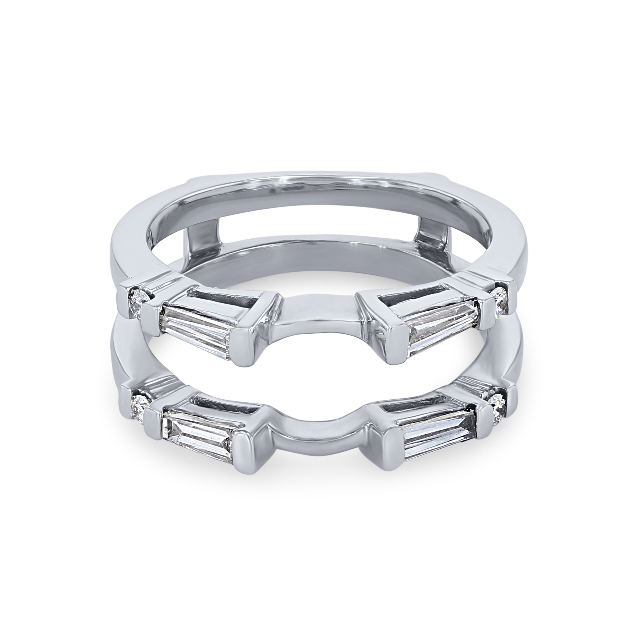 Product Description Enhance your engagement ring with this timeless ring guard, featuring round brilliant cut and baguette diamonds totaling 0.46 carats. Other Details Metal Color: Rose Gold Disable Reason: None Metal Color: Yellow Gold Metal Color: Platinum Total Setting Diamond Carat Weight: 0.46TW Gemstone Type: Diamond Wedding Band Type: Wraps & Guards Metal Color: White Gold Type: Ladies Wedding Band Style: Contemporary