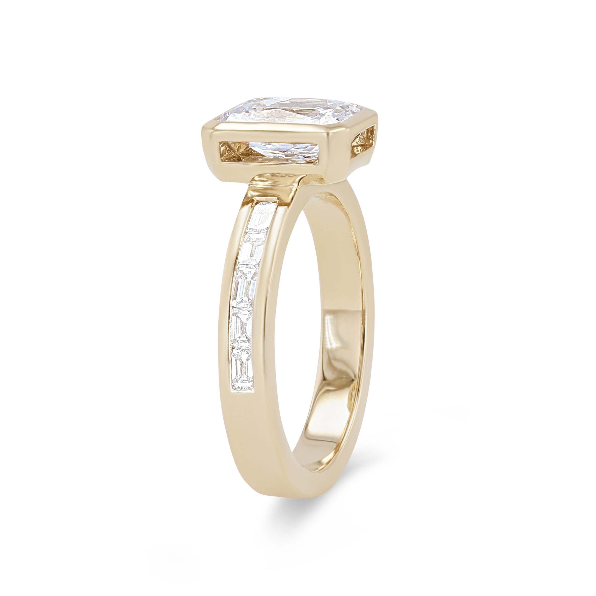 Product Description The heavy metal detail in the bezel and channel design create a beautiful vintage engagement setting, accented with 10 emerald cut diamonds totaling 0.96 carats. Other Details Metal Color: Yellow Gold Metal Color: White Gold Metal Color: Rose Gold Total Setting Diamond Carat Weight: 0.45TW Metal Color: Platinum Gemstone Type: Diamond Style: Vintage Type: Setting Mounting Type: Diamond Accented Disable Reason: None