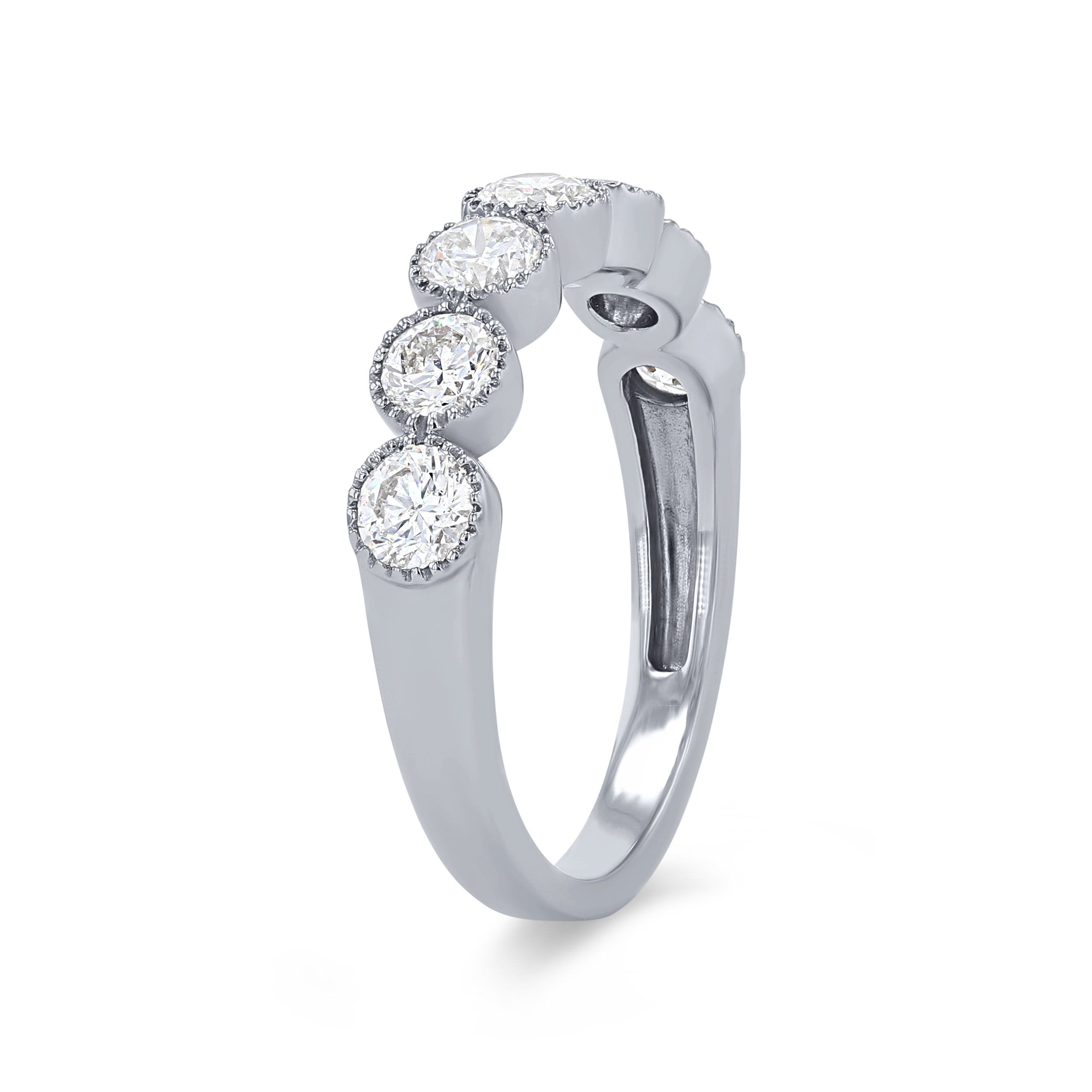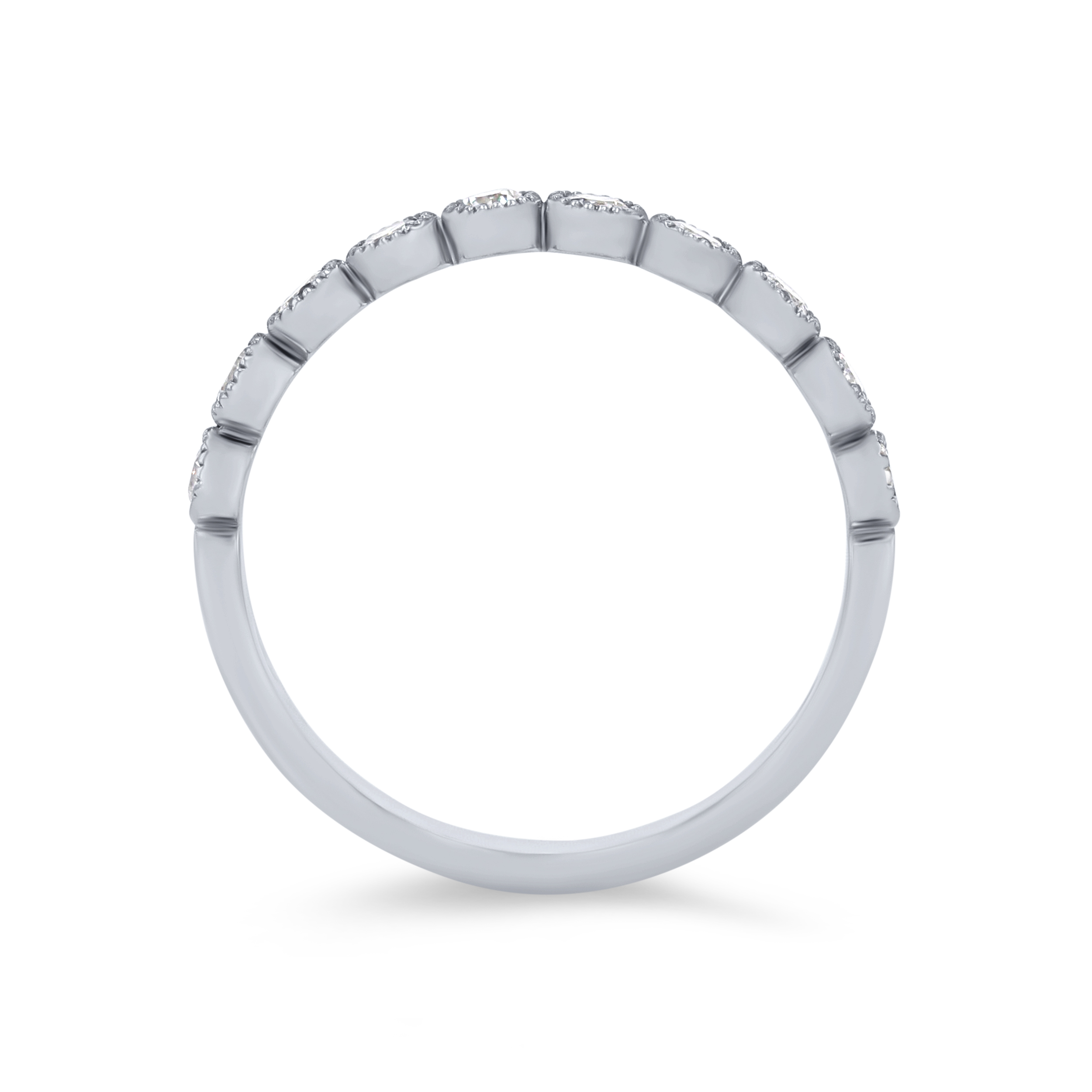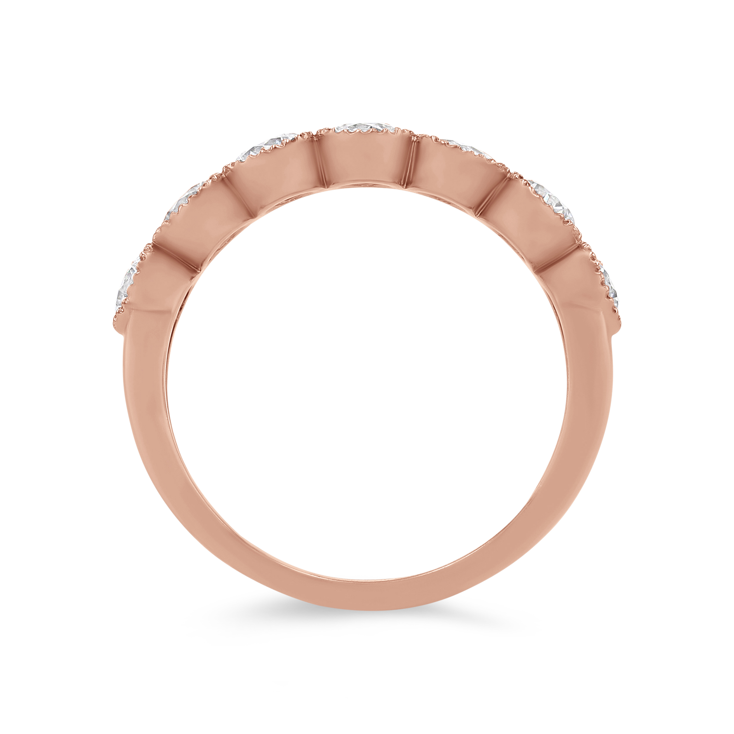 Product Description Sport a vintage look with this stunning wedding band accented with milgrain detail and round brilliant cut diamonds. Other Details Wedding Band Type: Vintage Type: Ladies Wedding Band Metal Color: Yellow Gold Metal Color: White Gold Diamond: Bezel Metal Color: Rose Gold Disable Reason: None Gemstone Type: Diamond Metal Color: Platinum