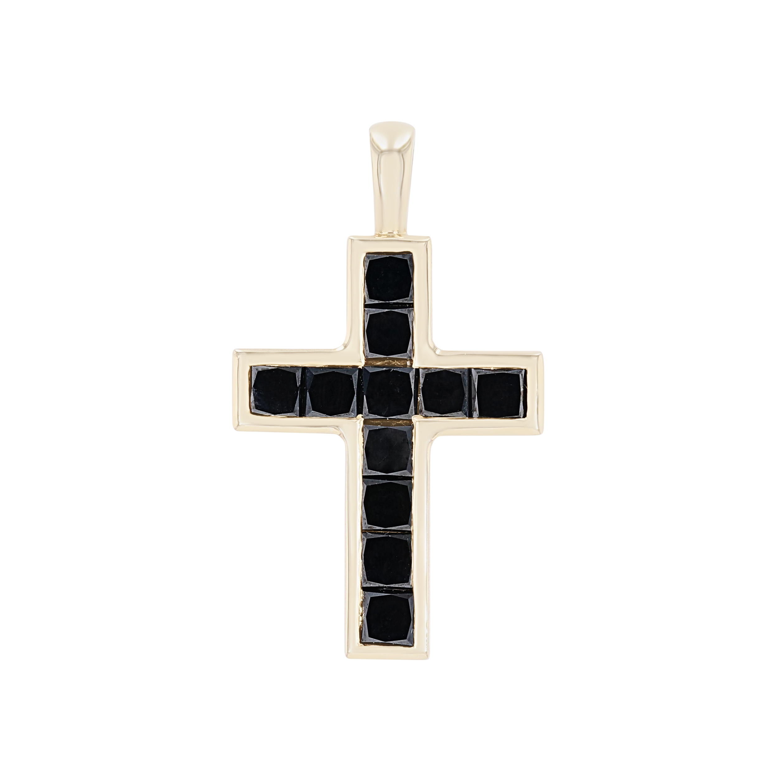 Product Description This beautiful cross pendant features 11 black princess cut diamonds totaling 4.08 carats. Including the bail, it measures approximately 34.6 x 20.1 millimeters. Chain sold separately. Other Details Total Setting Diamond Carat Weight: 4.08TW Gemstone Type: Diamond Type: Gents Pendant Style: Classic Metal Color: Yellow Gold Disable Reason: None
