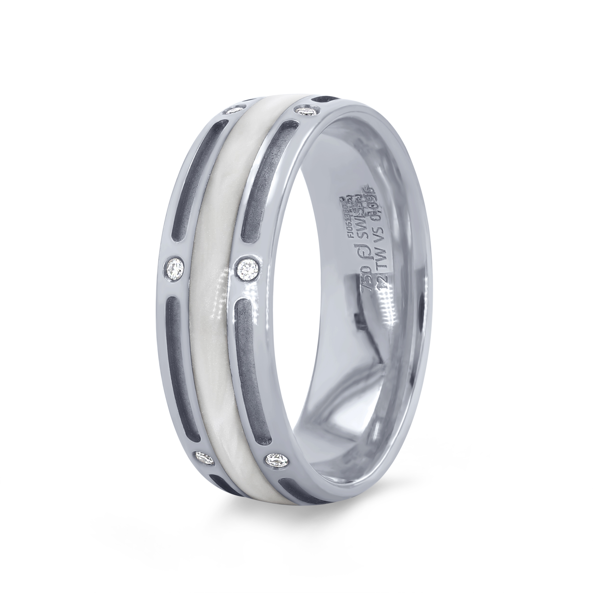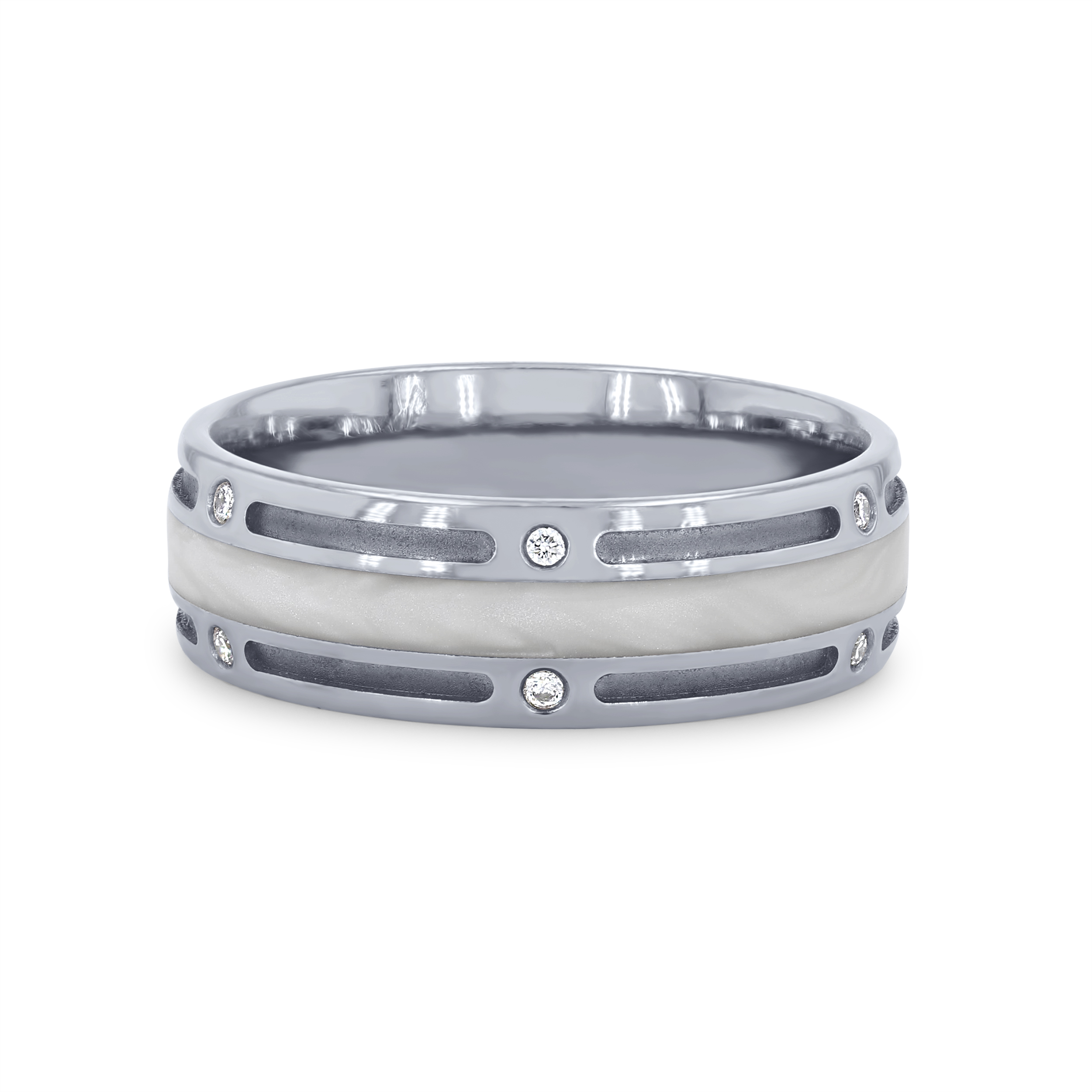 Product Description Modern and unique, this wedding band features a center layer of ceramic and accents of round brilliant cut diamonds totaling 0.09 carats. Other Details Gents Wedding Band Style: Contemporary Men Wedding Band Type: Carved Metal Color: Yellow Gold Gemstone Type: Diamond Metal Color: Platinum Metal Color: White Gold Disable Reason: None Type: Gents Wedding Band Metal Color: Rose Gold Total Setting Diamond Carat Weight: 0.09TW