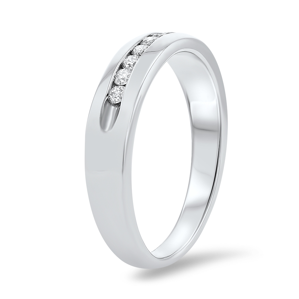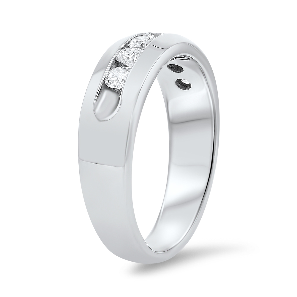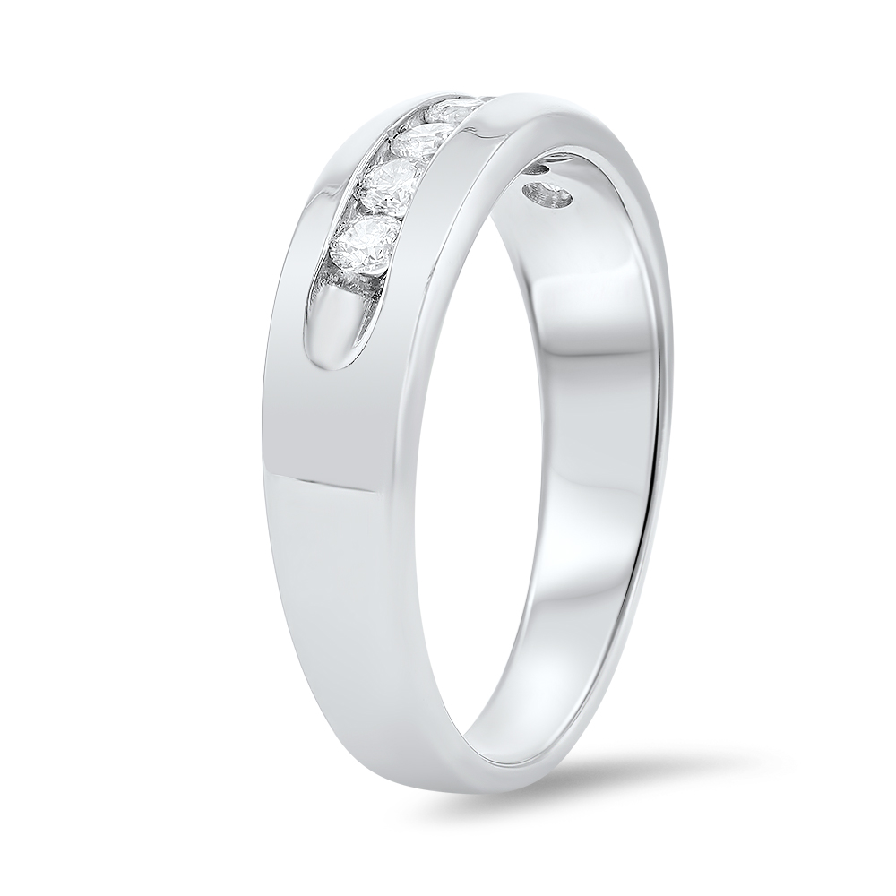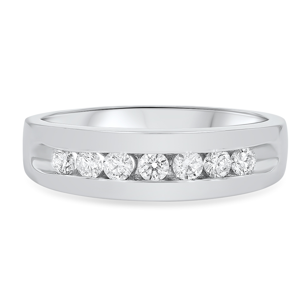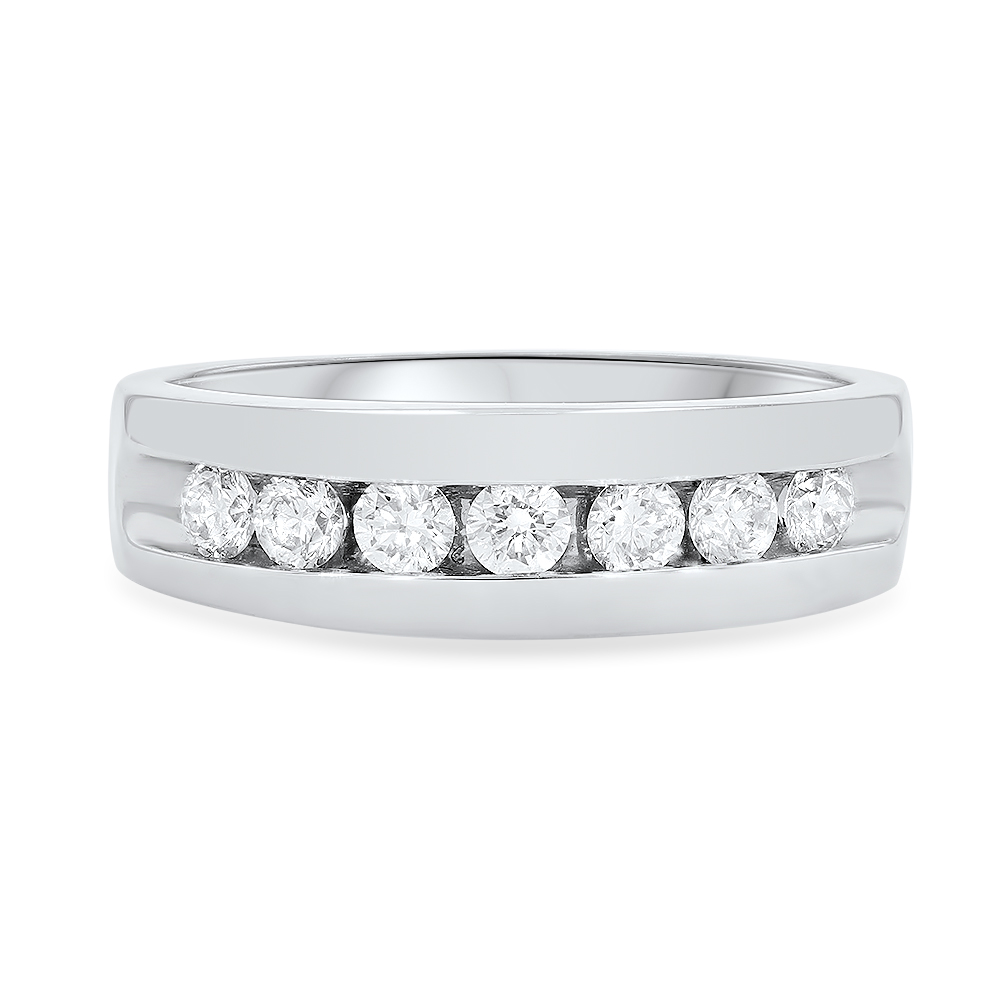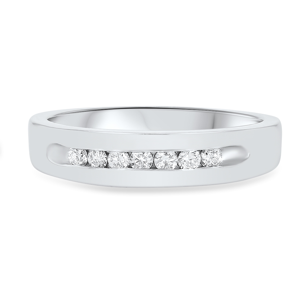Make a statement with this eye-catching channel wedding band featuring round brilliant cut diamonds.