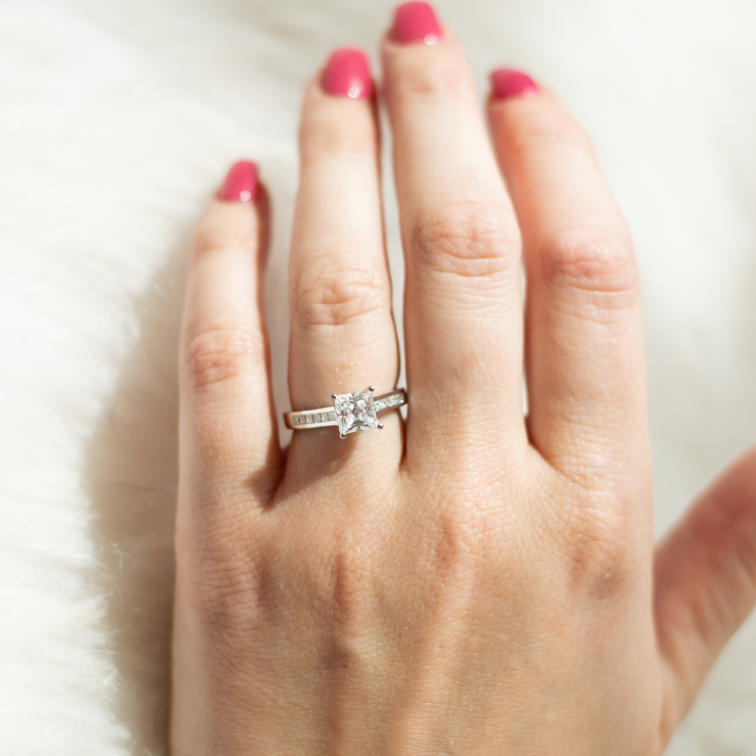 Product Description Sparkling princess cut diamonds that total 0.44 carats sit in a classic channel design. Other Details Metal Color: Rose Gold Disable Reason: None Metal Color: White Gold Gemstone Type: Diamond Metal Color: Yellow Gold Total Setting Diamond Carat Weight: 0.44TW Style: Classic Type: Setting Metal Color: Platinum Mounting Type: Diamond Accented