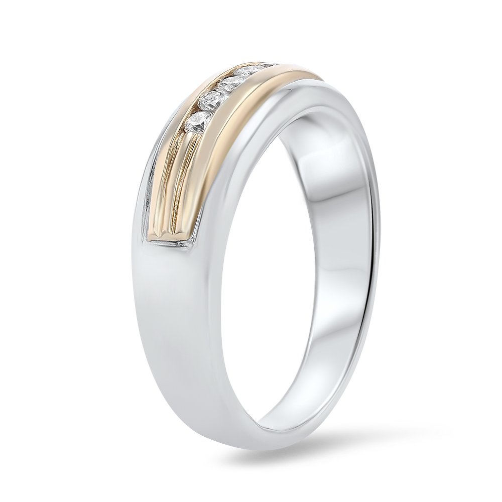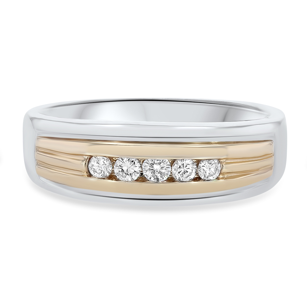 Product Description This contemporary men's band from Paul Winston features five round brilliant diamonds totaling 0.24 carats. Other Details Gemstone Type: Diamond Metal Color: Rose Gold Total Setting Diamond Carat Weight: 0.24TW Gents Wedding Band Style: Contemporary Metal Color: White Gold Type: Gents Wedding Band Metal Color: Platinum Disable Reason: None Metal Color: Two Tone Metal Color: Yellow Gold