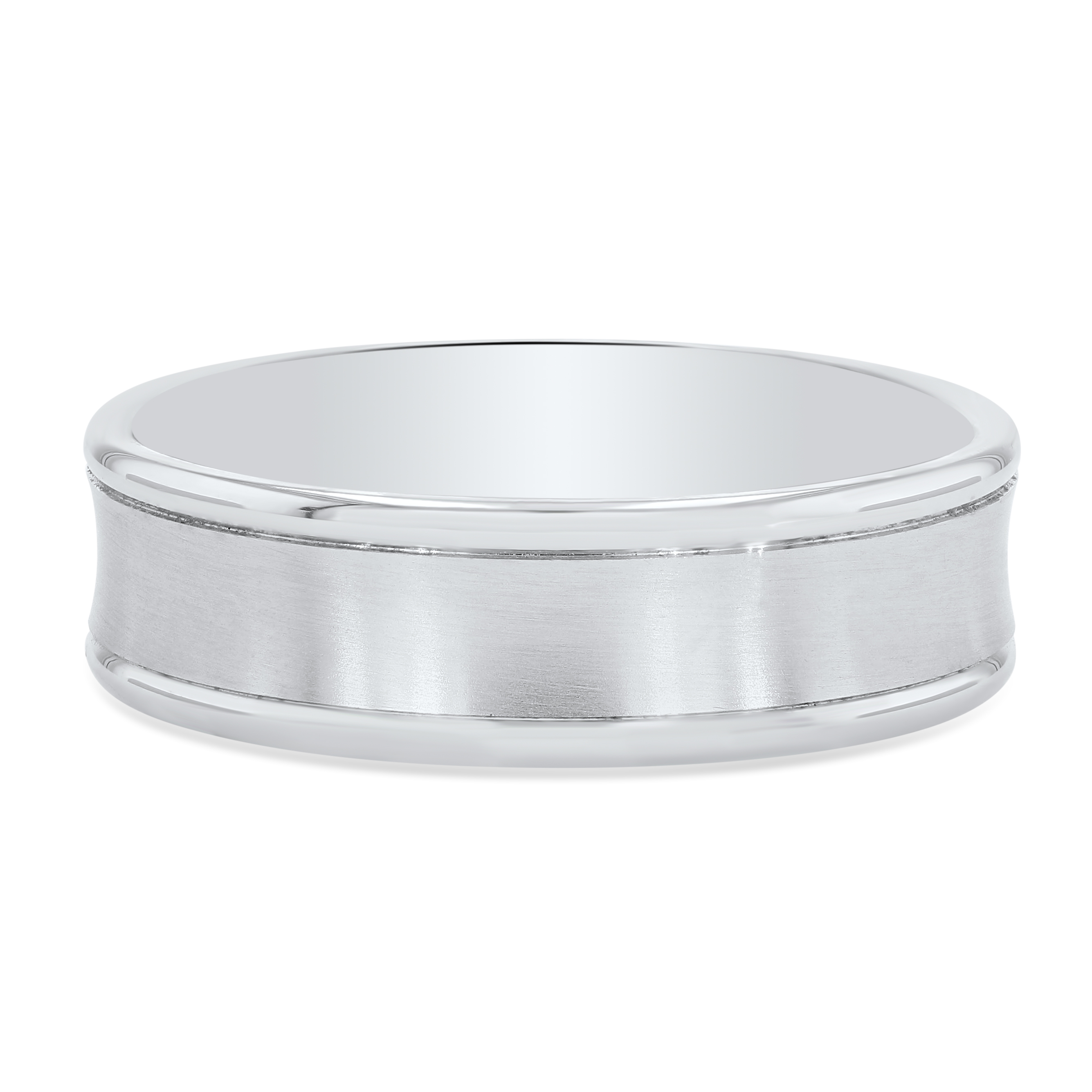 Product Description This wedding band features a contemporary concave design with a matte finish measuring 6.5 millimeters wide. Other Details Metal Color: Rose Gold Gents Wedding Band Style: Contemporary Metal Color: White Gold Men Wedding Band Type: Men's Plain Bands Disable Reason: None Metal Color: Platinum Type: Gents Wedding Band Metal Color: Yellow Gold