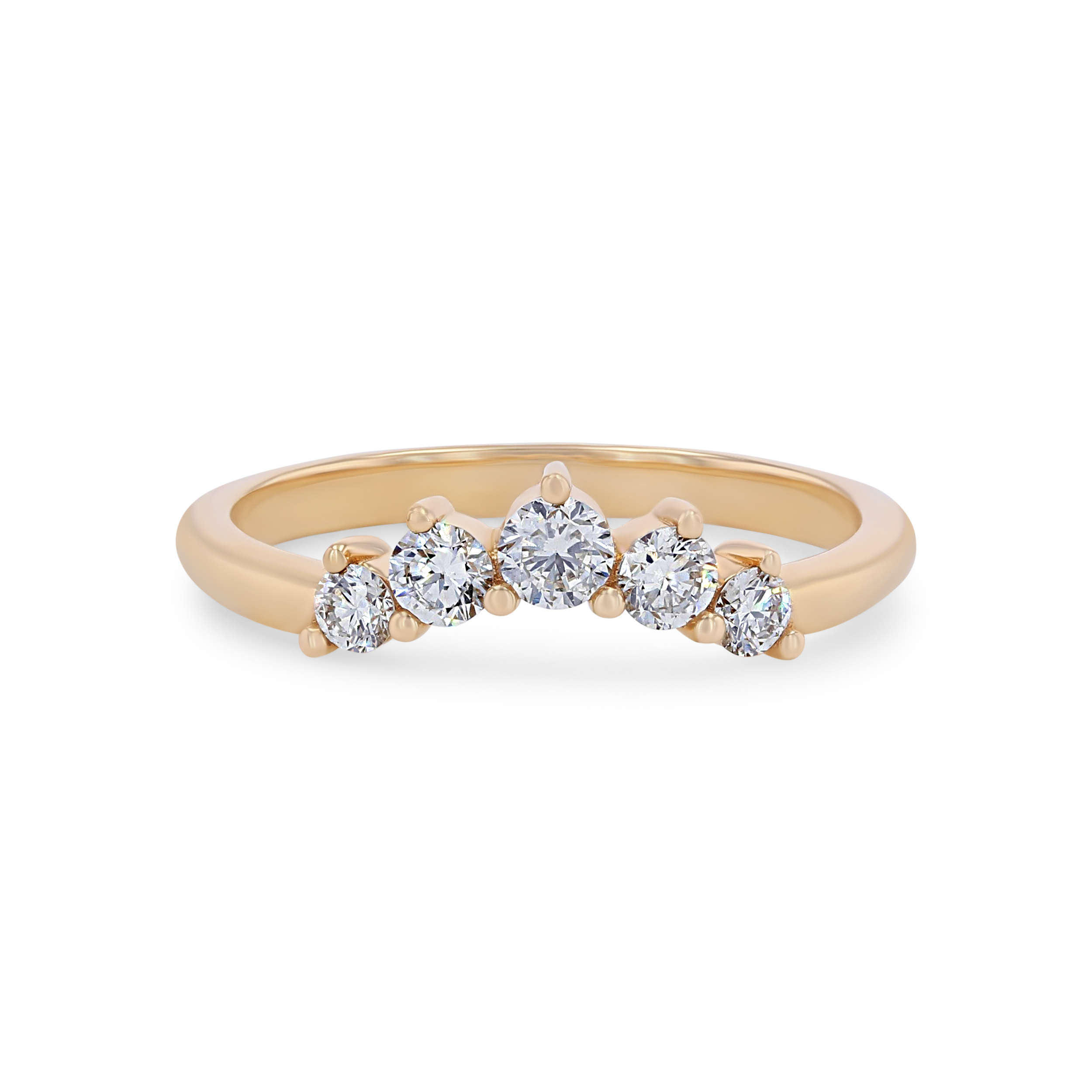 Product Description Five round brilliant cut diamonds totaling 0.38 carats curve into an elegant modern look, enhancing any engagement ring. Other Details Wedding Band Type: Contoured Type: Ladies Wedding Band Disable Reason: None Metal Color: Rose Gold Metal Color: Platinum Metal Color: Yellow Gold Metal Color: White Gold Gemstone Type: Diamond Total Setting Diamond Carat Weight: 0.38TW Style: Contemporary