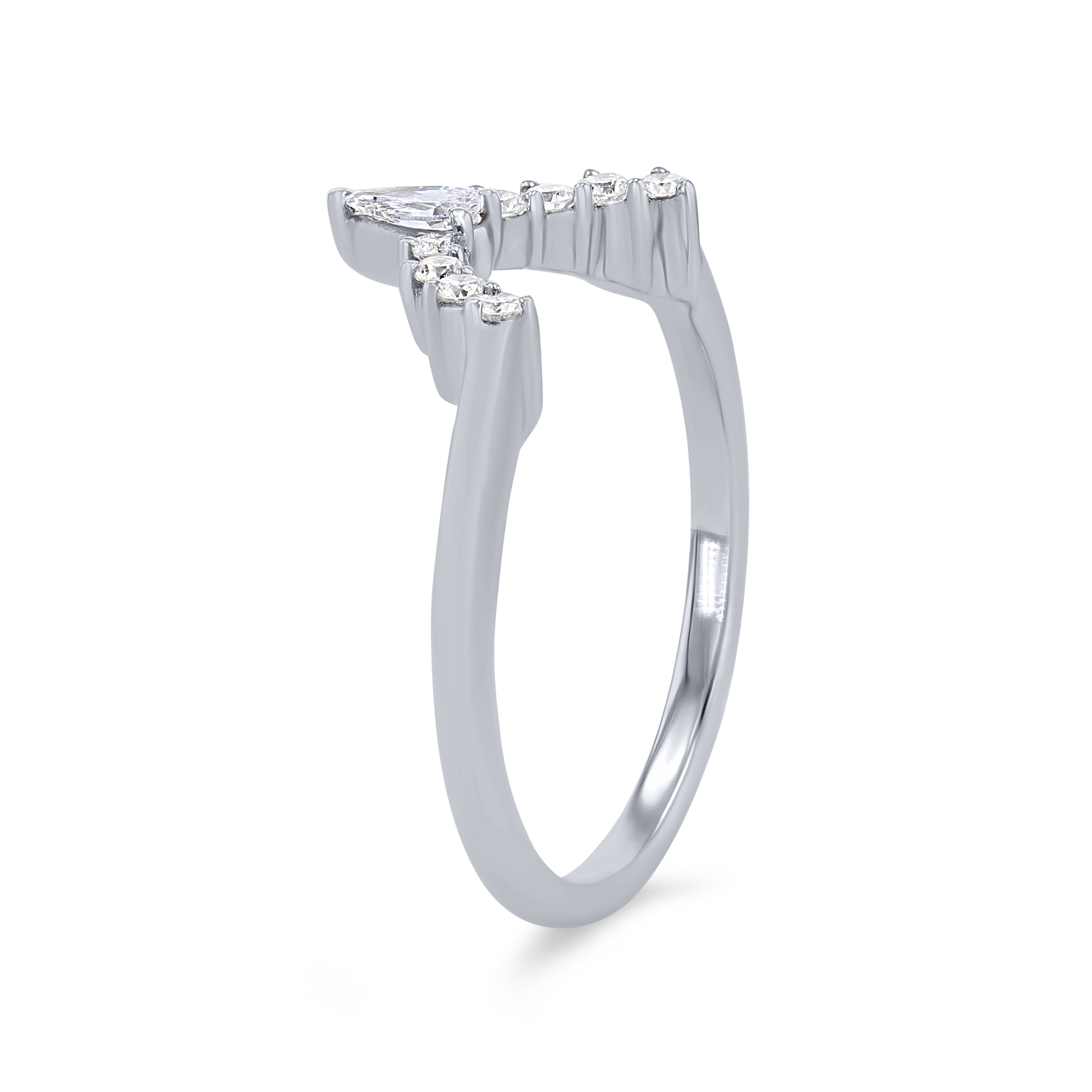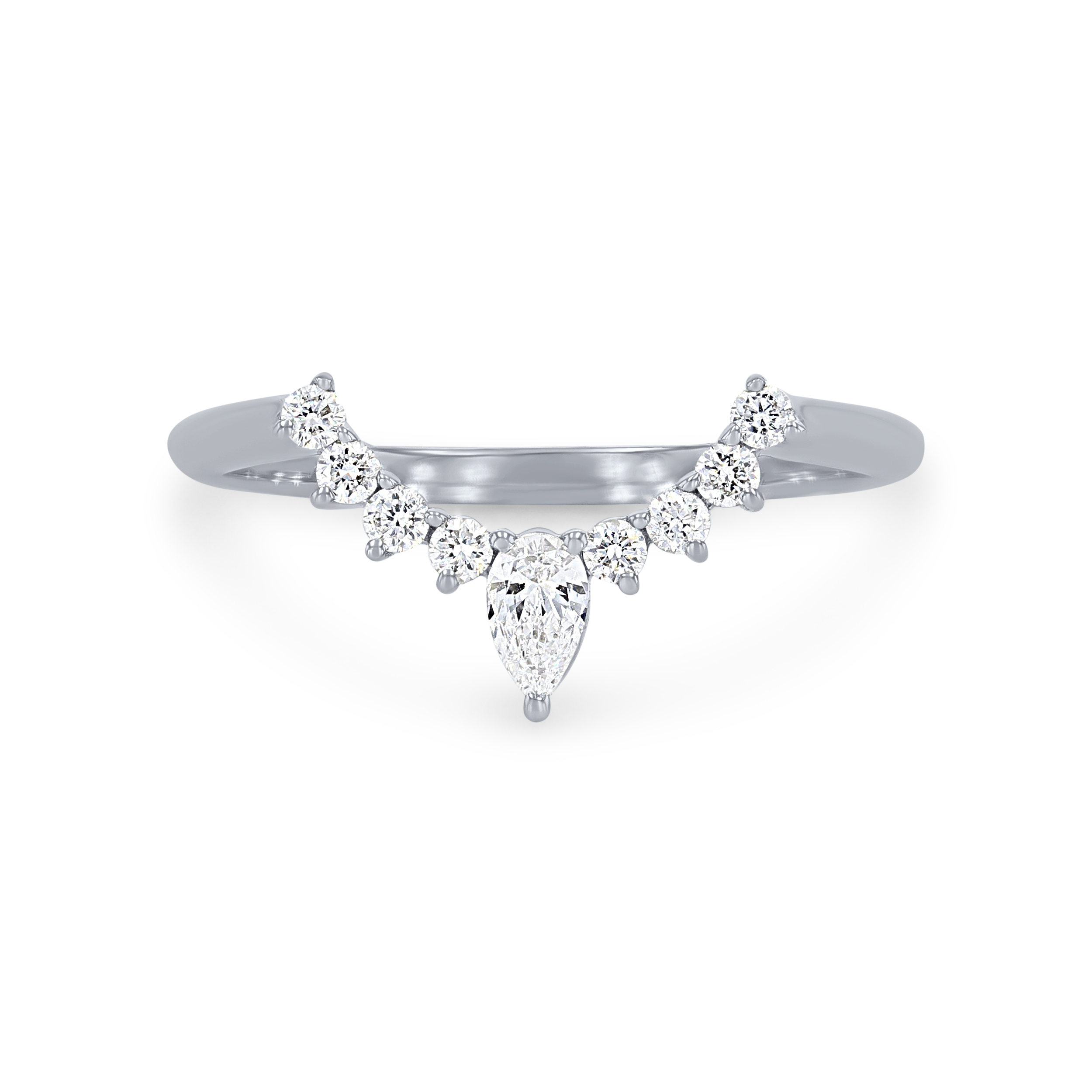 Product Description Round brilliant cut diamonds curve to a single pear shape diamond, totaling 0.23 carats. This contemporary style adds a unique look to any engagement ring. Other Details Wedding Band Type: Contoured Total Setting Diamond Carat Weight: 0.23TW Type: Ladies Wedding Band Metal Color: Platinum Disable Reason: None Gemstone Type: Diamond Metal Color: Rose Gold Diamond: Fancy Shapes Metal Color: White Gold Style: Contemporary Metal Color: Yellow Gold