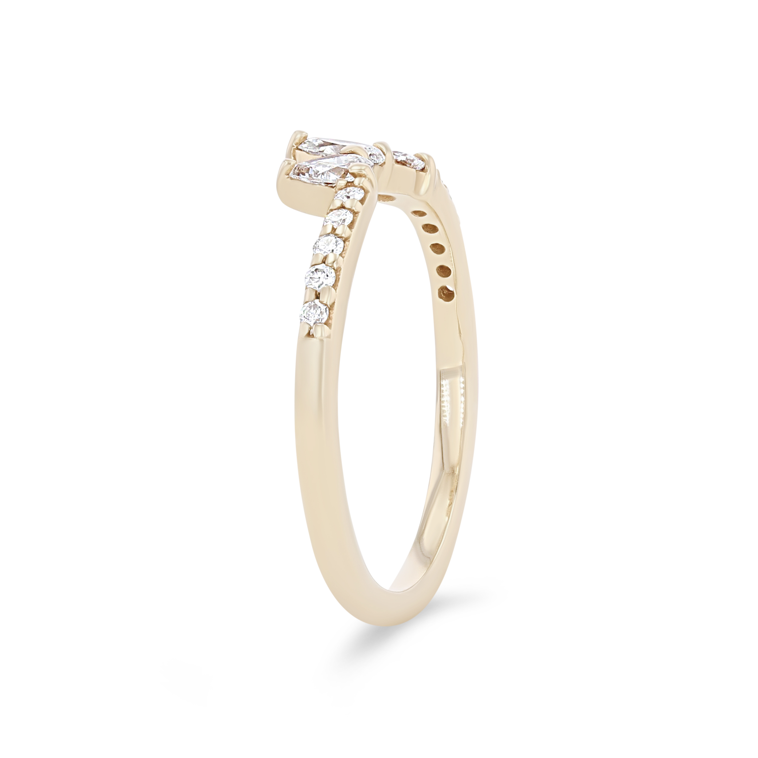 Product Description Crafted with a slight contour, this wedding band features three pear shape diamonds accented with round brilliant cut diamonds, all totaling 0.52 carats. Other Details Gemstone Type: Diamond Wedding Band Type: Fancy Shapes Metal Color: White Gold Metal Color: Rose Gold Total Setting Diamond Carat Weight: 0.52TW Diamond: Contoured Style: Contemporary Type: Ladies Wedding Band Metal Color: Platinum Disable Reason: None Metal Color: Yellow Gold