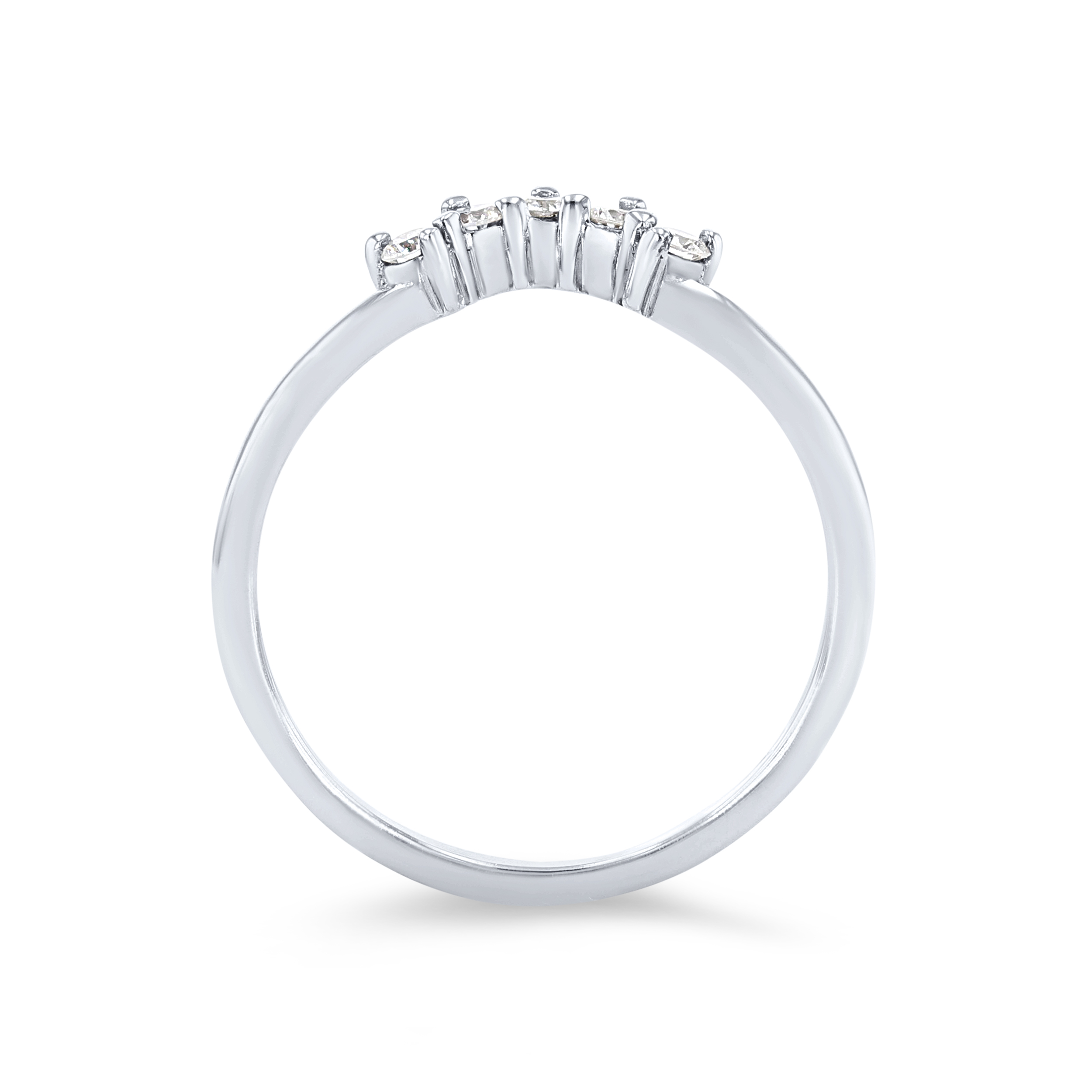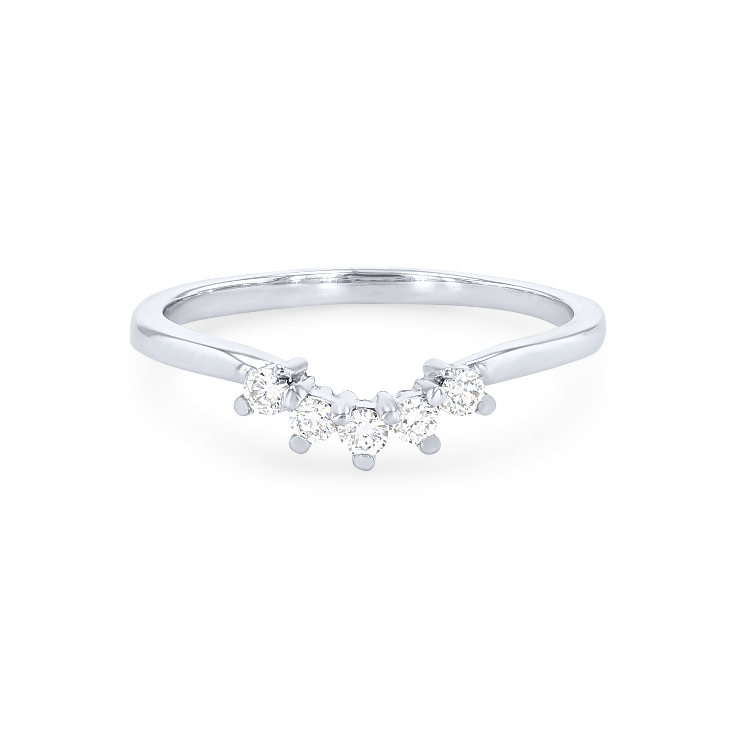 Product Description A simple yet beautiful way to accentuate many engagement settings, this curved wedding band features five round brilliant cut diamonds totaling 0.14 carats. Other Details Metal Color: Platinum Metal Color: Rose Gold Metal Color: White Gold Type: Ladies Wedding Band Metal Color: Yellow Gold Disable Reason: None Total Setting Diamond Carat Weight: 0.14TW Style: Contemporary Gemstone Type: Diamond Wedding Band Type: Contoured