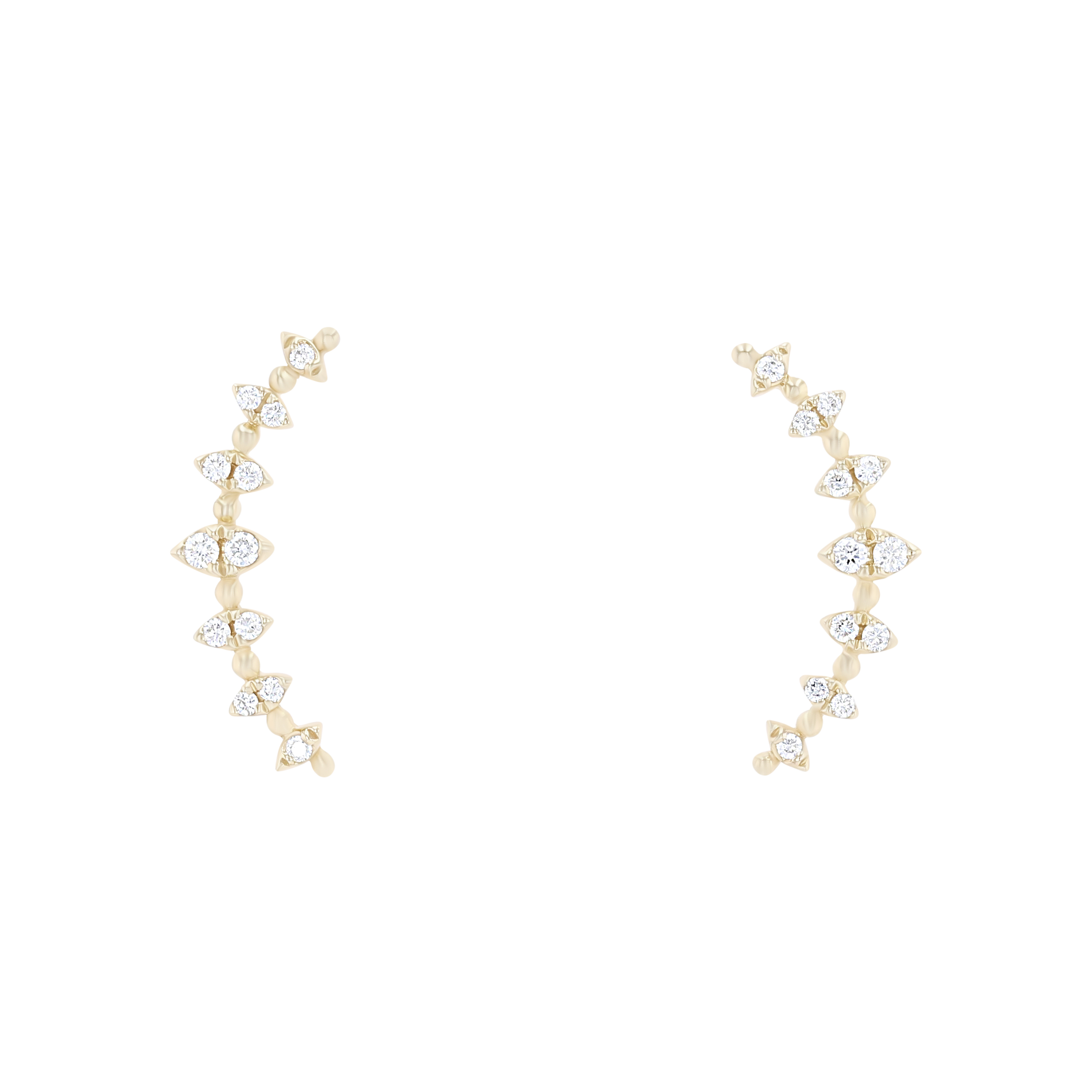 Product Description Delicate and trend-worthy, these ear climbers feature 0.22 carats of round brilliant cut diamonds alternating with beads of metal. Other Details Earring Type: Fashion Studs Gemstone Type: Diamond Total Setting Diamond Carat Weight: 0.22TW Metal Color: Yellow Gold Style: Contemporary Disable Reason: None Type: Earrings