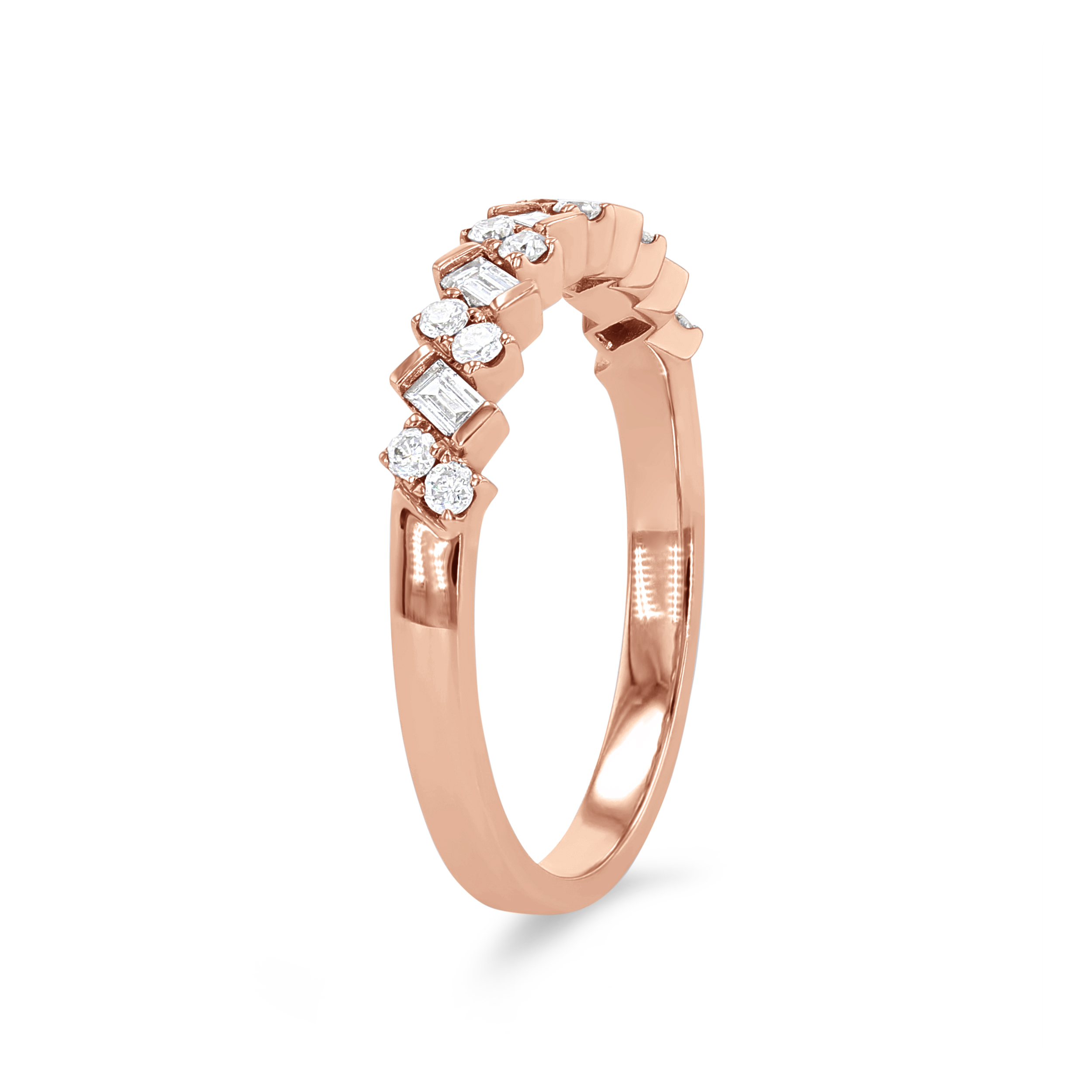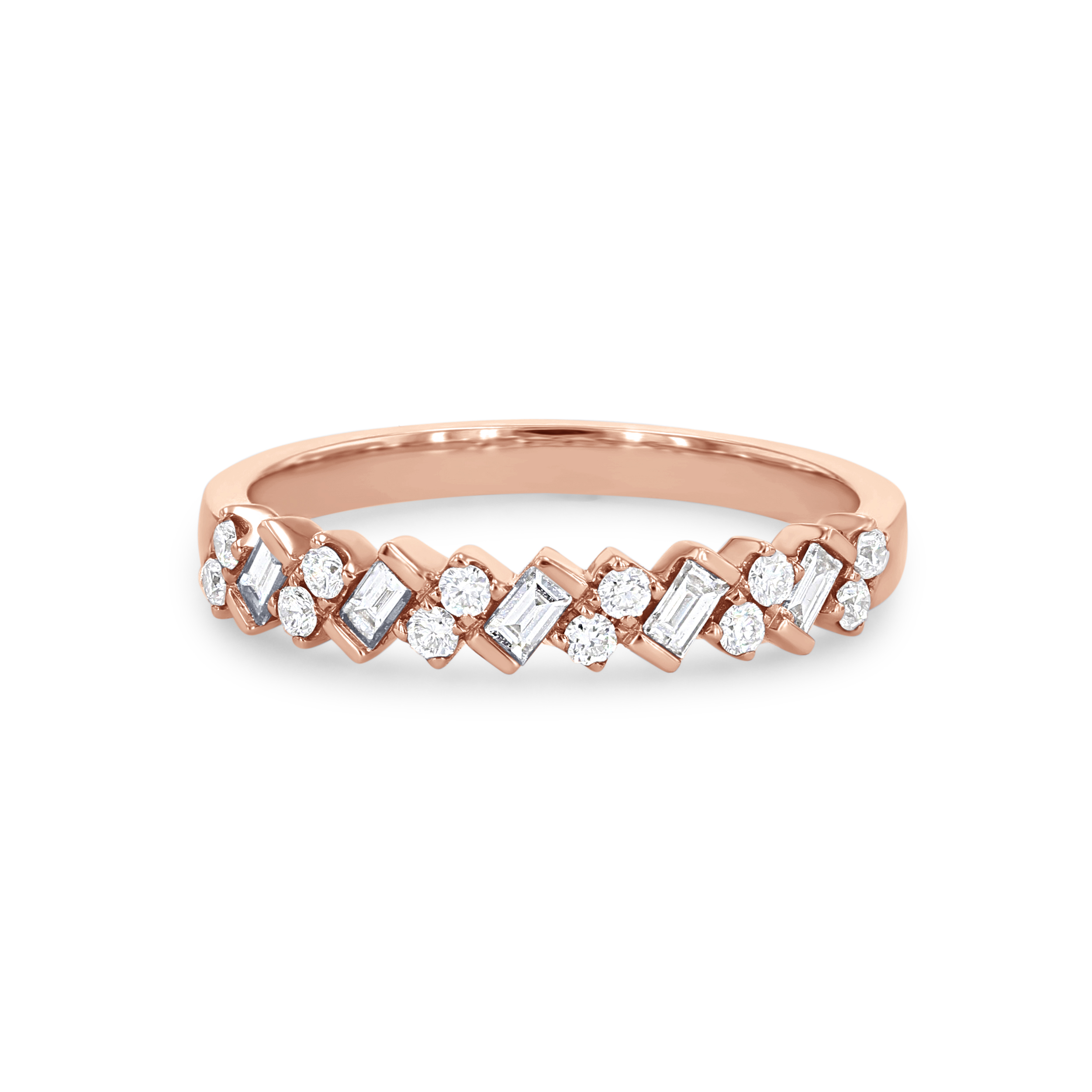 Diagonal Alternating Baguette and Round Diamond Wedding Band by Uneek