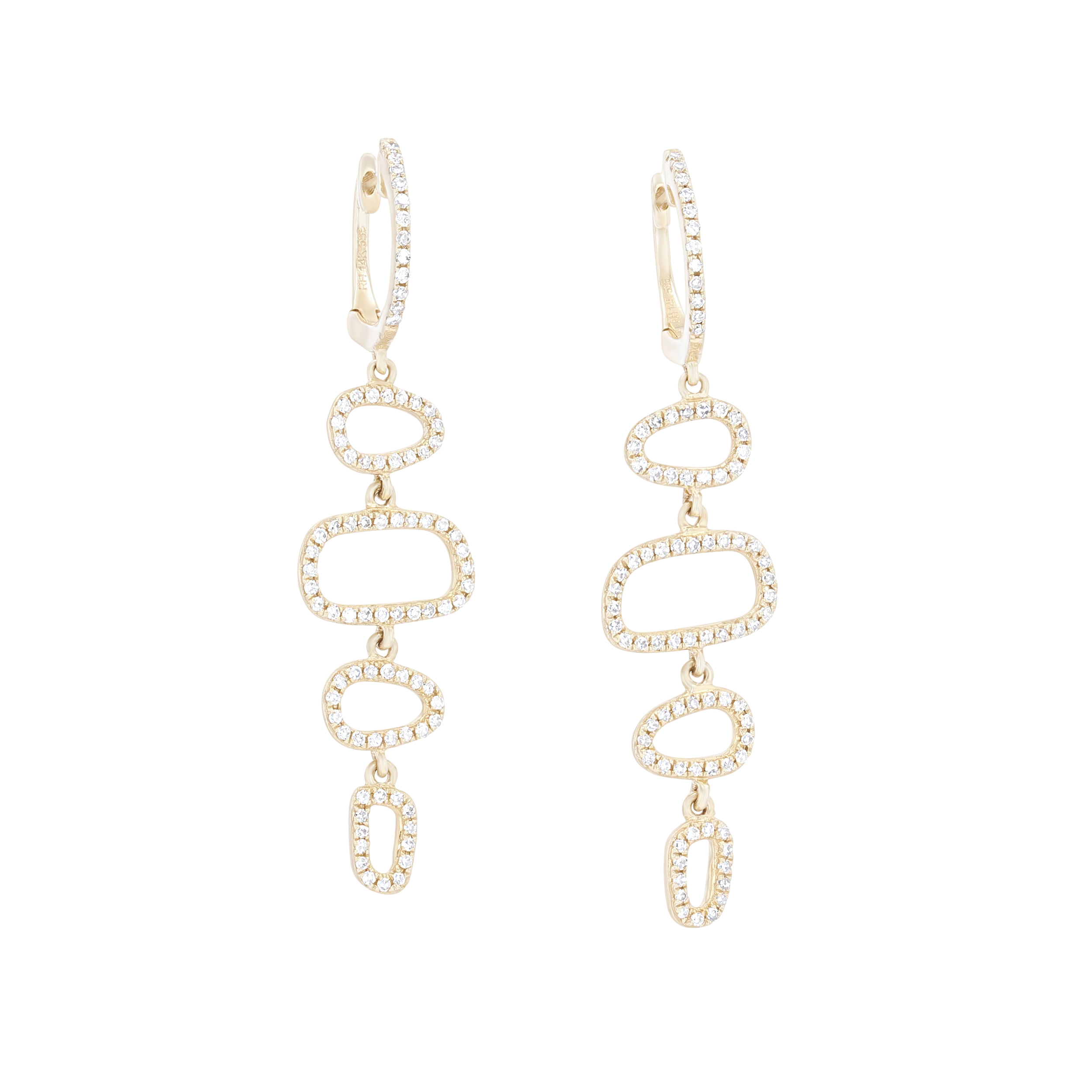 Product Description Modern and abstract, these dangle earrings feature shapes of round brilliant cut diamonds totaling 0.54 carats. Other Details Earring Type: Dangle Metal Color: White Gold Gemstone Type: Diamond Disable Reason: None Metal Color: Rose Gold Total Setting Diamond Carat Weight: 0.54TW Type: Earrings Metal Color: Yellow Gold Style: Contemporary