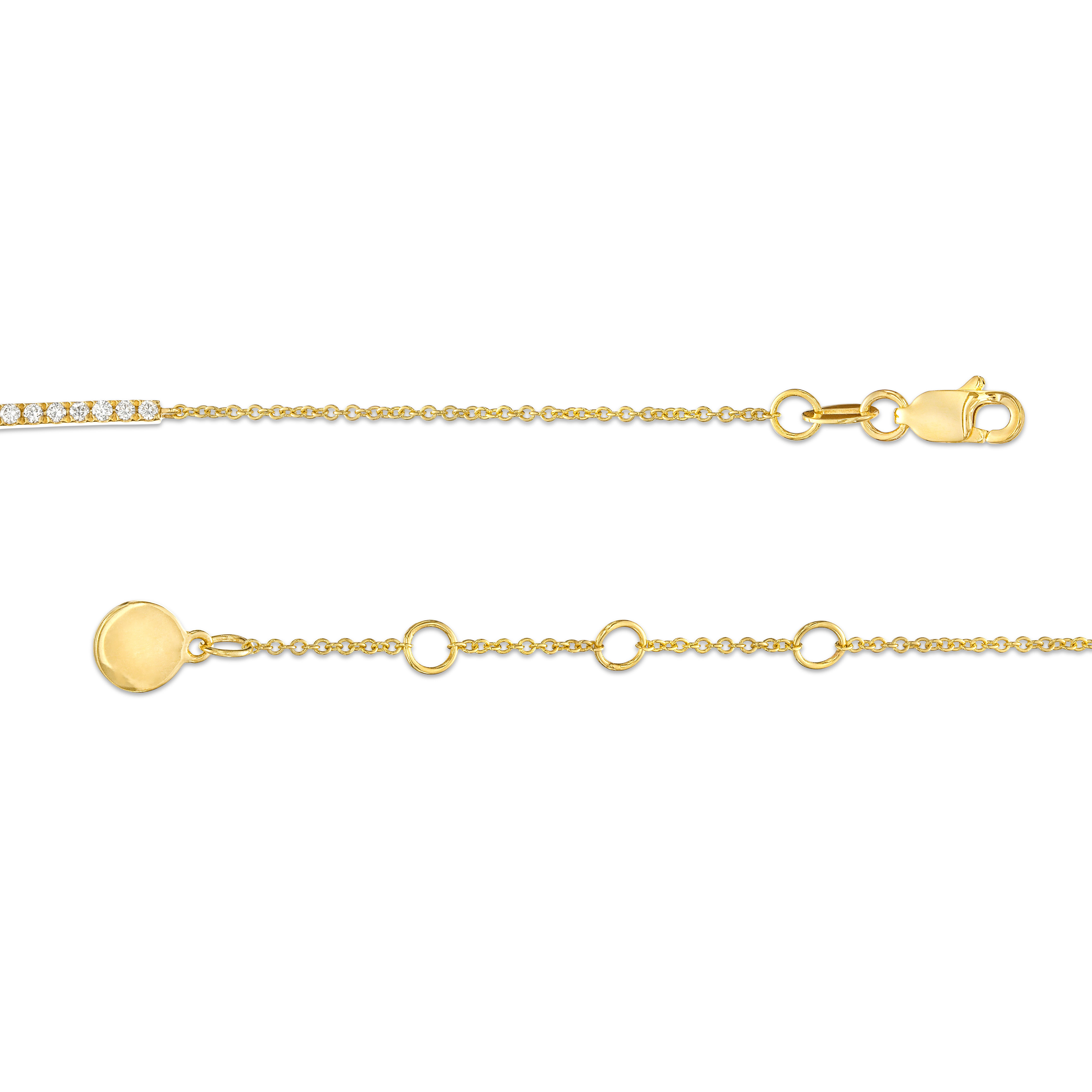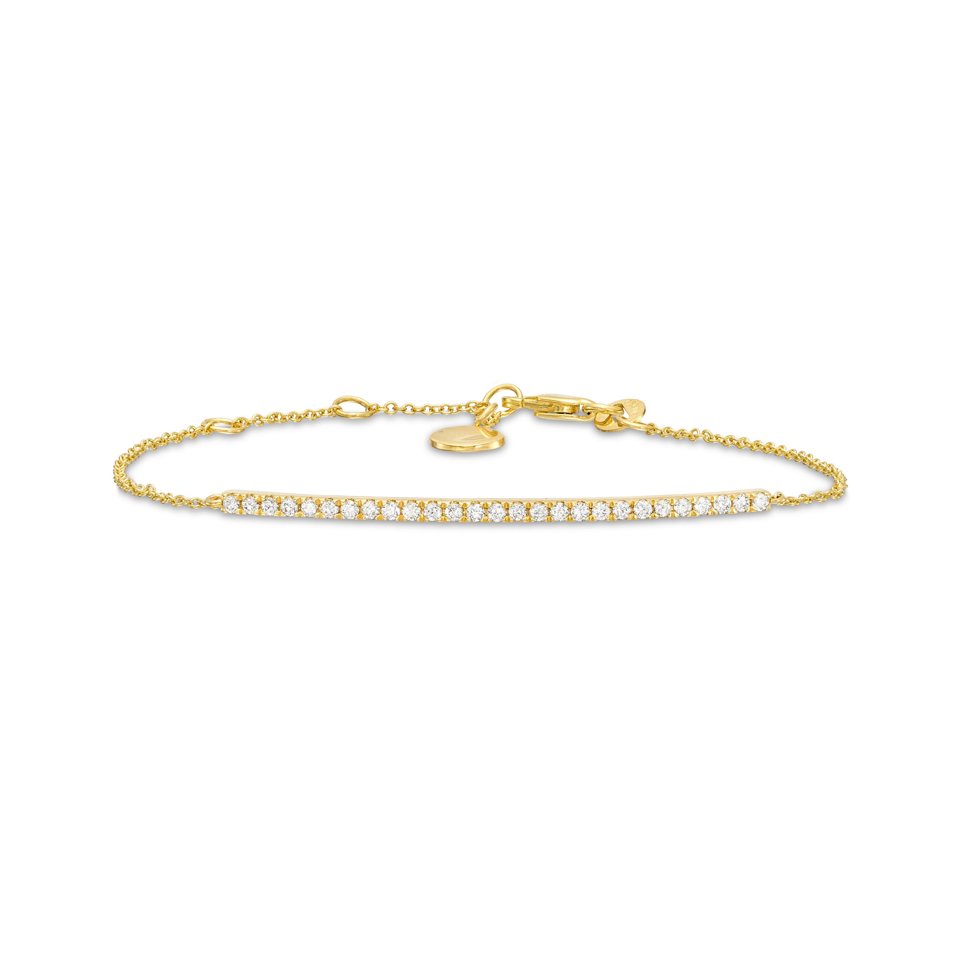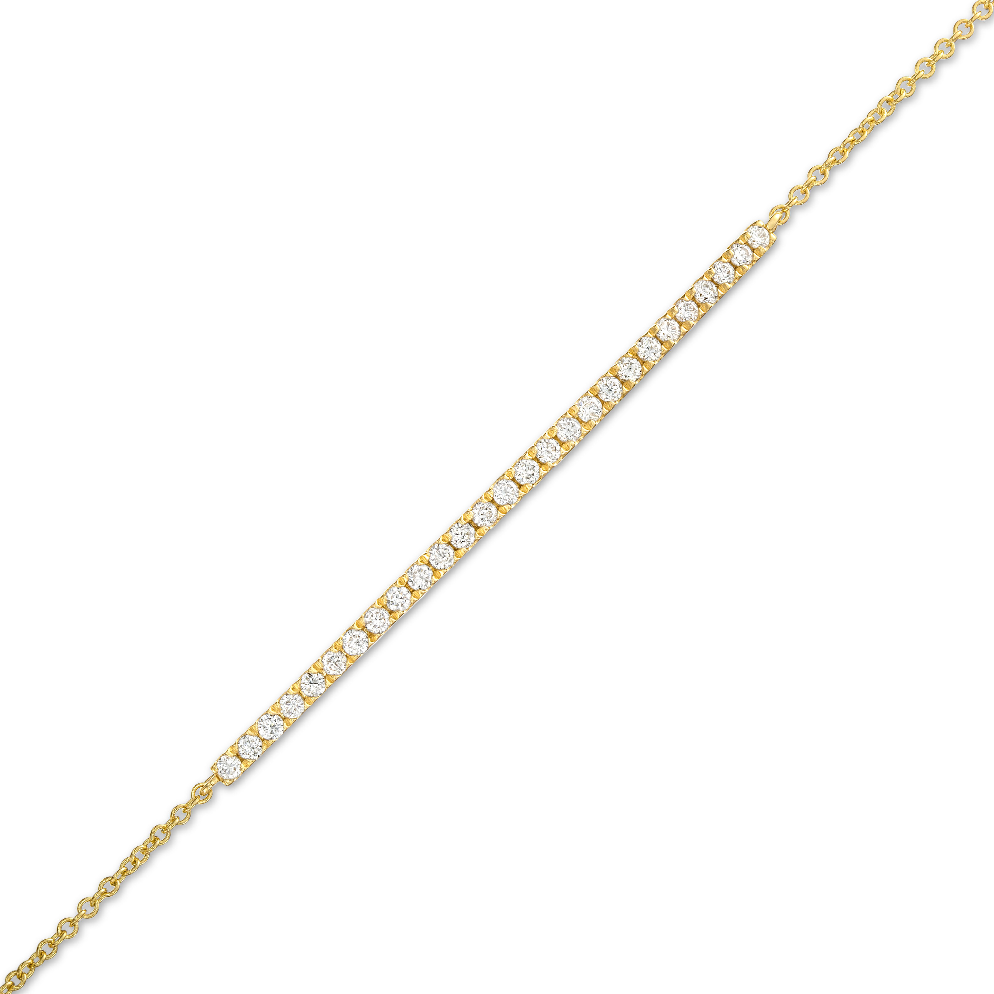 Product Description Perfect for every day wear, this dainty bar bracelet features round brilliant cut diamonds totaling 0.27 carats. Other Details Gemstone Type: Diamond Bracelet Type: Tennis Bracelets Disable Reason: None Style: Classic Metal Color: Yellow Gold Total Setting Diamond Carat Weight: 0.27TW Type: Bracelet