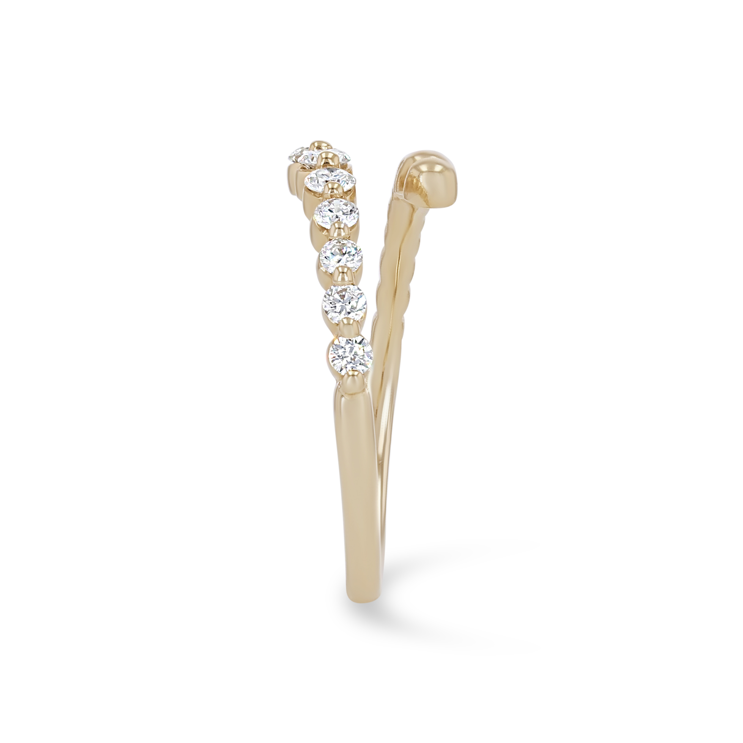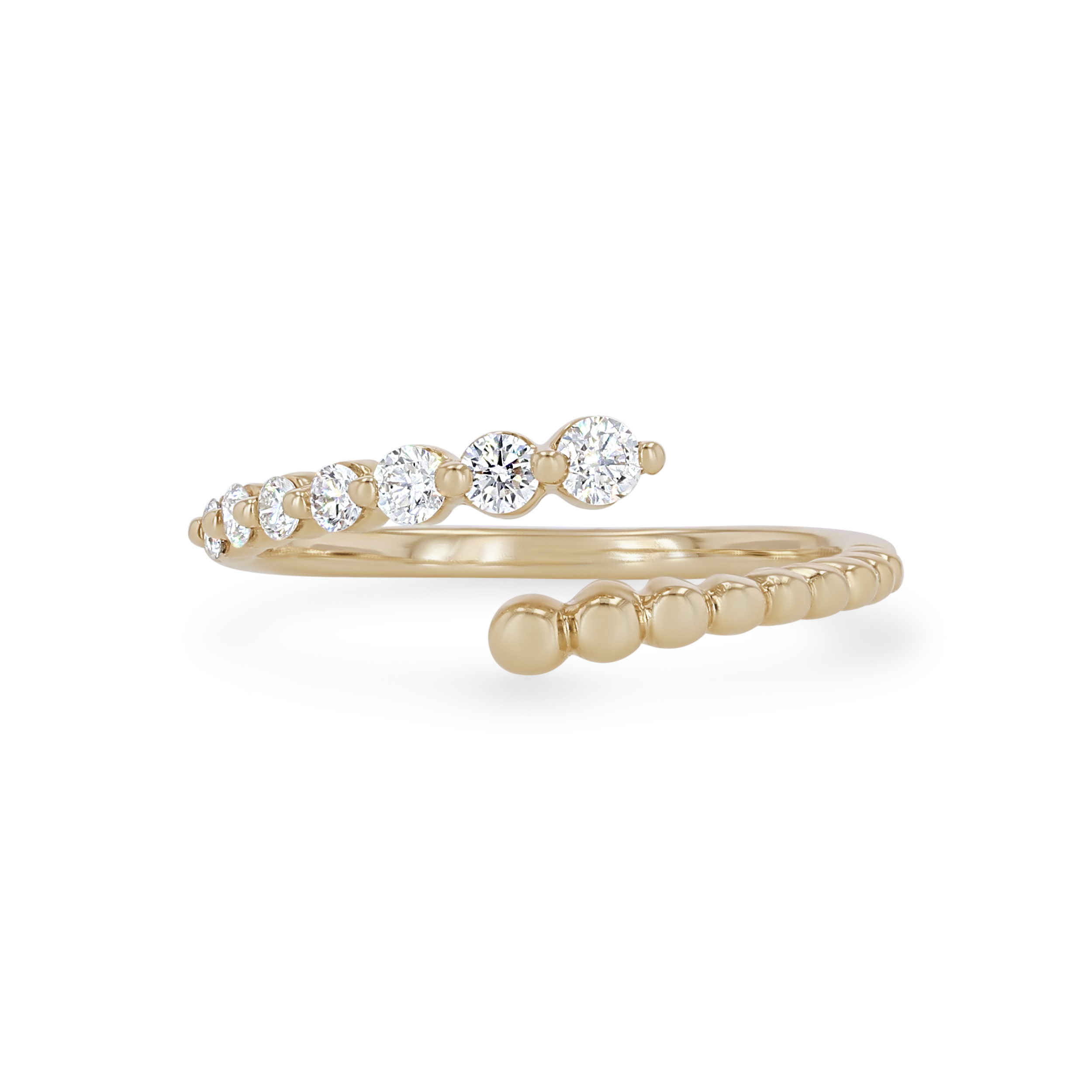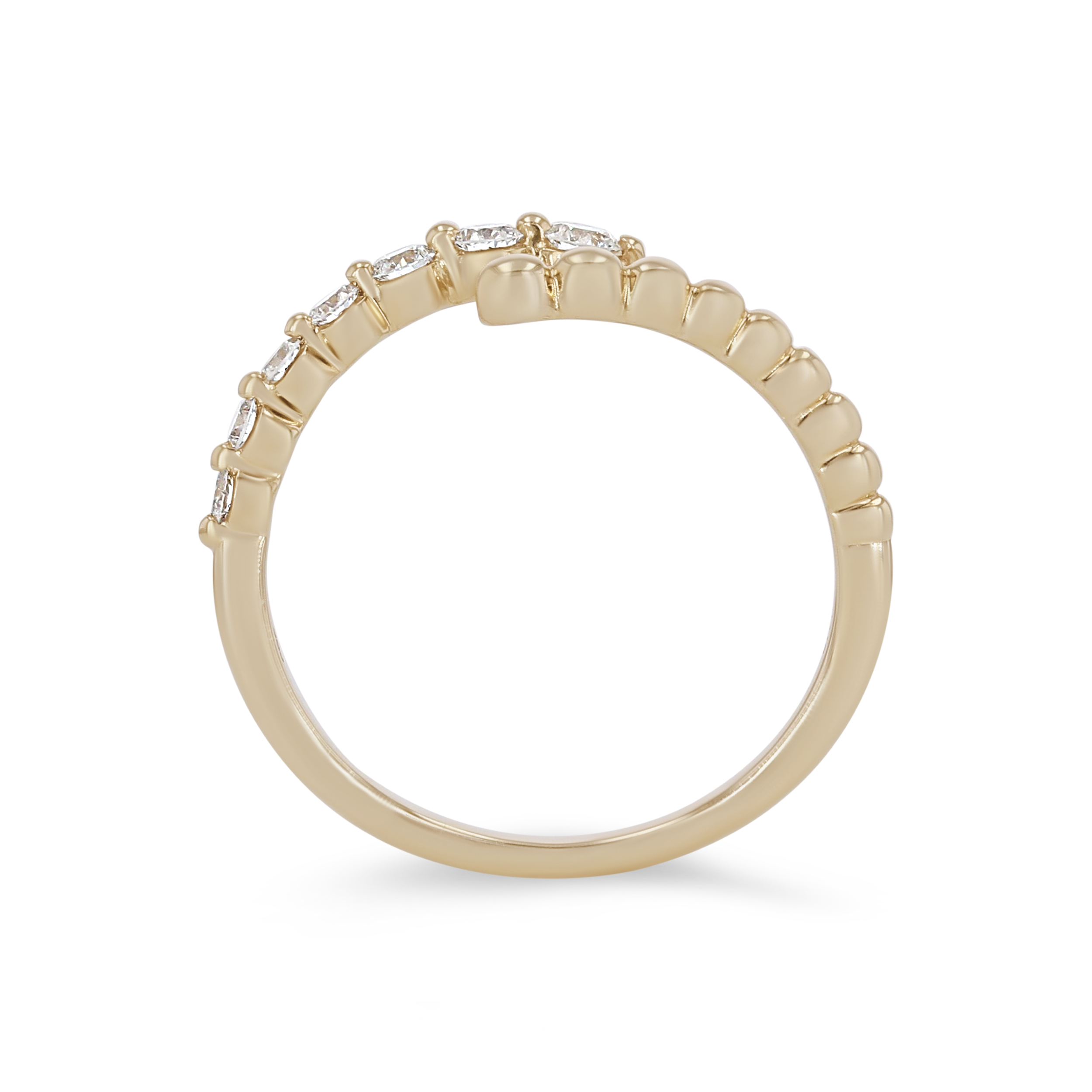 Product Description This fashion-forward ring features a beaded bypass design accented with round brilliant cut diamonds. Other Details Total Setting Diamond Carat Weight: 0.28TW Ring Type: Fashion Metal Color: Rose Gold Gemstone Type: Diamond Disable Reason: None Metal Color: Yellow Gold Metal Color: White Gold Type: Ring