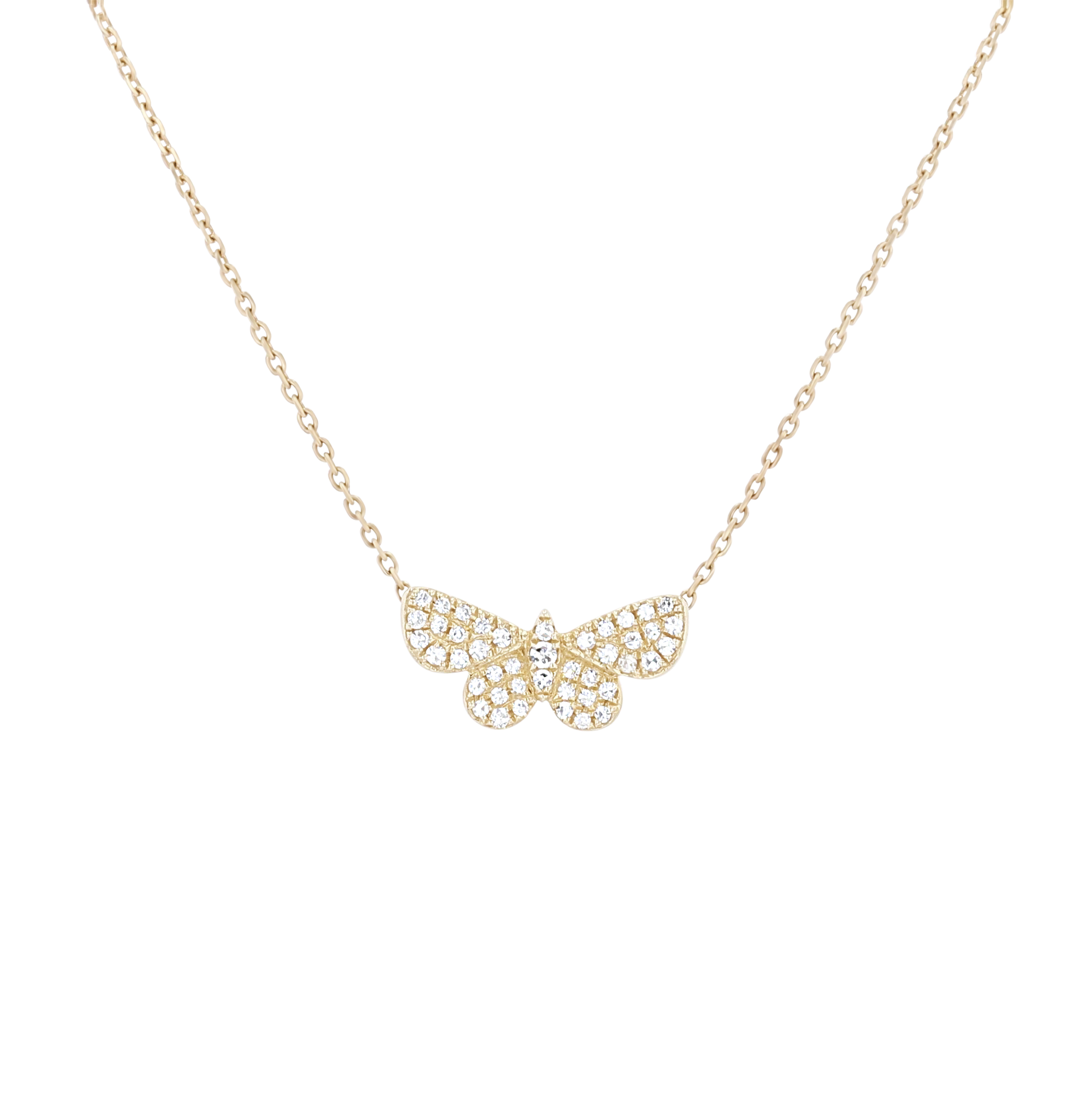 Product Description Delicate and dainty, this butterfly pendant is accented with 0.12 carats of round brilliant cut diamonds. It measures approximately 0.25 by 0.50 inches. Other Details Necklace Type: Fashion Gemstone Type: Diamond Metal Color: Yellow Gold Style: Contemporary Total Setting Diamond Carat Weight: 0.12TW Pendant Type: Floral Length: 18 IN Type: Necklace Disable Reason: None