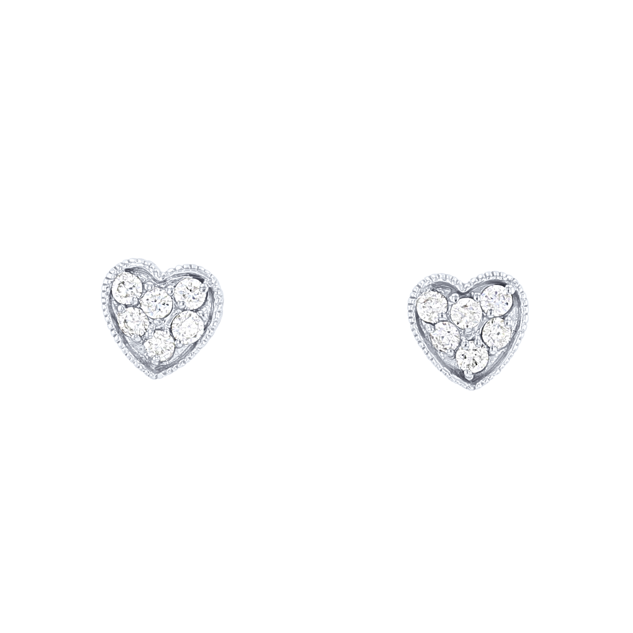 Product Description Delicate and sweet, these heart shaped stud earrings feature clusters of round brilliant cut diamonds totaling 0.29 carats. Other Details Gemstone Type: Diamond Total Setting Diamond Carat Weight: 0.29TW Style: Contemporary Earring Type: Fashion Studs Disable Reason: None Type: Earrings Metal Color: White Gold