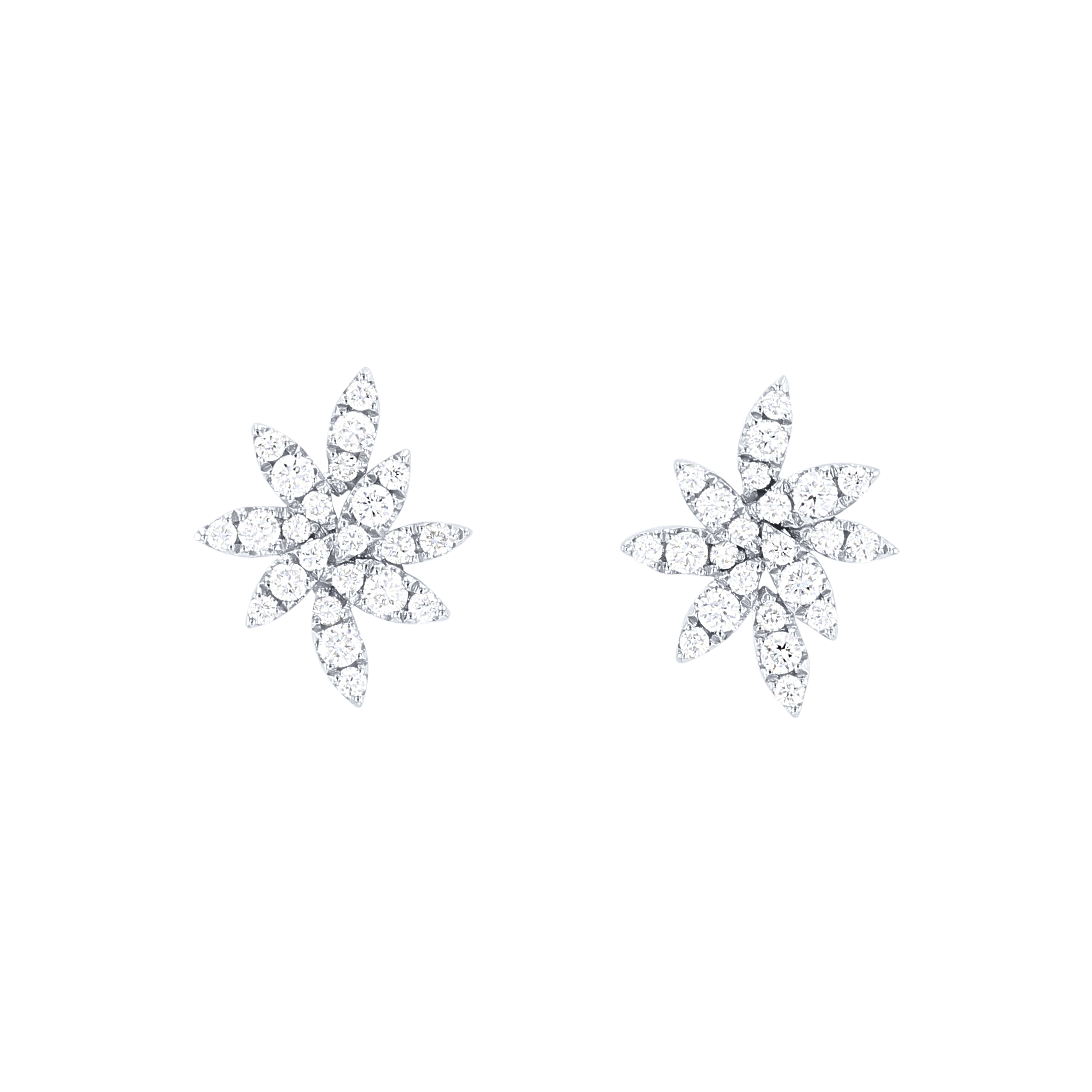 Product Description Romantic and nature inspired, these earrings features 0.56 carats of round brilliant cut diamonds. Other Details Gemstone Type: Diamond Metal Color: White Gold Disable Reason: None Earring Type: Fashion Studs Type: Earrings Style: Contemporary Total Setting Diamond Carat Weight: 0.56TW