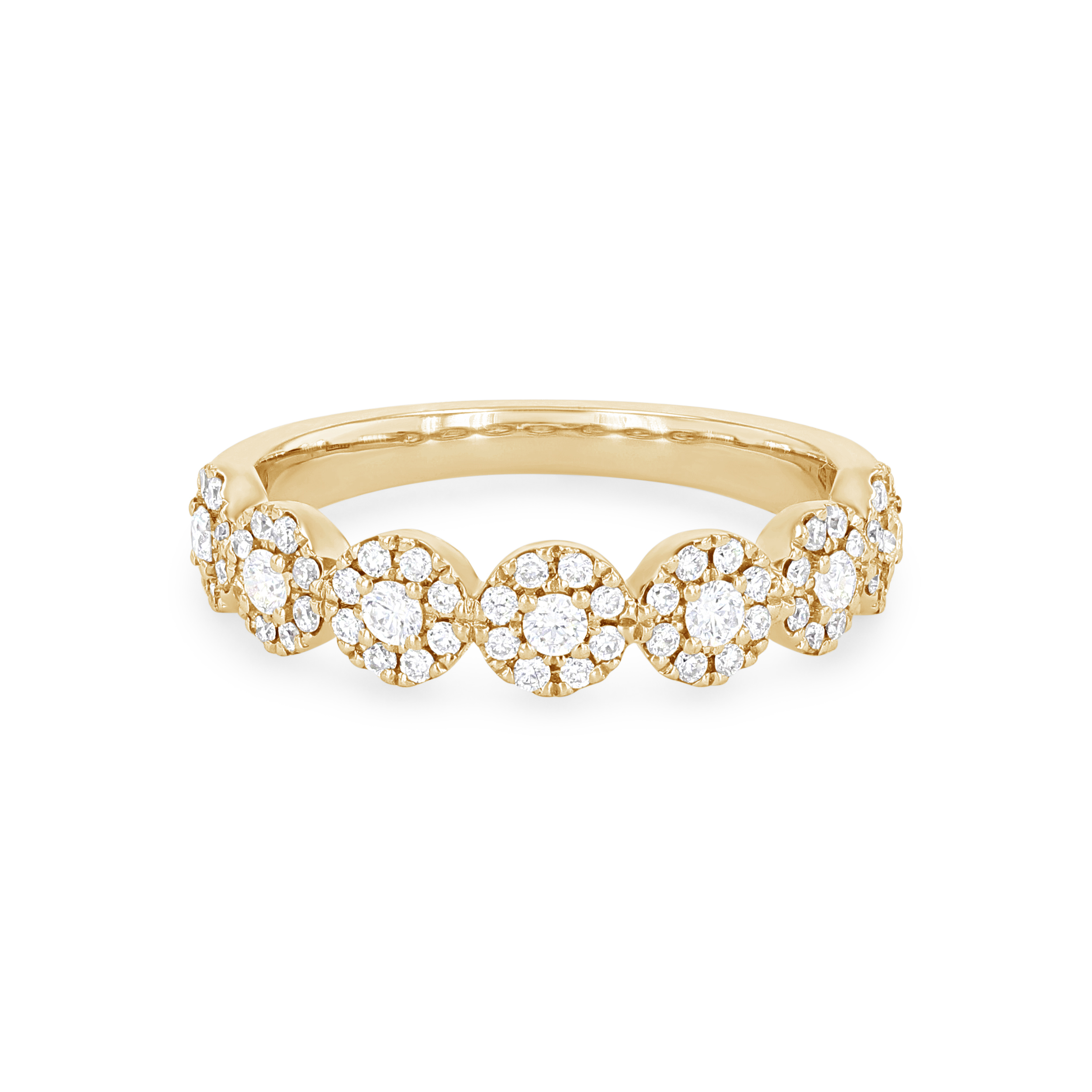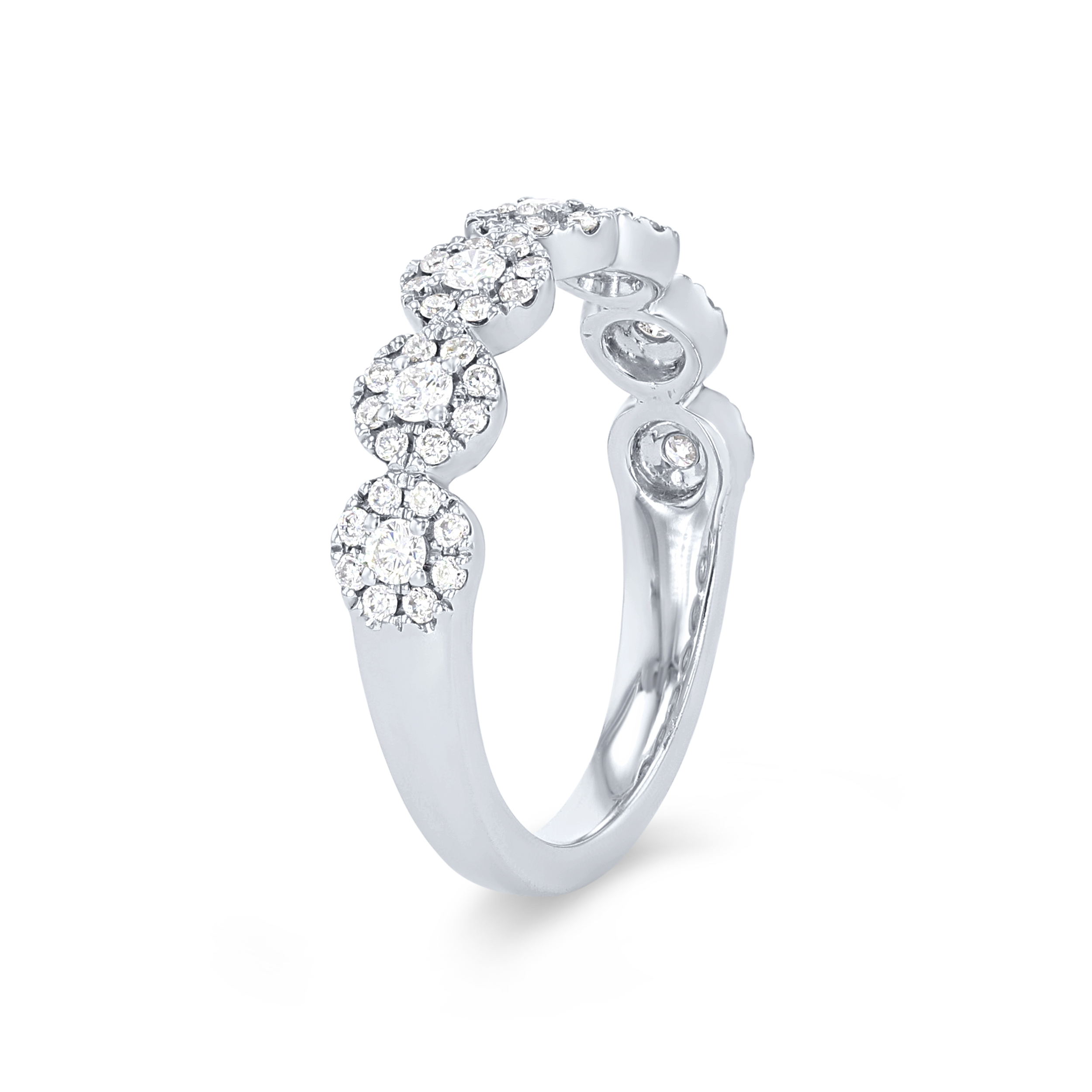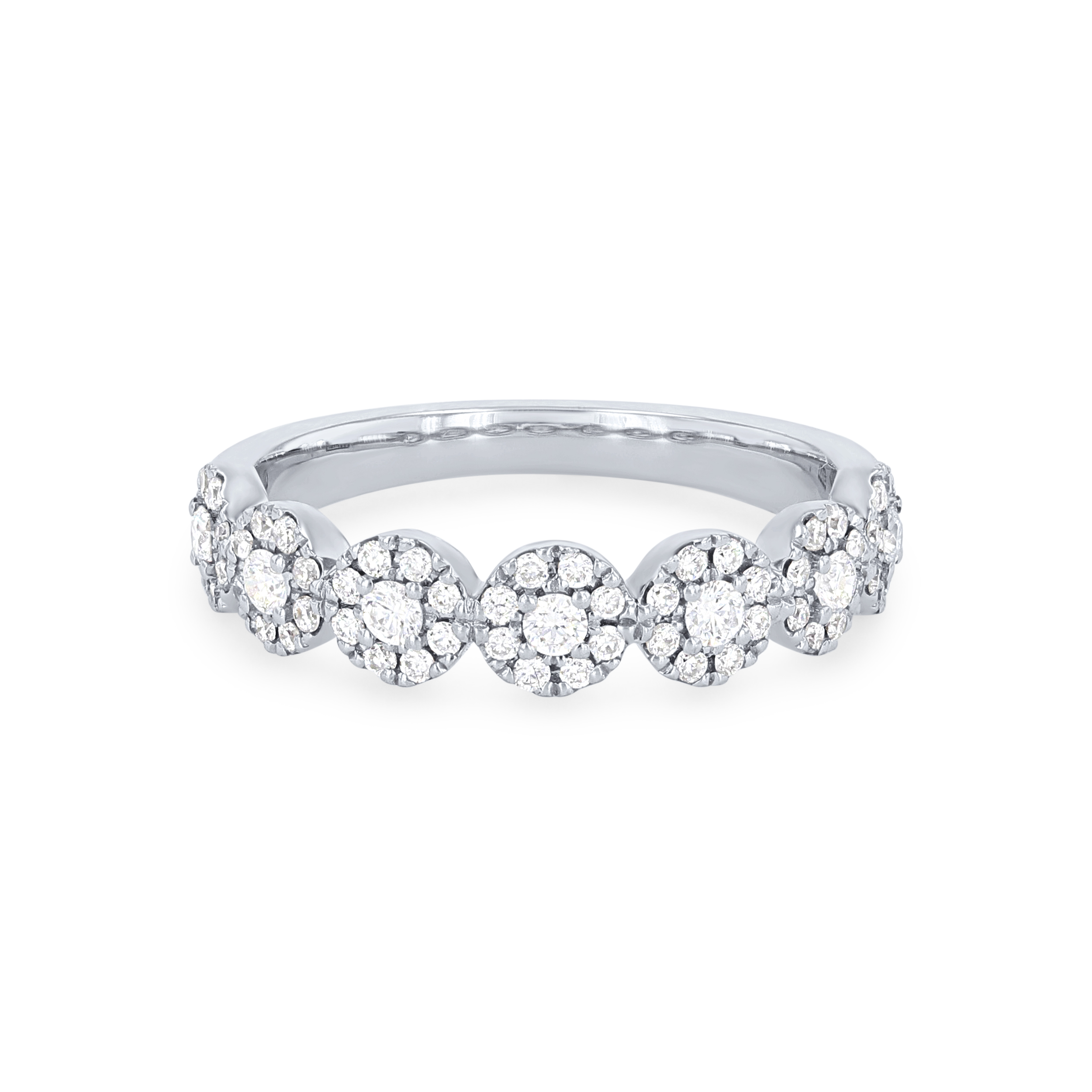 Add the perfect amount of sparkle to any look with this beautiful band, featuring seven circular clusters of round brilliant cut diamonds totaling 0.46 carats.
