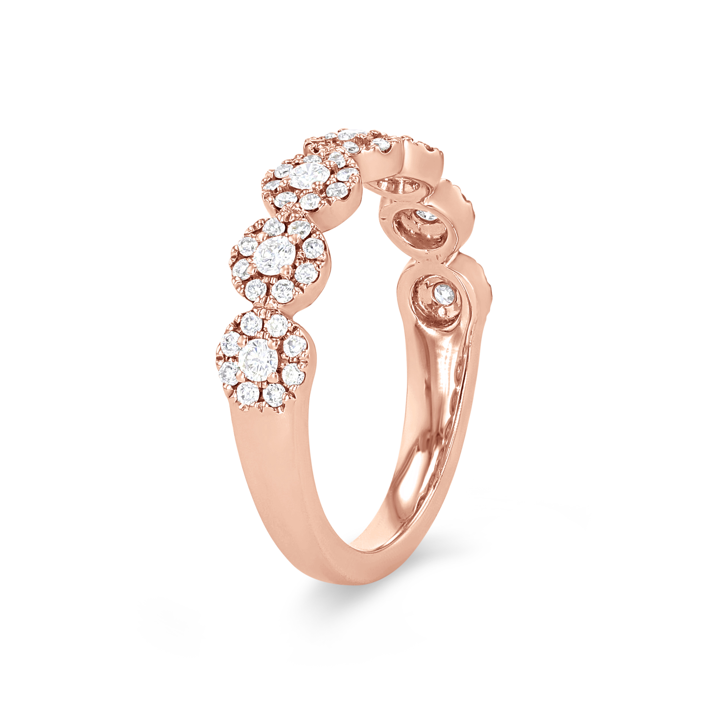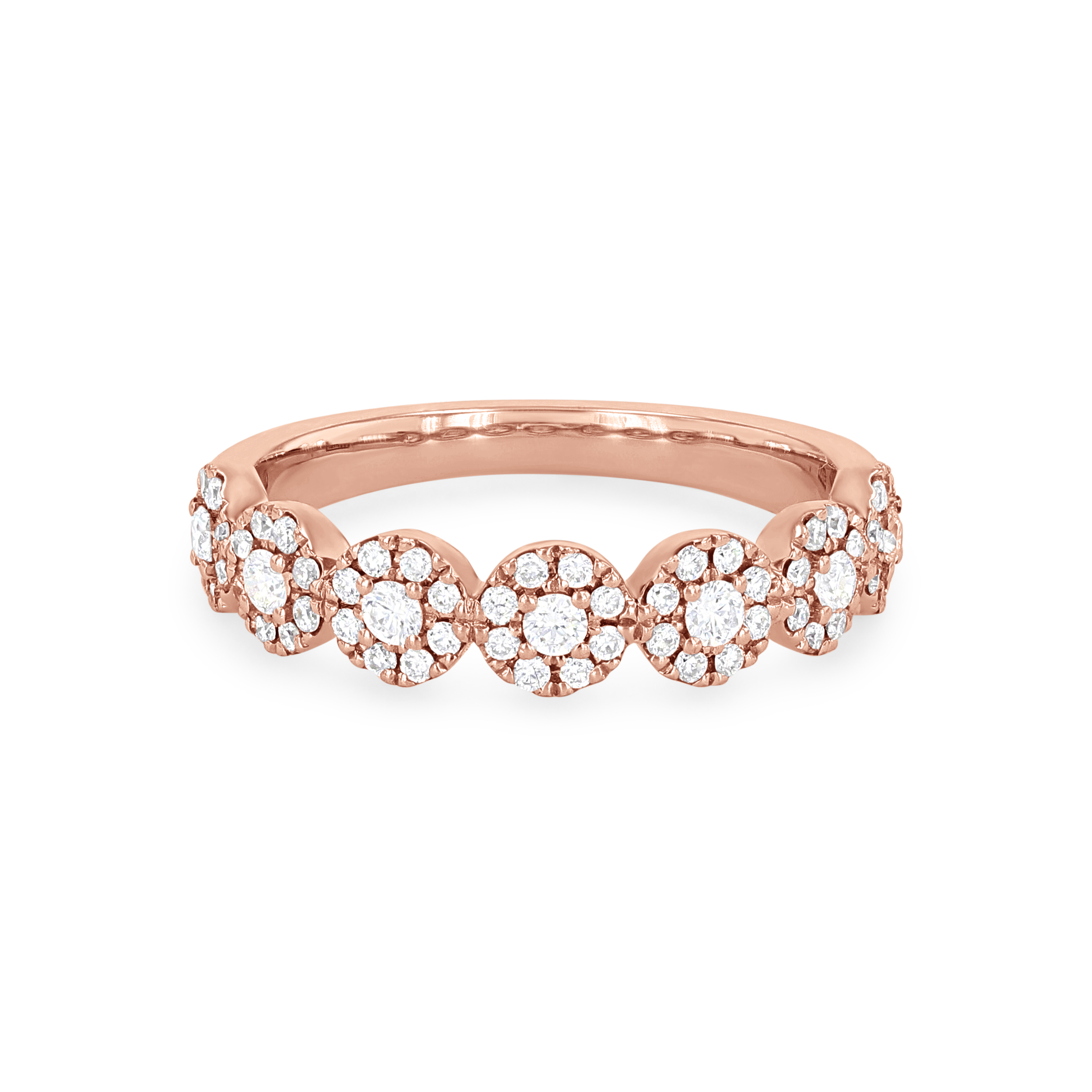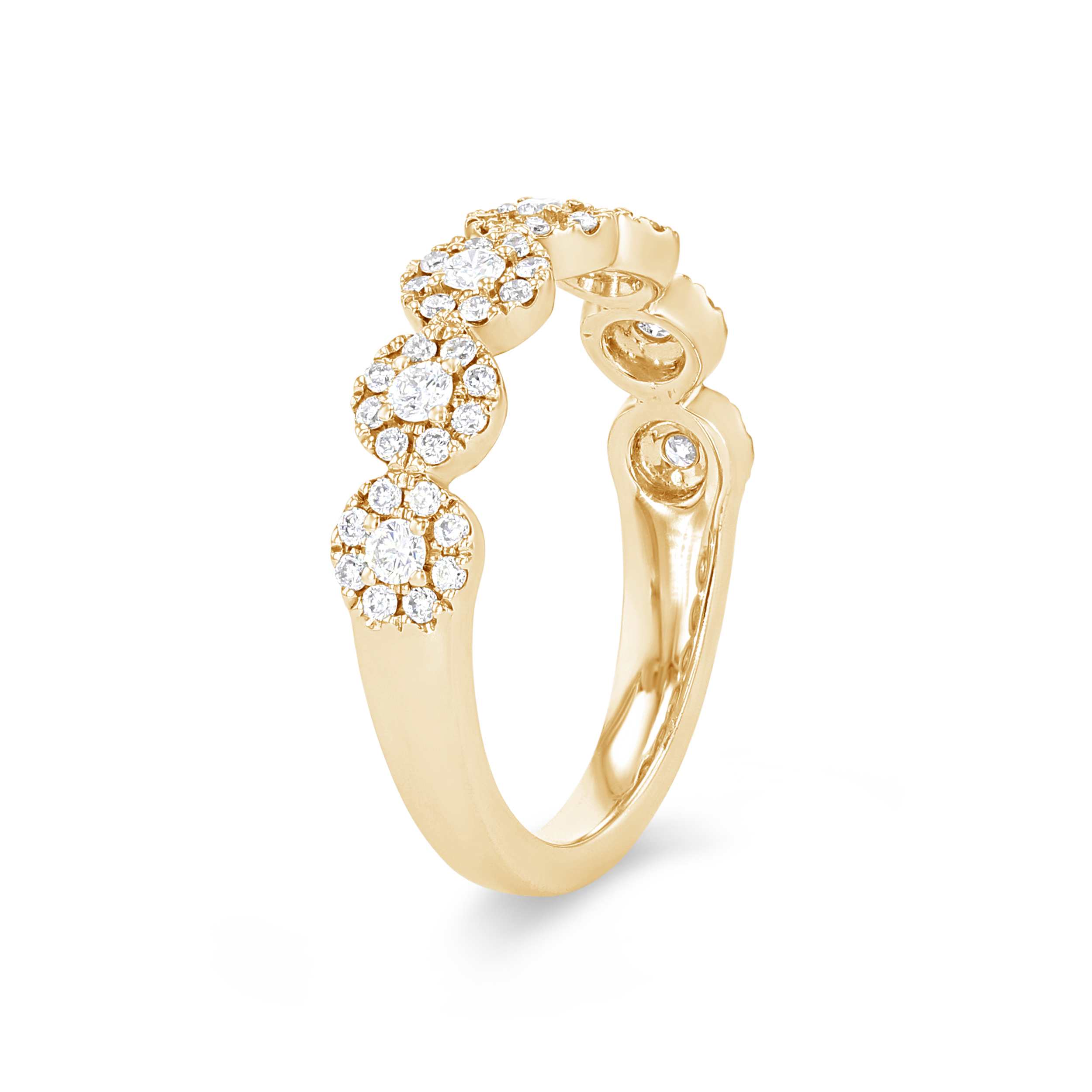 Add the perfect amount of sparkle to any look with this beautiful band, featuring seven circular clusters of round brilliant cut diamonds totaling 0.46 carats.
