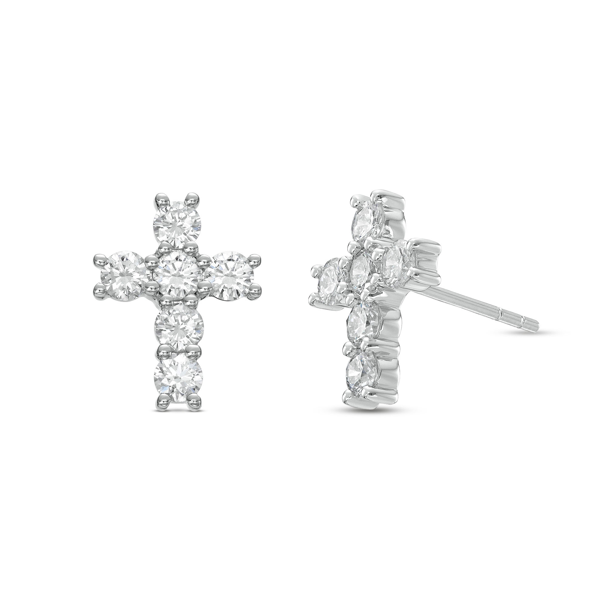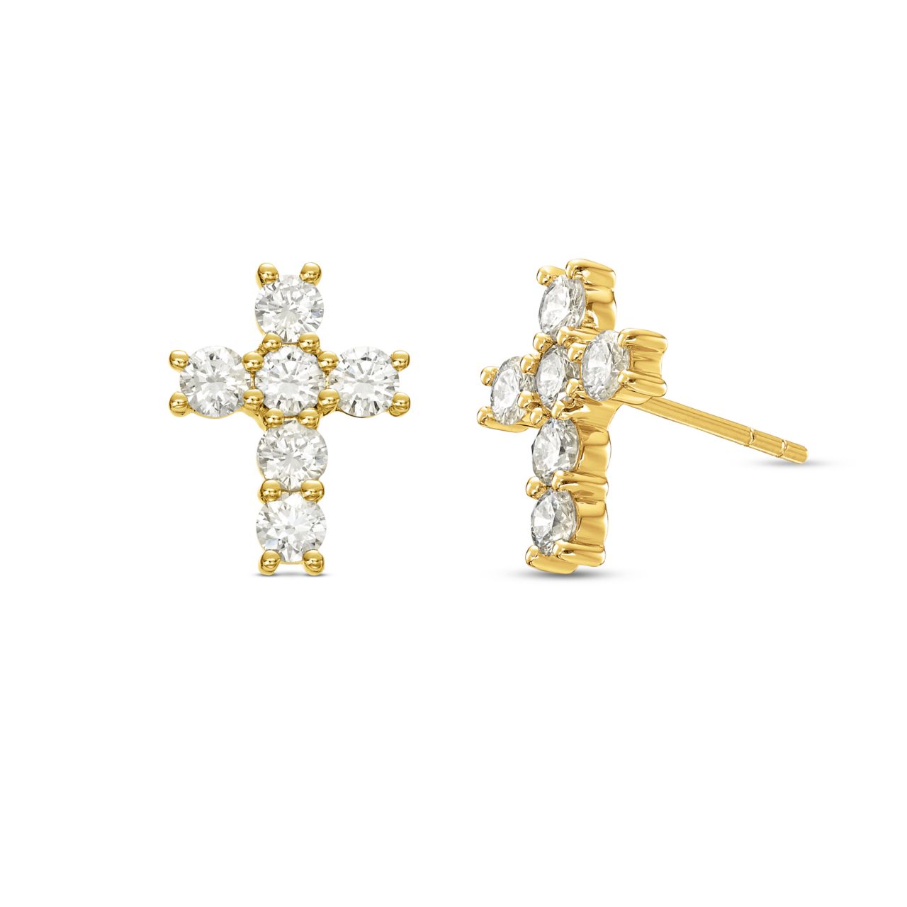 Product Description Full of sparkle, these cross stud earrings feature 1.00 total carat of round brilliant cut diamonds. Other Details Type: Earrings Metal Color: Yellow Gold Disable Reason: None Gemstone Type: Diamond Total Setting Diamond Carat Weight: 1TW Earring Type: Fashion Studs Metal Color: White Gold