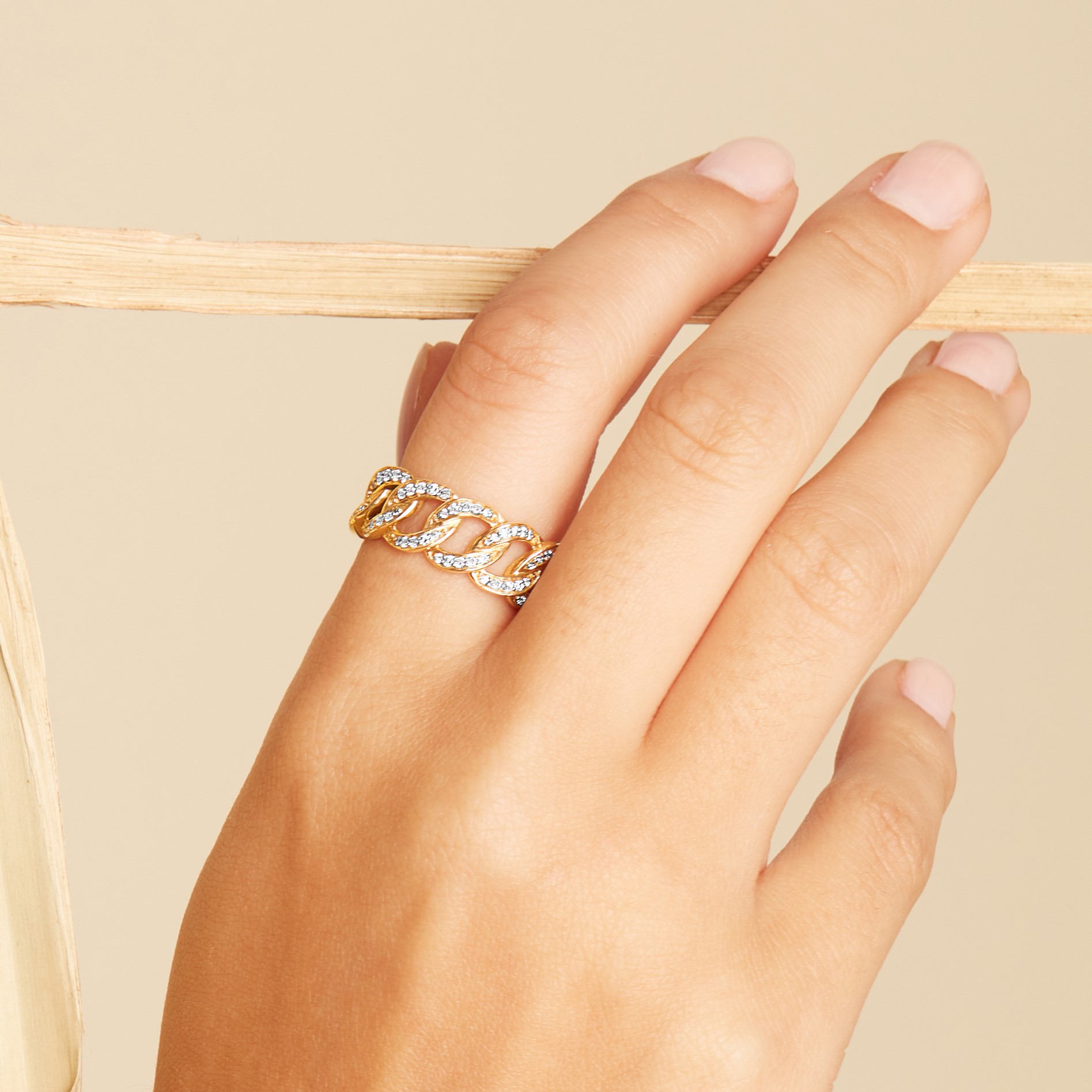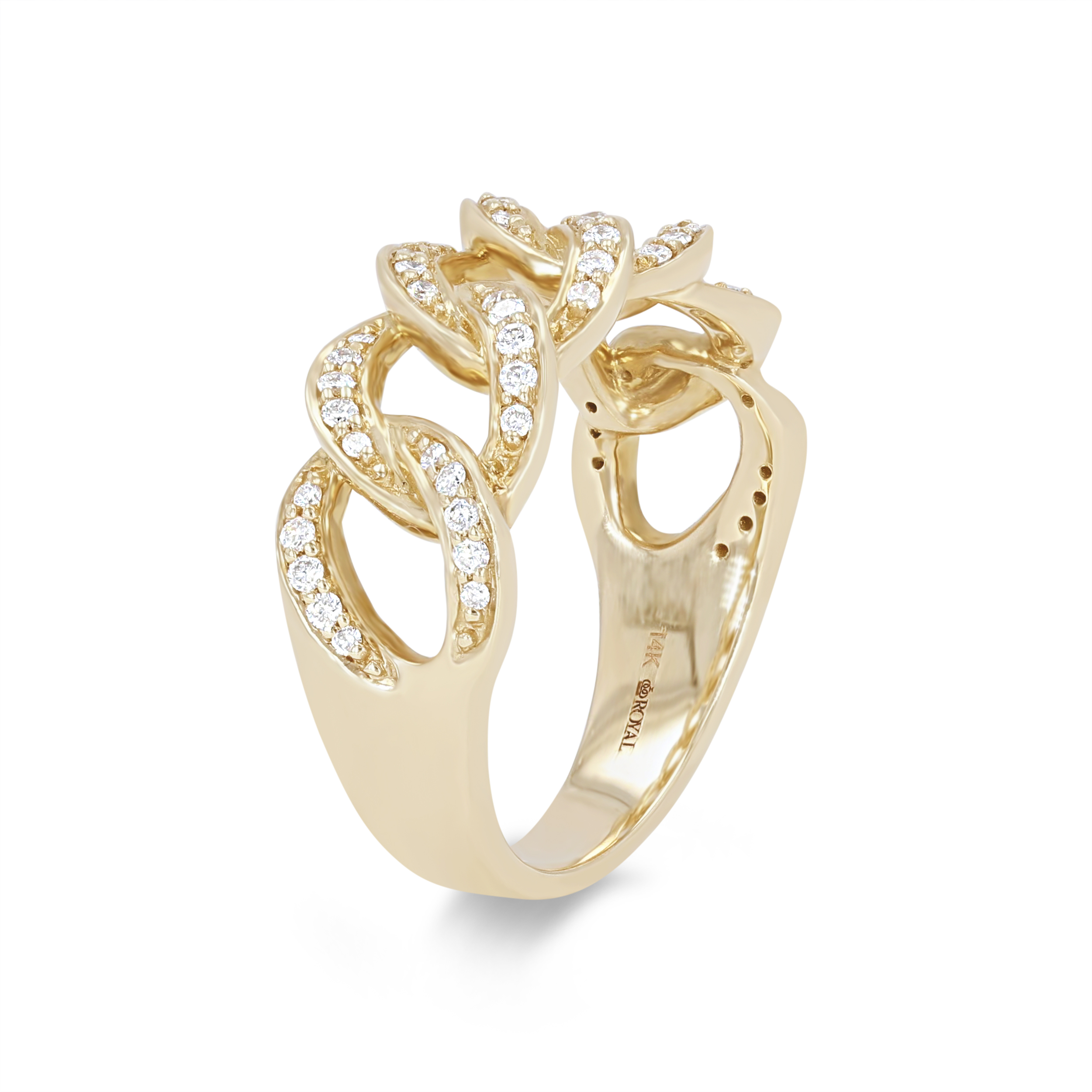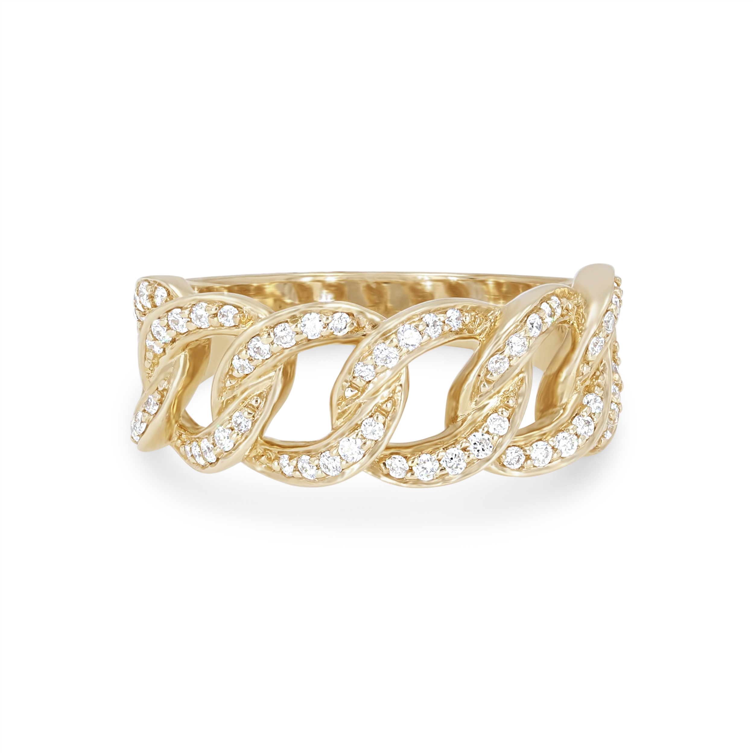 Product Description This trending chain link style ring features 0.33 total carats of round brilliant cut diamonds. Other Details Metal Color: Yellow Gold Disable Reason: None Metal Color: White Gold Metal Color: Rose Gold Ring Type: Fashion Total Setting Diamond Carat Weight: 0.33TW Type: Ring Gemstone Type: Diamond Style: Contemporary