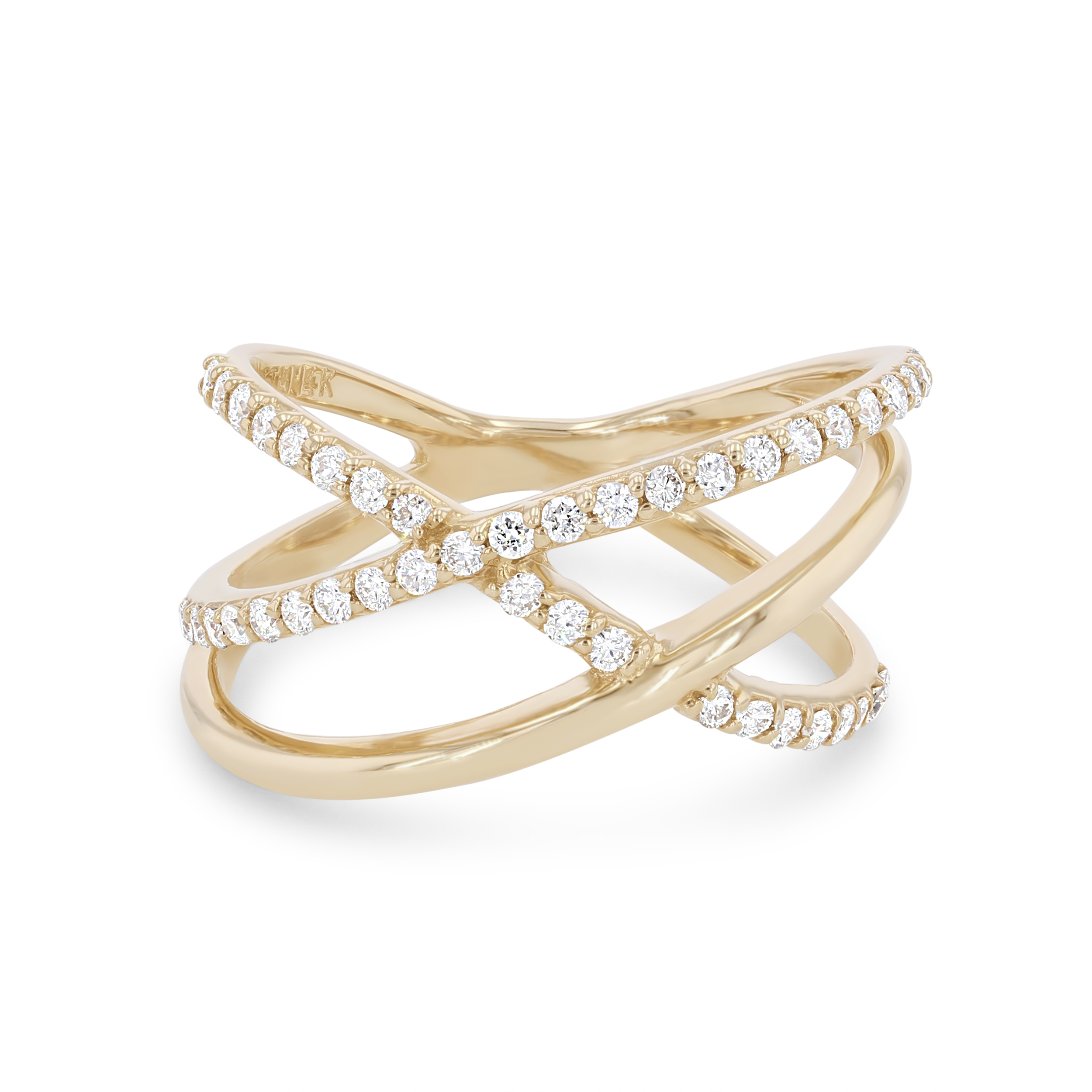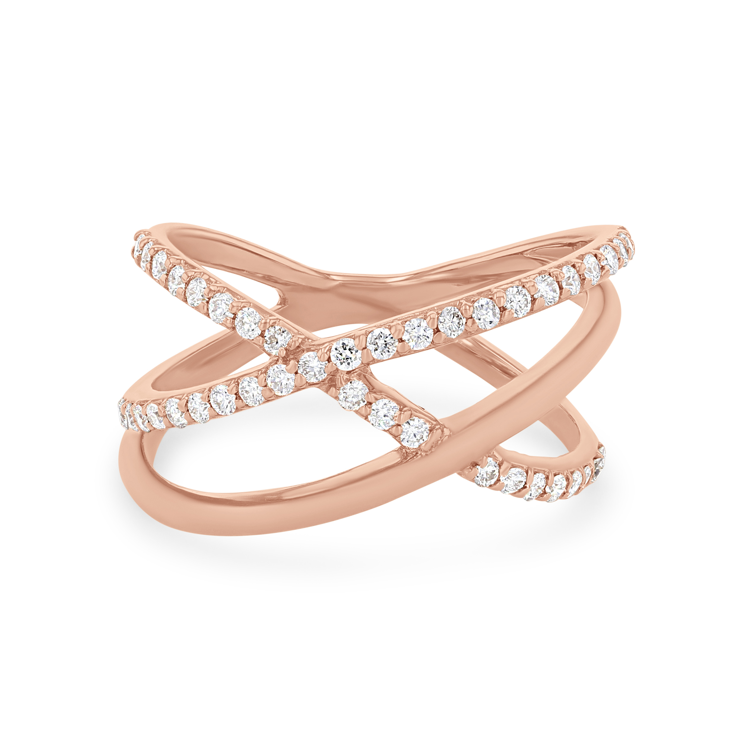Product Description This trend-worthy ring features two intertwined "X" designs accented by 0.42 carats of round brilliant cut diamonds. Other Details Metal Color: White Gold Disable Reason: None Metal Color: Rose Gold Total Setting Diamond Carat Weight: 0.42TW Metal Color: Yellow Gold Gemstone Type: Diamond Style: Contemporary Type: Ring Ring Type: Fashion