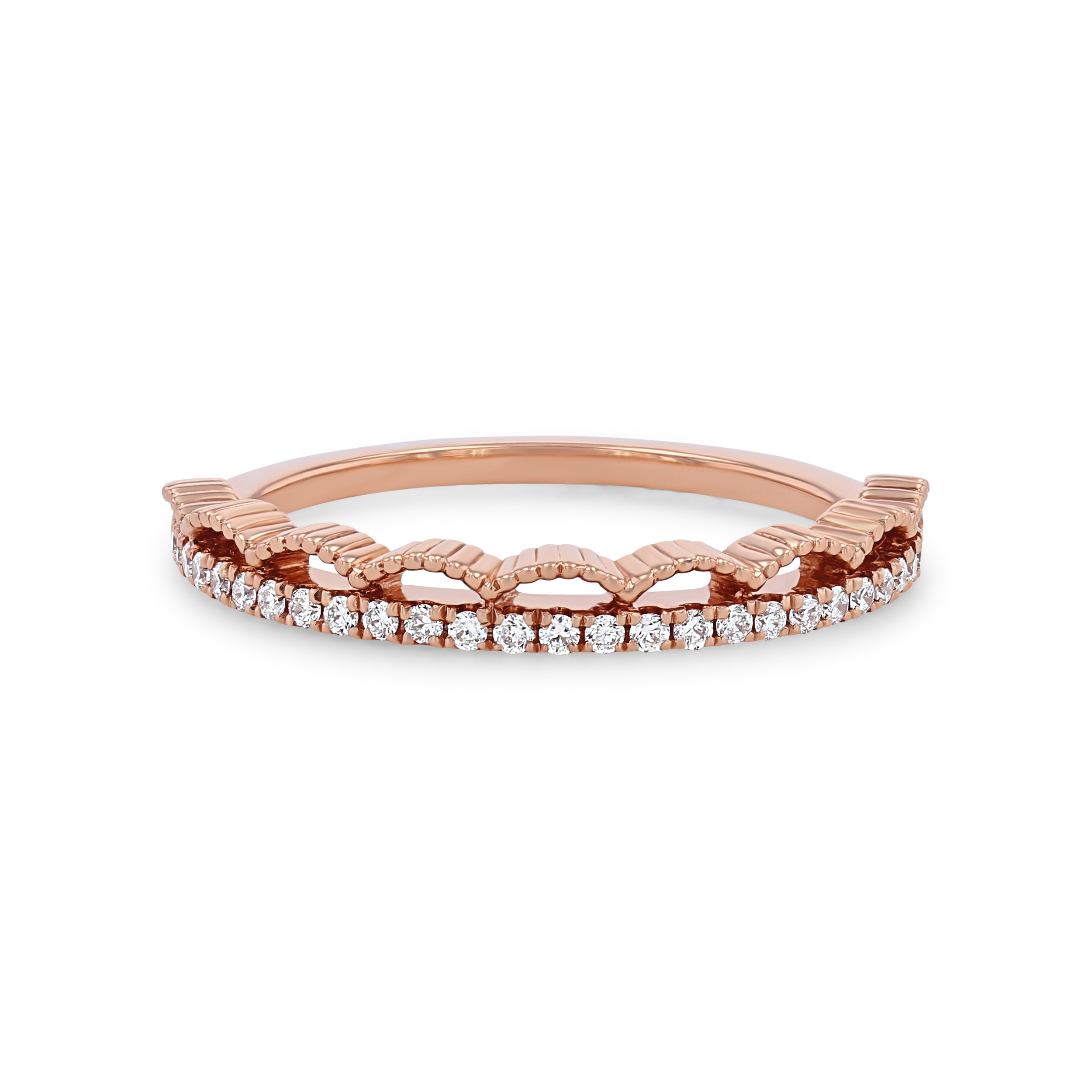 Product Description A delicate design with a vintage touch, this milgrain scalloped wedding band features 0.13 carats of round brilliant cut diamonds. Other Details Metal Color: Rose Gold Metal Color: Platinum Wedding Band Type: Vintage Metal Color: Yellow Gold Gemstone Type: Diamond Diamond: Stackable Total Setting Diamond Carat Weight: 0.15TW Disable Reason: None Type: Ladies Wedding Band Metal Color: White Gold