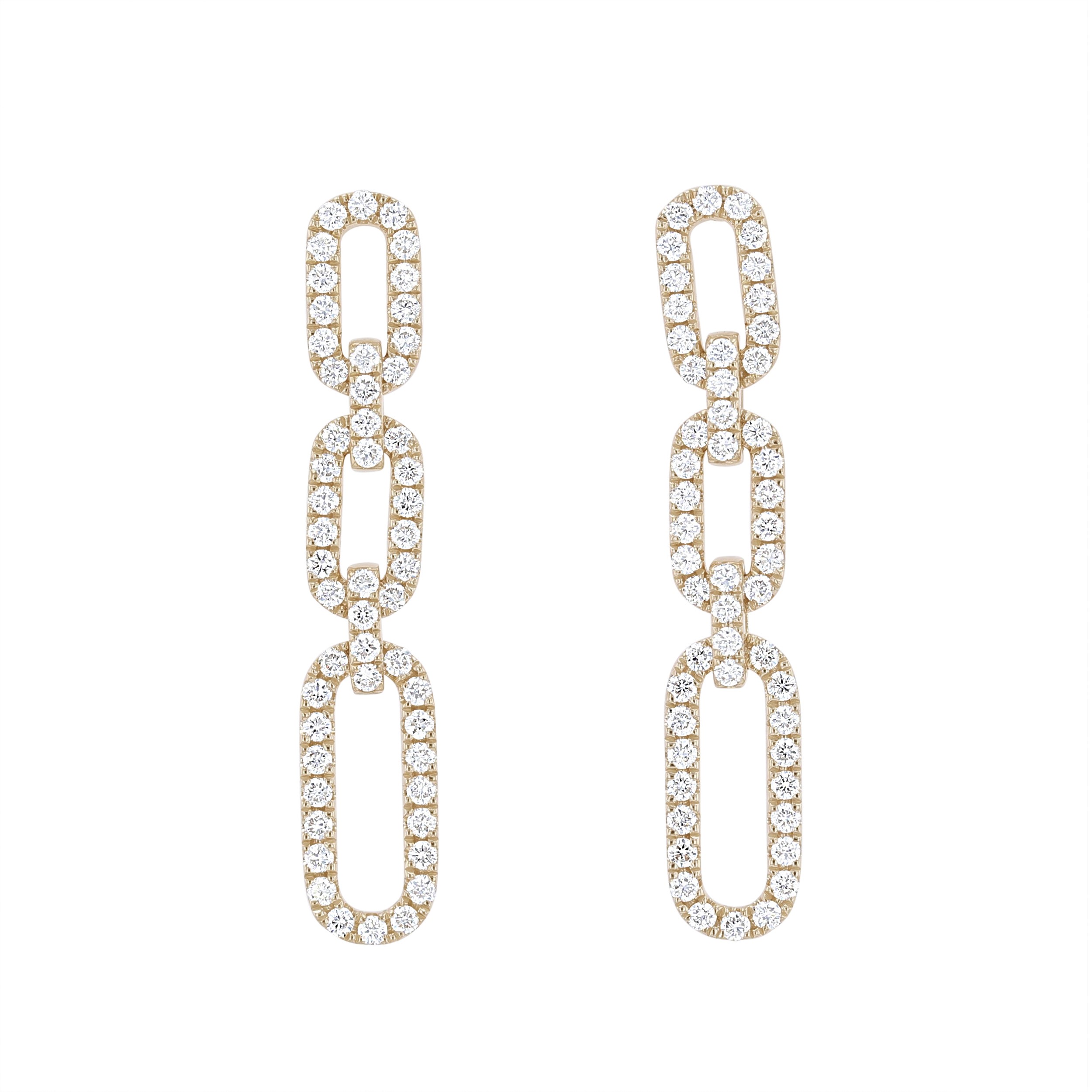 Product Description A modern style that is perfect for dressing up, these paperclip style link earrings feature 1.18 carats of round brilliant cut diamonds. Other Details Type: Earrings Earring Type: Dangle Total Setting Diamond Carat Weight: 1.18TW Gemstone Type: Diamond Metal Color: Yellow Gold Metal Color: White Gold Disable Reason: None Style: Contemporary