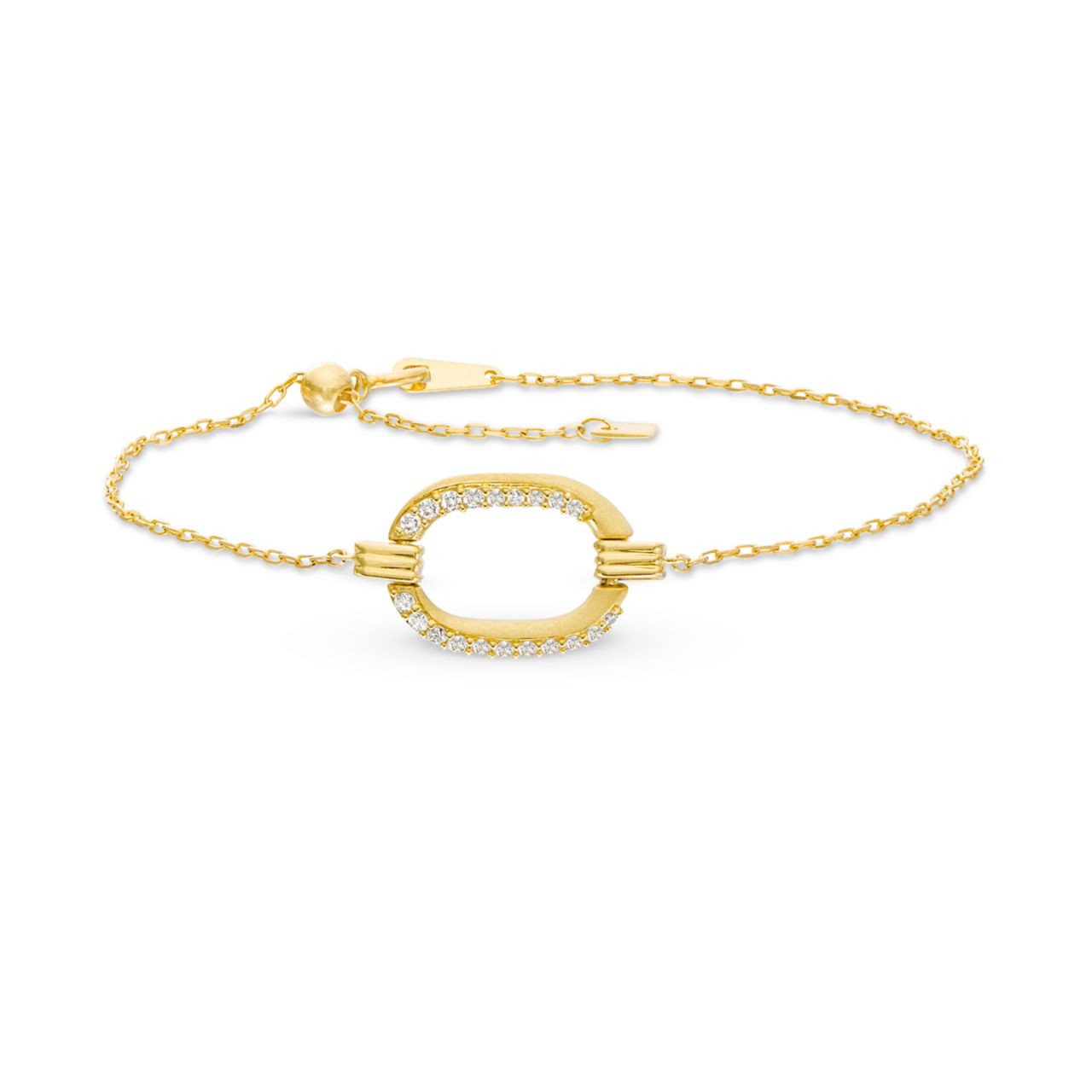 Product Description Featuring a beautiful single link design, this bracelet features stunning round brilliant cut diamonds. The adjustable feature allows you to effortlessly customize the fit to your wrist. Other Details Metal Color: Yellow Gold Type: Bracelet Disable Reason: None Total Setting Diamond Carat Weight: 0.18TW Product_Video_TBMIS08116: /TBMIS08116/TBMIS08116_vid1.mp4 Product Videos: /TBMIS08116/TBMIS08116_vid1.mp4 Bracelet Type: Chain Gemstone Type: Diamond