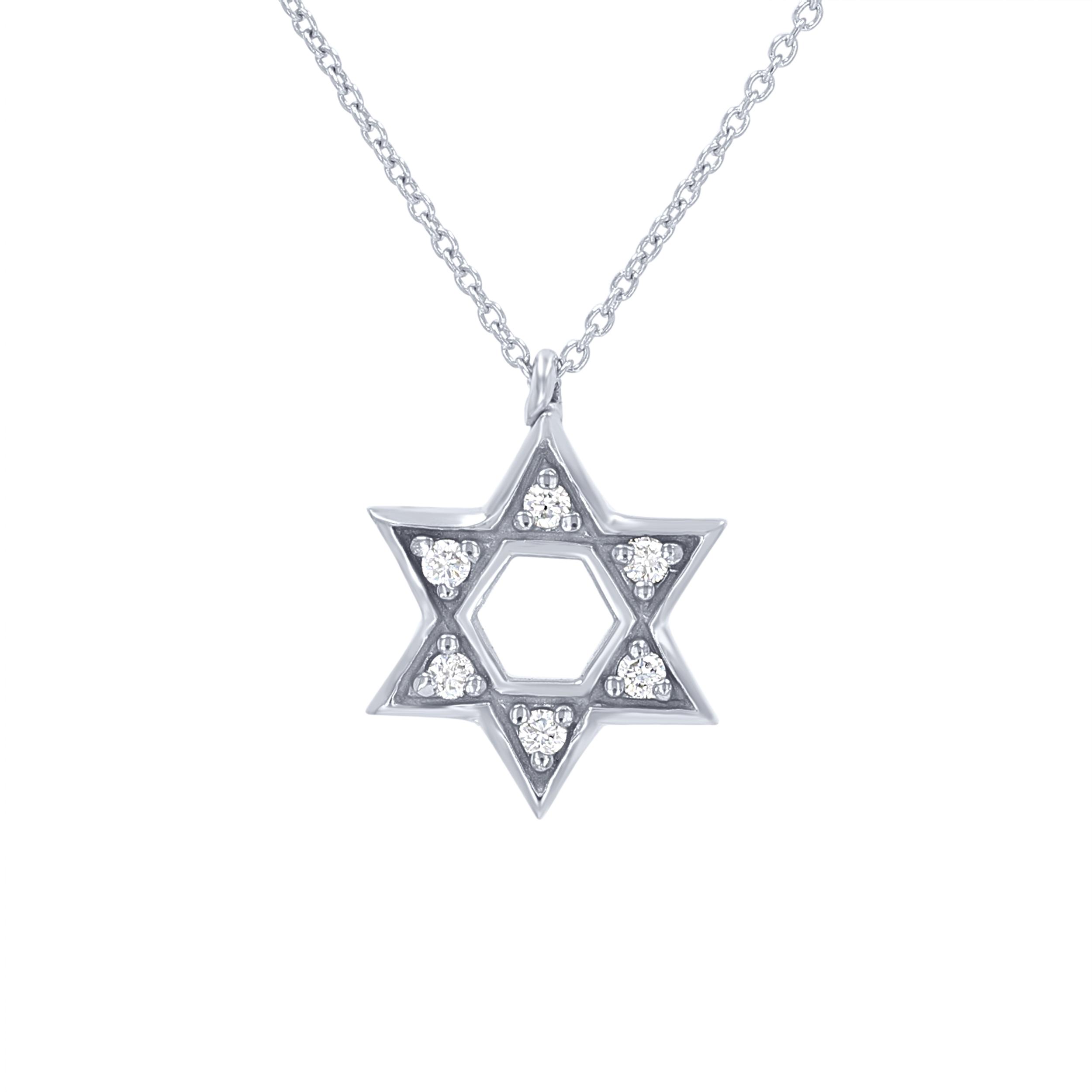 This delicate Star of David pendant features round brilliant cut diamonds totaling 0.10 carats.