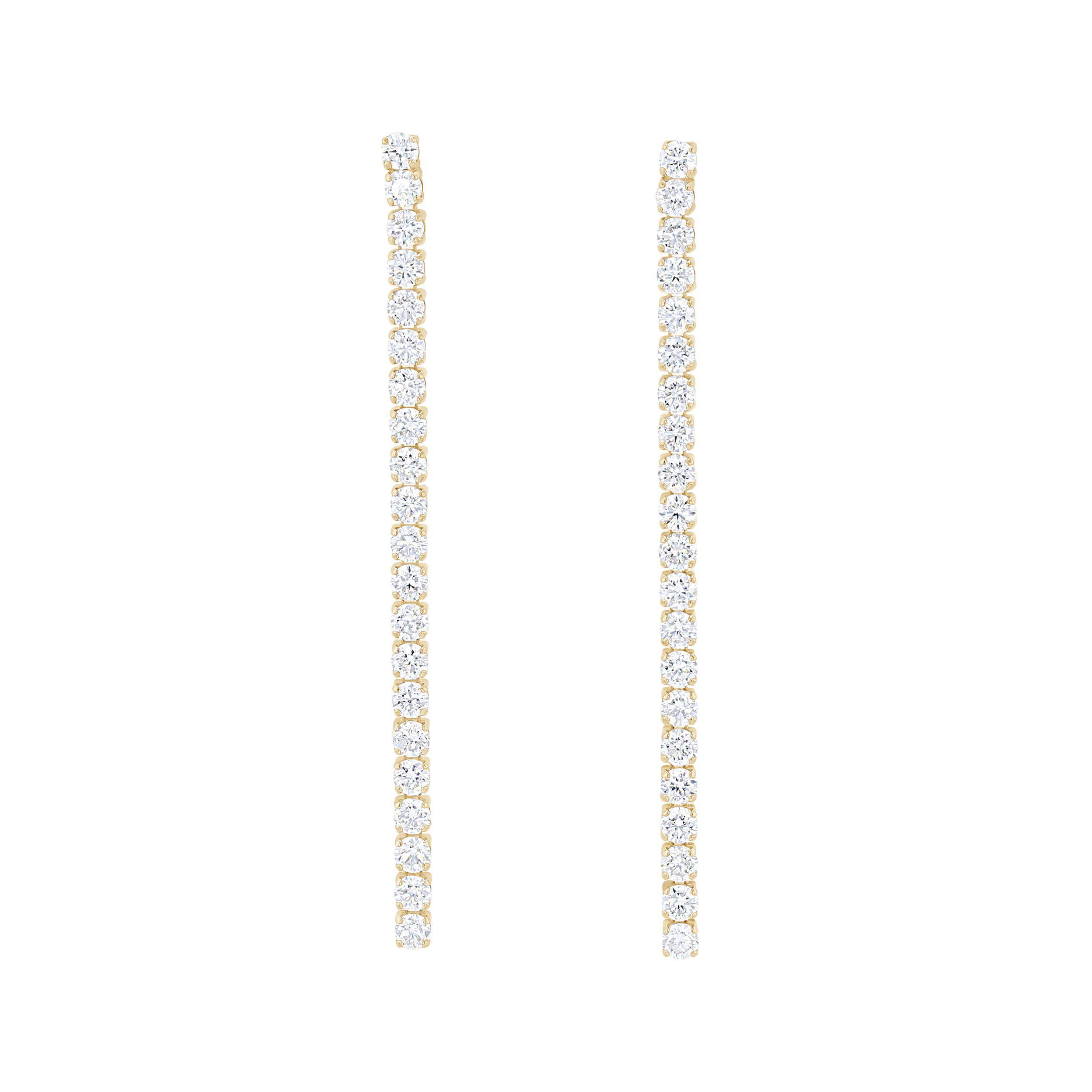 Product Description An elegant way to dress up any look, these line drop earrings feature 2.05 carats of round brilliant cut diamonds. Other Details Metal Color: Yellow Gold Disable Reason: None Total Setting Diamond Carat Weight: 2.05TW Type: Earrings Metal Color: White Gold Gemstone Type: Diamond Style: Contemporary Earring Type: Dangle
