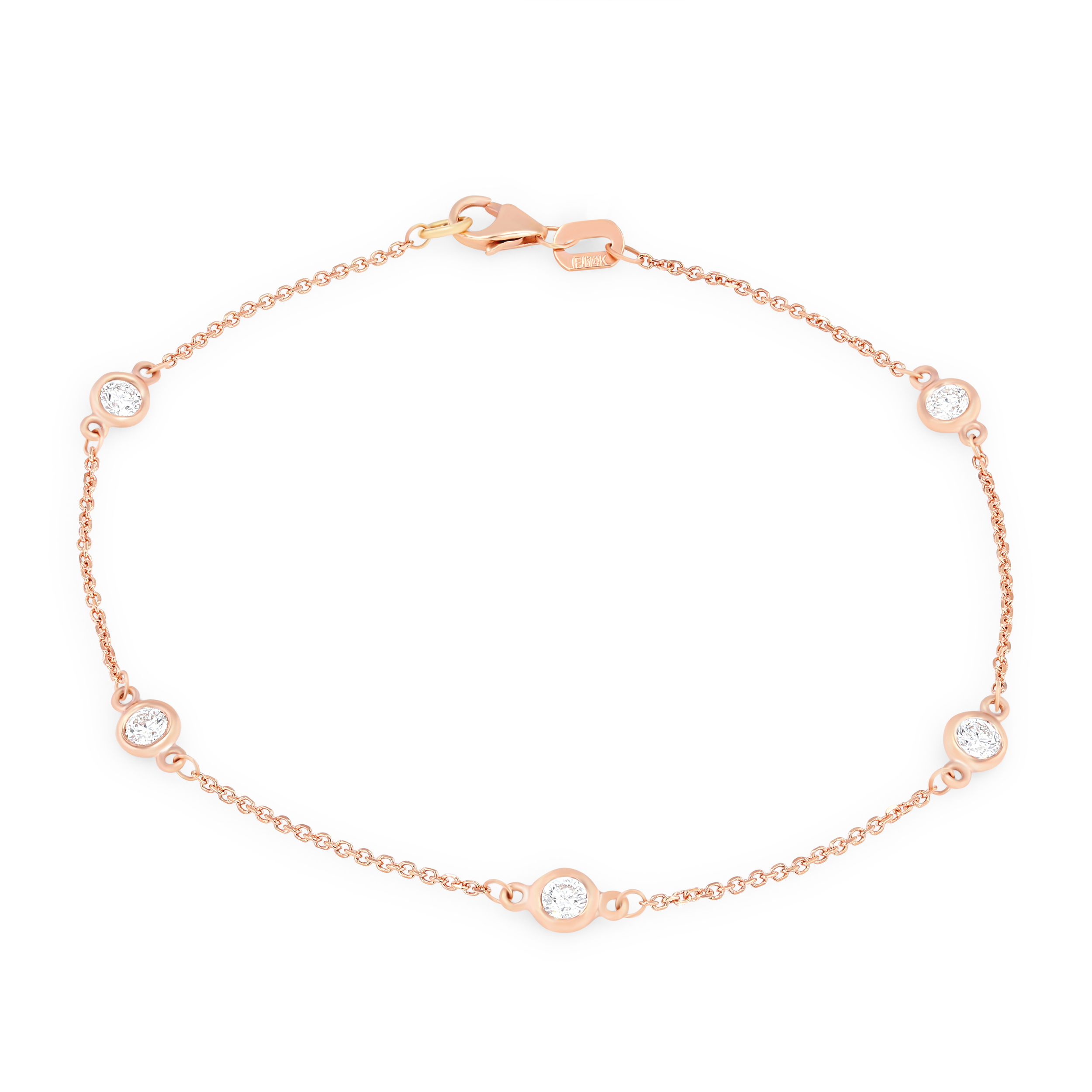 Product Description Simple yet elegant, this diamonds by the yard style bracelet features five round brilliant cut diamonds totaling 0.49 carats. Other Details Metal Color: Yellow Gold Style: Classic Metal Color: Rose Gold Length: 7.5 IN Bracelet Type: Tennis Bracelets Metal Color: White Gold Tennis Bracelet Type: Distinctive Tennis Bracelet Disable Reason: None Type: Bracelet Total Setting Diamond Carat Weight: 0.49TW Gemstone Type: Diamond