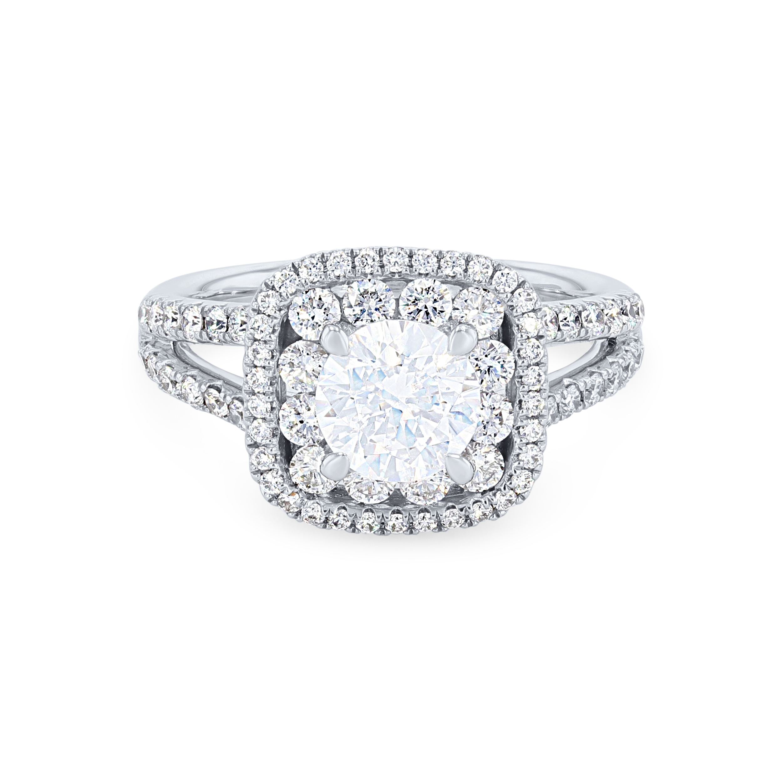 Product Description Perfect for the one wanting maximum sparkle, this engagement setting features a split-shank and double halo accented with 0.97 carats of round brilliant cut diamonds. Wedding band sold separately. Other Details Style: Contemporary Disable Reason: None Gemstone Type: Diamond Type: Setting Metal Color: Platinum Mounting Type: Halo Metal Color: Rose Gold Metal Color: White Gold Metal Color: Yellow Gold Total Setting Diamond Carat Weight: 0.97TW