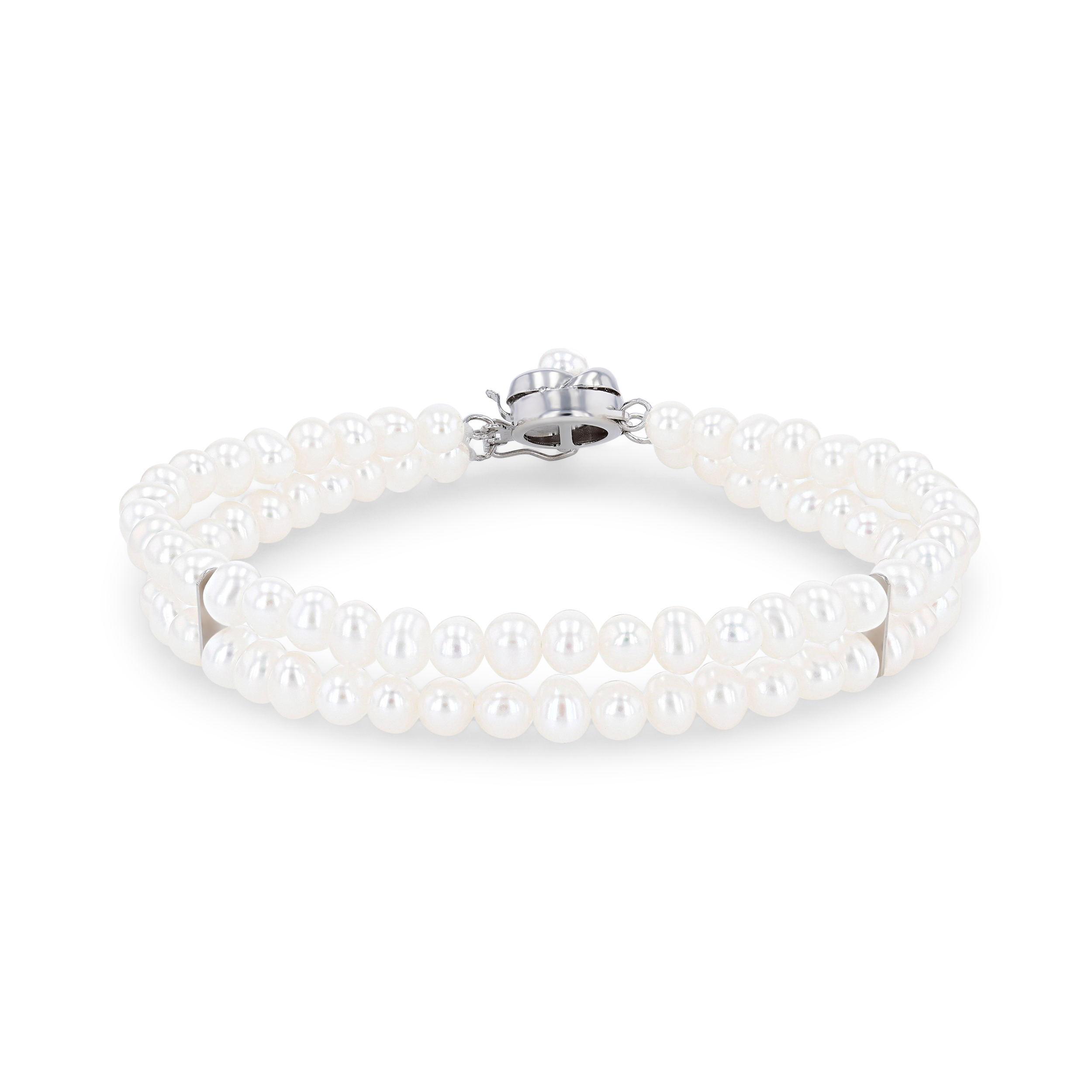Product Description A classic double row freshwater pearl bracelet is a timeless addition to anyone's collection. Other Details Bracelet Type: Gemstone Metal Color: White Gold Style: Classic Disable Reason: None Gemstone Type: Pearl Type: Bracelet