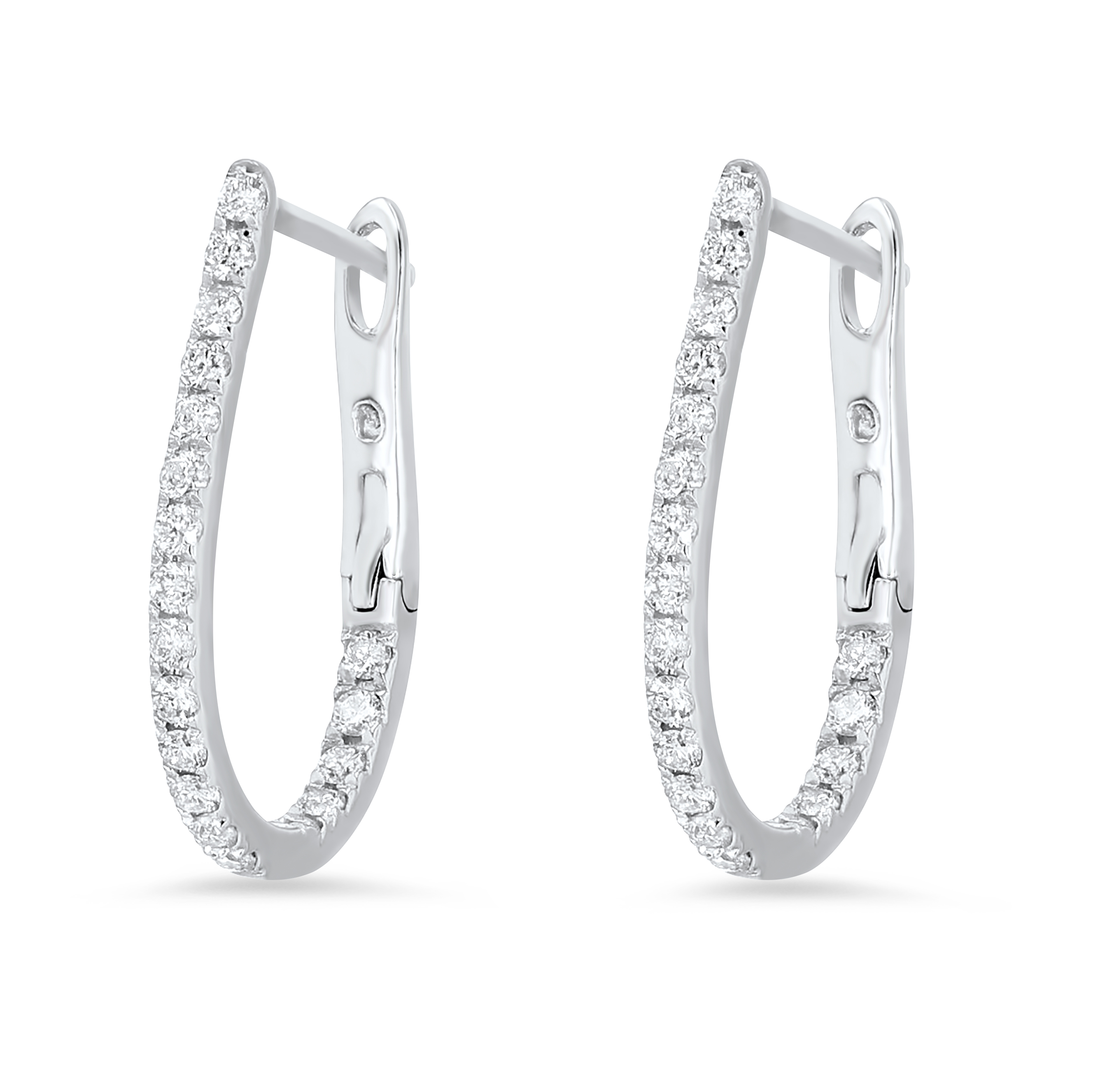 A beautiful twist on a classic, these contemporary oval-shaped hoop earrings showcase 0.50 carats of round brilliant diamonds. They measure approximately 0.75 by 0.50 inches.