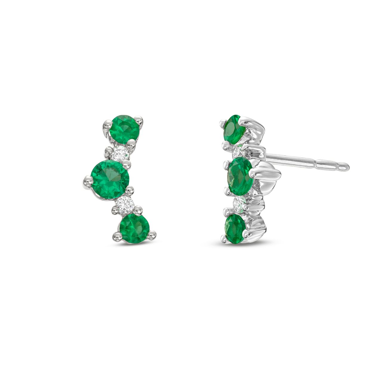 Product Description These delicate stud earrings feature emeralds totaling 0.56 carats and round brilliant cut diamonds totaling 0.05 carats. Other Details Total Setting Diamond Carat Weight: 0.05TW Type: Earrings Total Gemstone Carat Weight: 0.56TW Gemstone Type: Emerald Disable Reason: None Style: Contemporary Earring Type: Gemstones