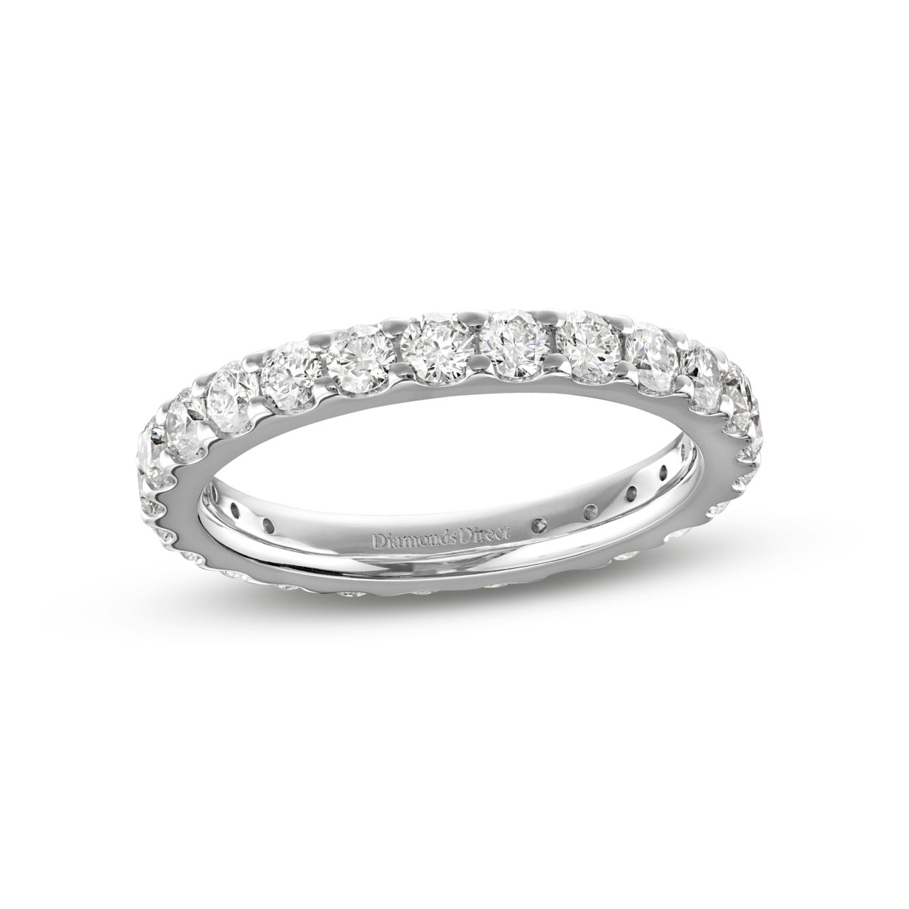 Product Description The perfect ring for any set this essential eternity band features round brilliant cut diamonds extending all the way around. Other Details Total Setting Diamond Carat Weight: 1.5TW Product Videos: /BLDLG18931/BLDLG18931_vid1.mp4 Metal Color: White Gold Metal Color: Platinum Average clarity range: SI Wedding Band Type: Prong Set Diamond: Eternity Gemstone Type: Diamond Metal Color: Rose Gold Product_Video_BLDLG18931: /BLDLG18931/BLDLG18931_vid1.mp4 Type: Ladies Wedding Band Metal Color: Yellow Gold Disable Reason: None Average color range: G-H Style: Classic