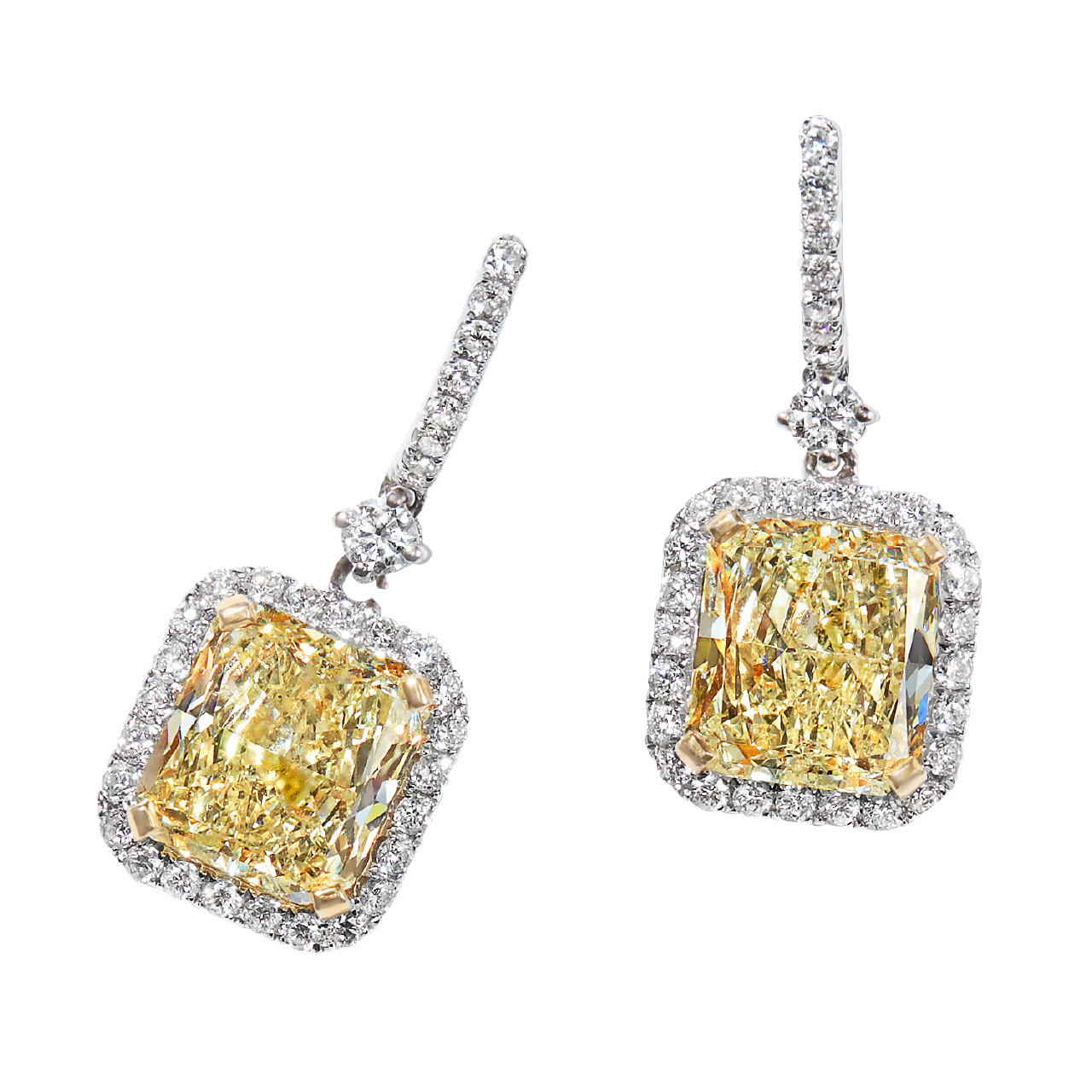 Product Description A stunning pair of dangle earrings featuring 6.03 carats of fancy yellow diamonds, accented by 0.81 carats of diamonds, set in 18 karat two tone gold. Other Details Luxury Collection Item Type: Earring Disable Reason: None Gemstone Type: Diamond Type: Luxury Total Setting Diamond Carat Weight: 6.84TW Average clarity range: VS Earring Type: Dangle Metal Color: Two Tone Average color range: FY