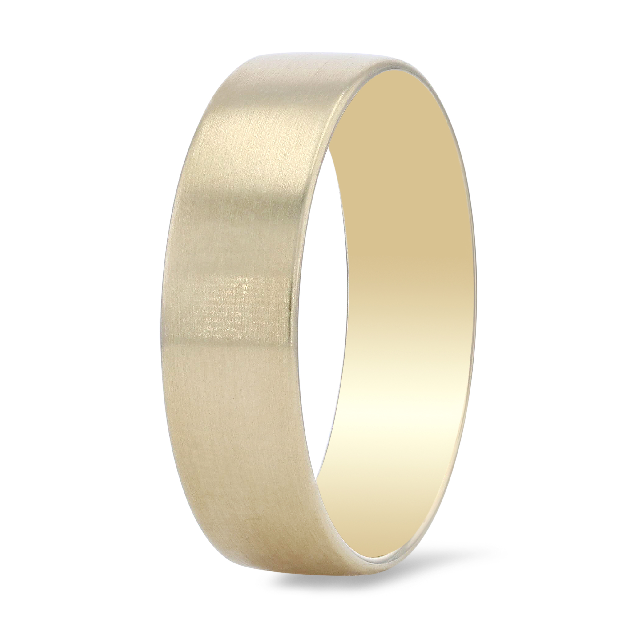 Product Description Sleek and simple, this wedding band has a flat design with a matte finish and measures six millimeters wide. Other Details Finish: Matte Type: Gents Wedding Band Gents Wedding Band Style: Classic Style: Classic