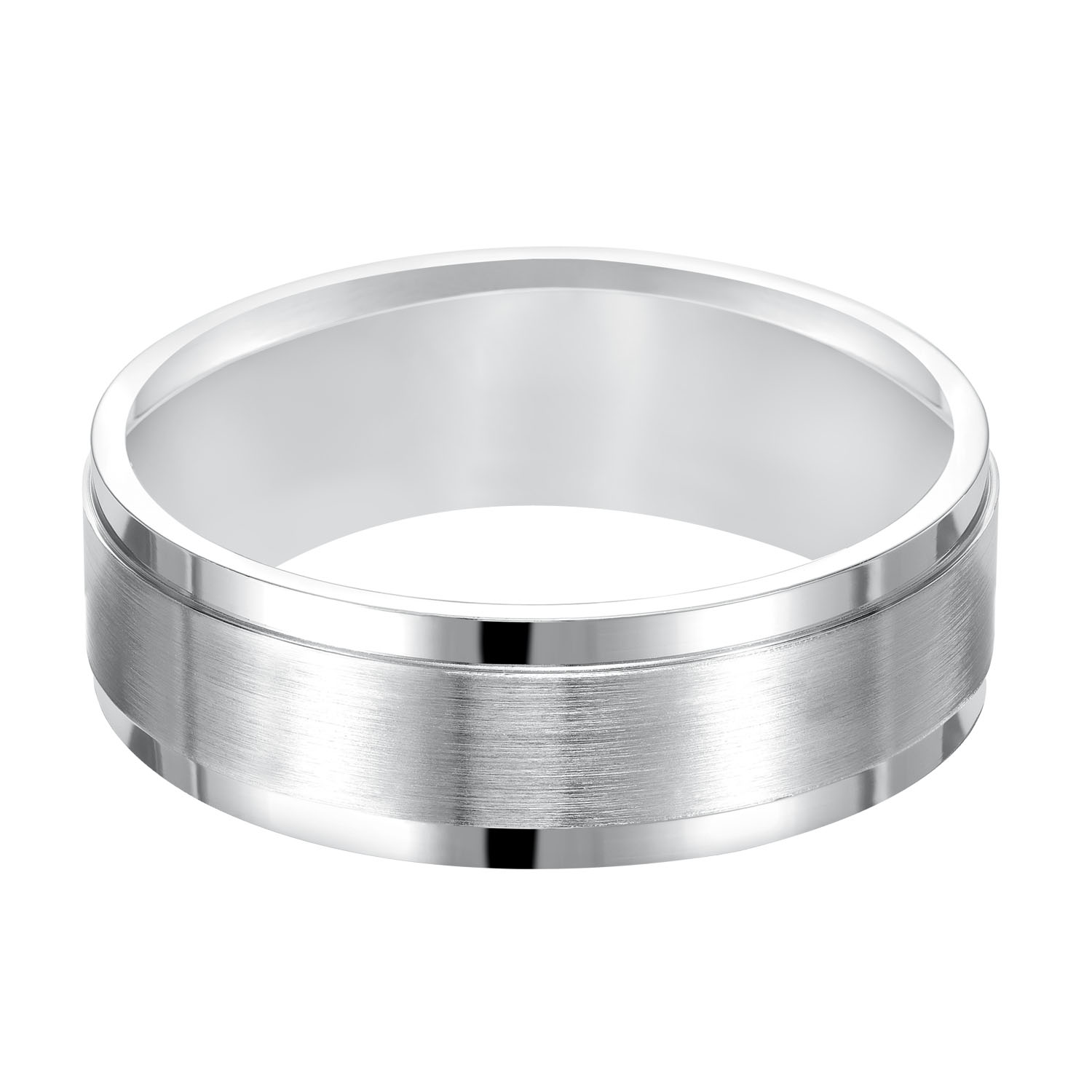 Product Description An eye-catching 7mm wedding band featuring a satin finished center that is framed by high polished beveled edges. Other Details Metal Color: Platinum Metal Color: Yellow Gold Metal Color: White Gold Gents Wedding Band Style: Contemporary Disable Reason: None Type: Gents Wedding Band Men Wedding Band Type: Men's Plain Bands