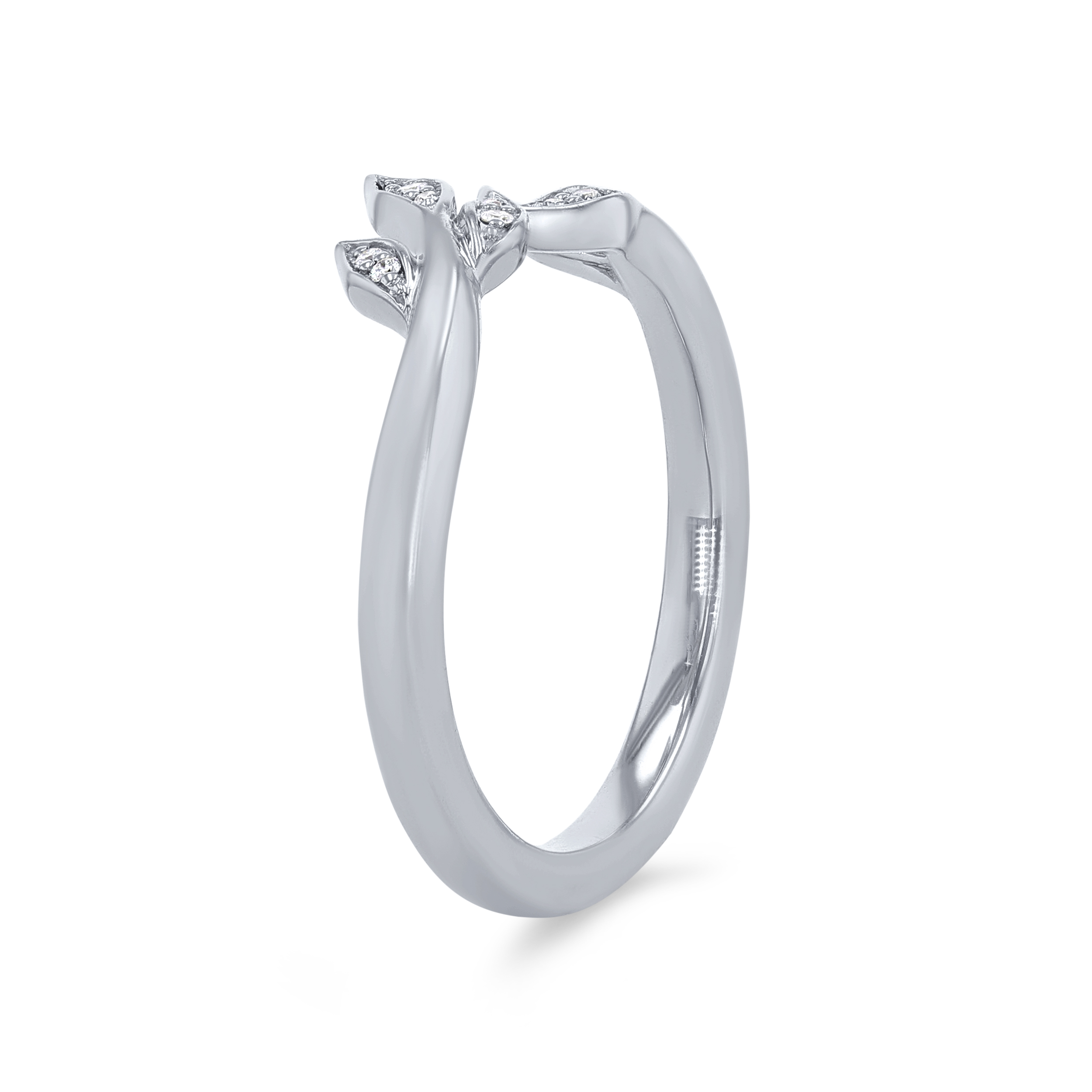 Product Description The curved, petal-like design creates a beautiful floral-inspired wedding band that can complement a variety of settings. The round brilliant cut diamonds total 0.05 carats. Other Details Type: Ladies Wedding Band Metal Color: White Gold Disable Reason: None Wedding Band Type: Contoured Metal Color: Rose Gold Gemstone Type: Diamond Style: Contemporary Metal Color: Yellow Gold Metal Color: Platinum Total Setting Diamond Carat Weight: 0.05TW